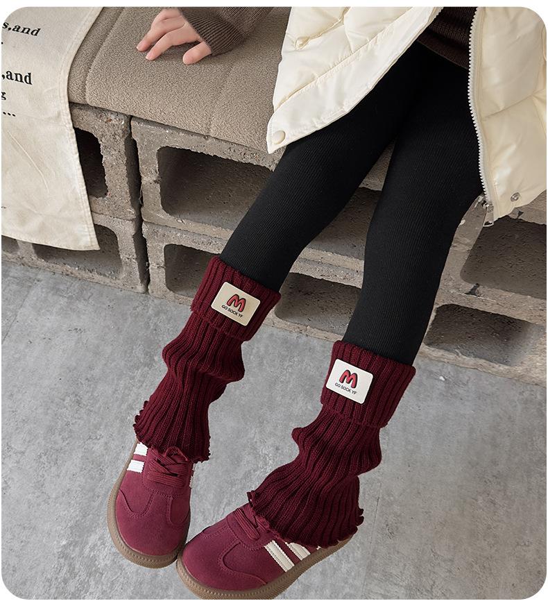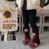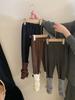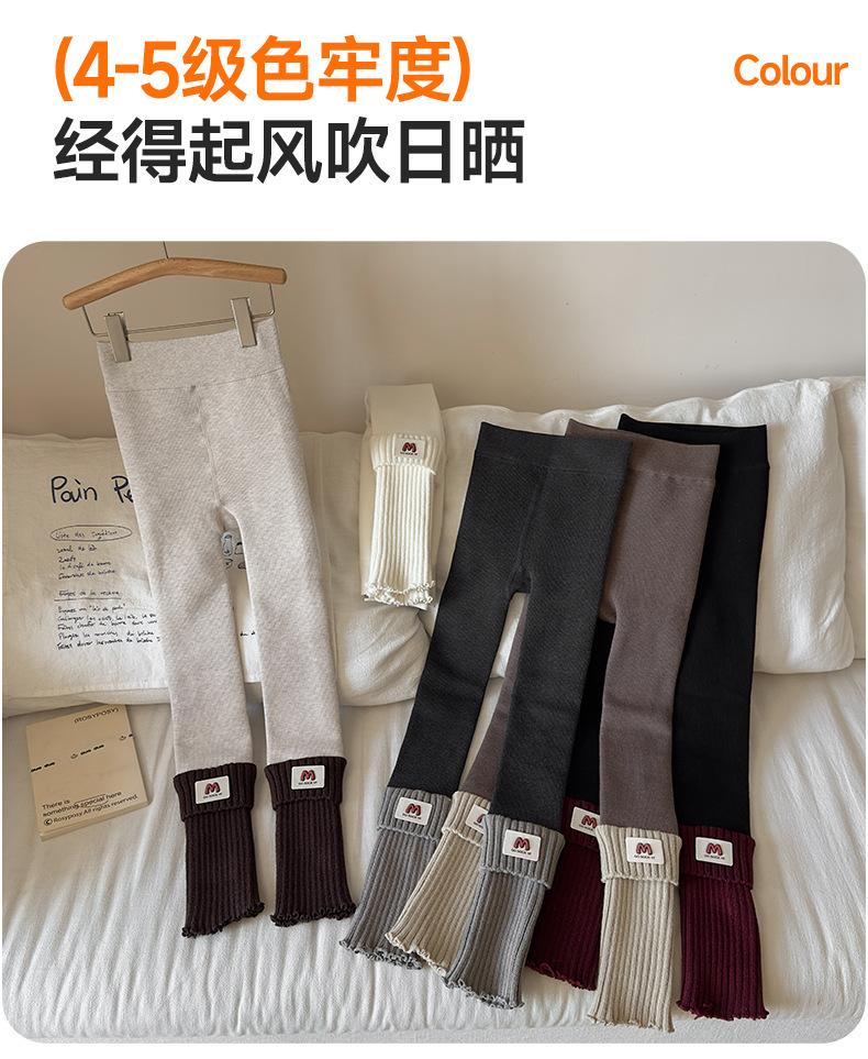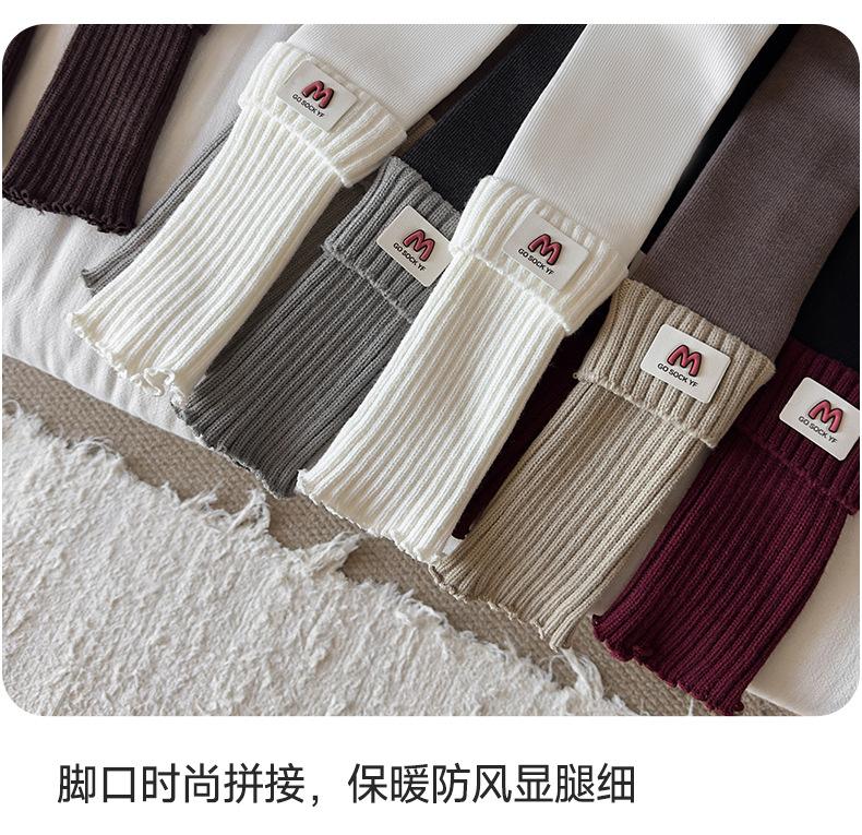 2025 nuevo estilo de invierno coreano de cintura alta con rayas verticales, mangas de calcetín empalmadas, cálido, pantalones de nueve puntos, ropa exterior con leggings de calcetines
