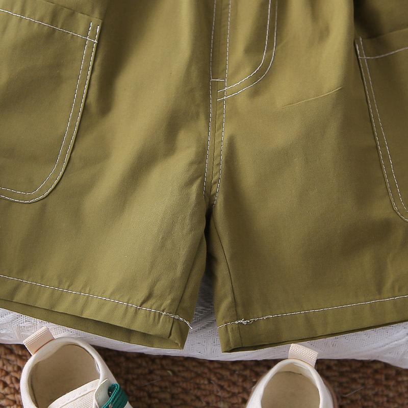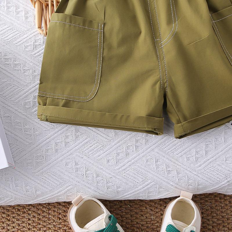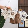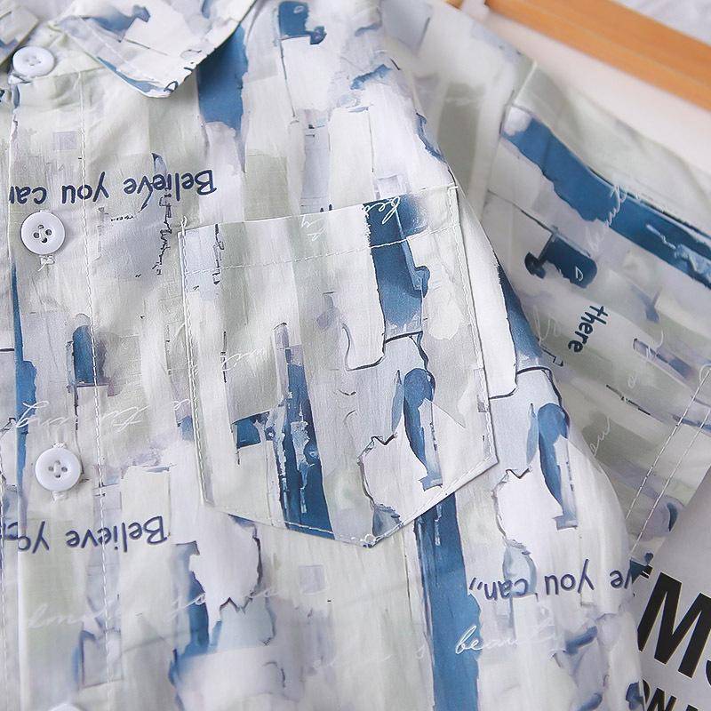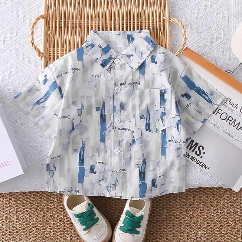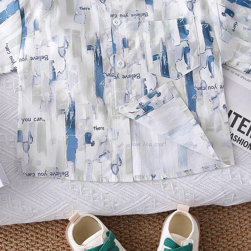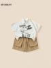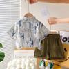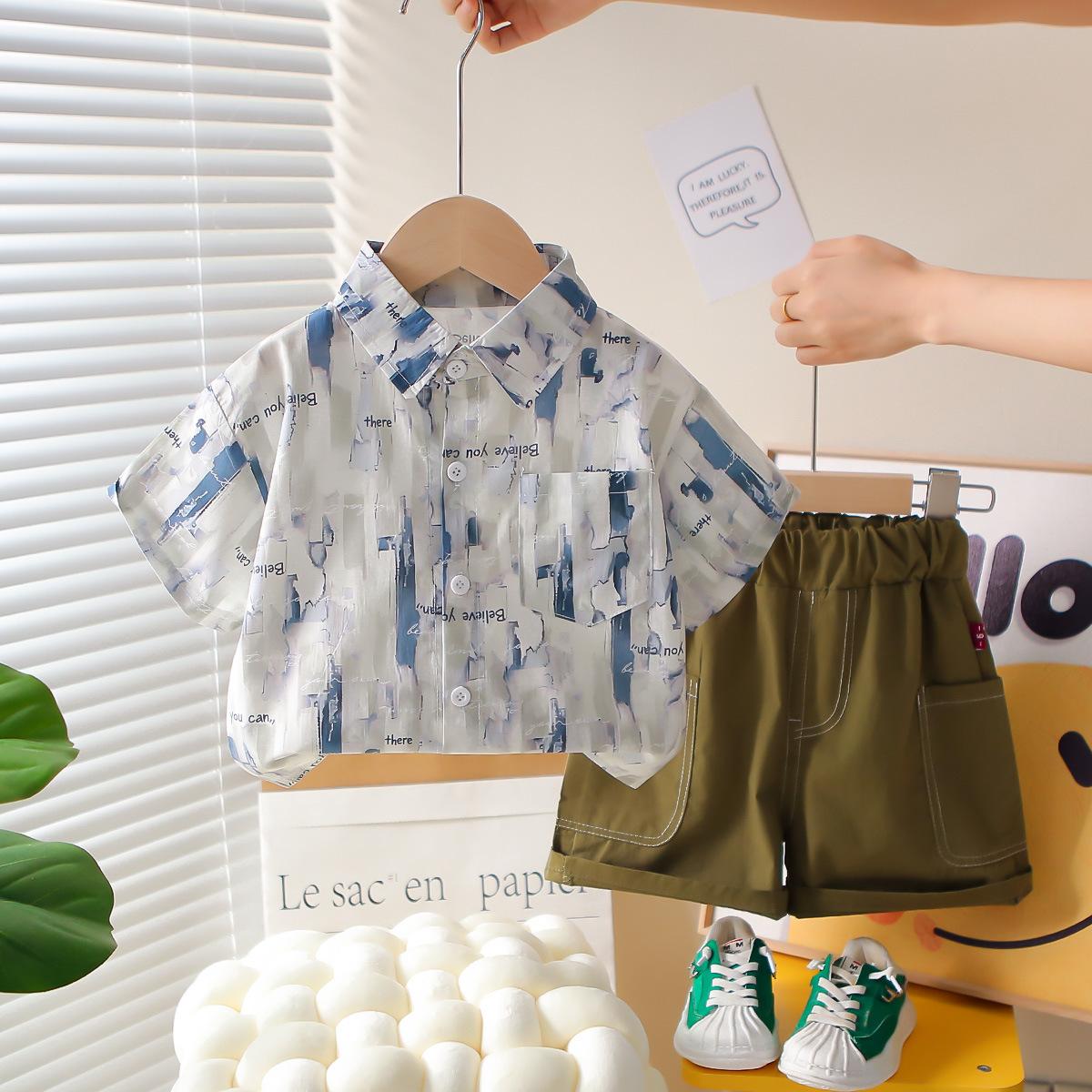 Ropa para niños Traje de manga corta para niño Verano Estilo occidental Camisa de verano para bebé con estampado completo Ropa de dos piezas Bebé Niños