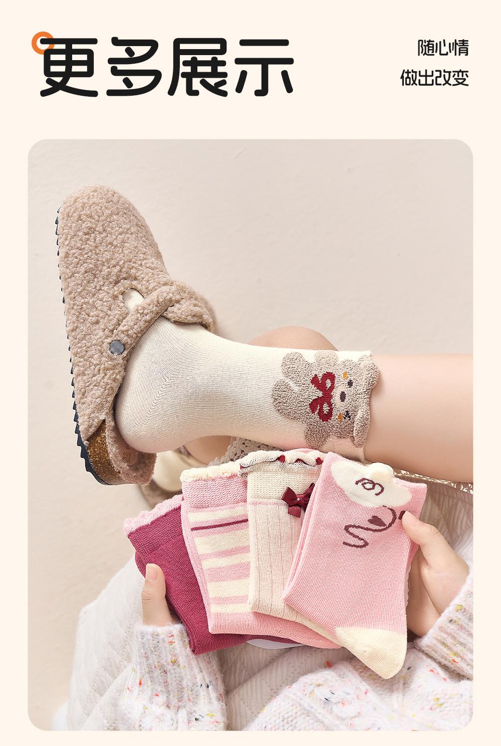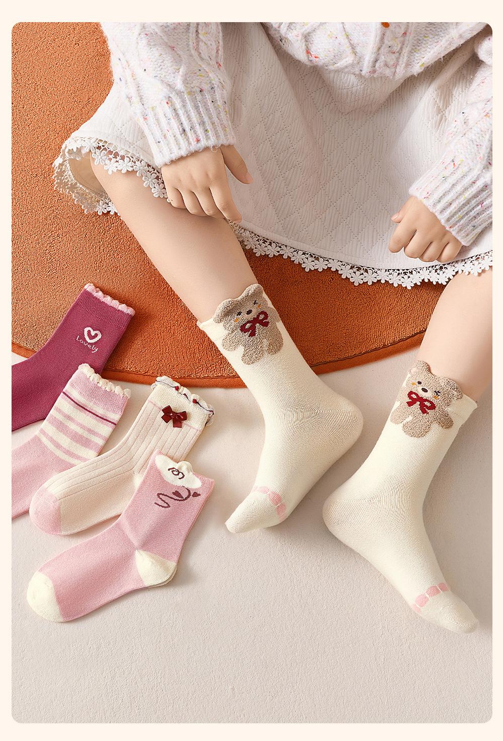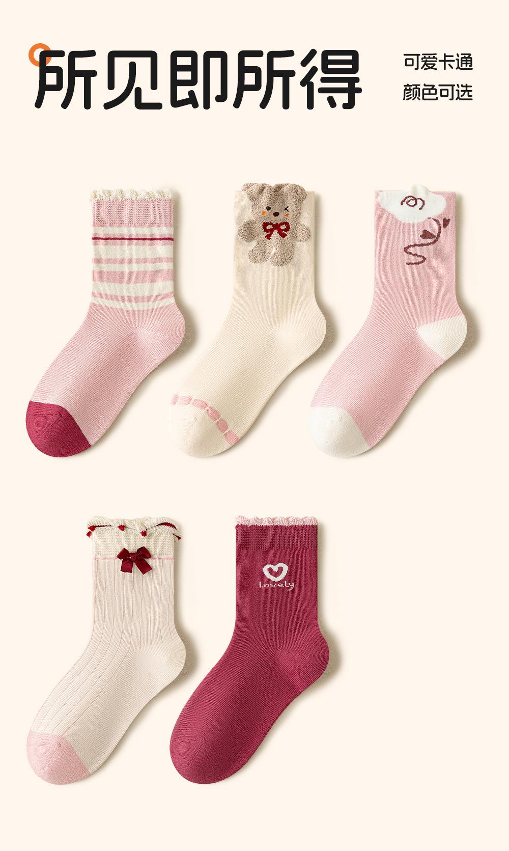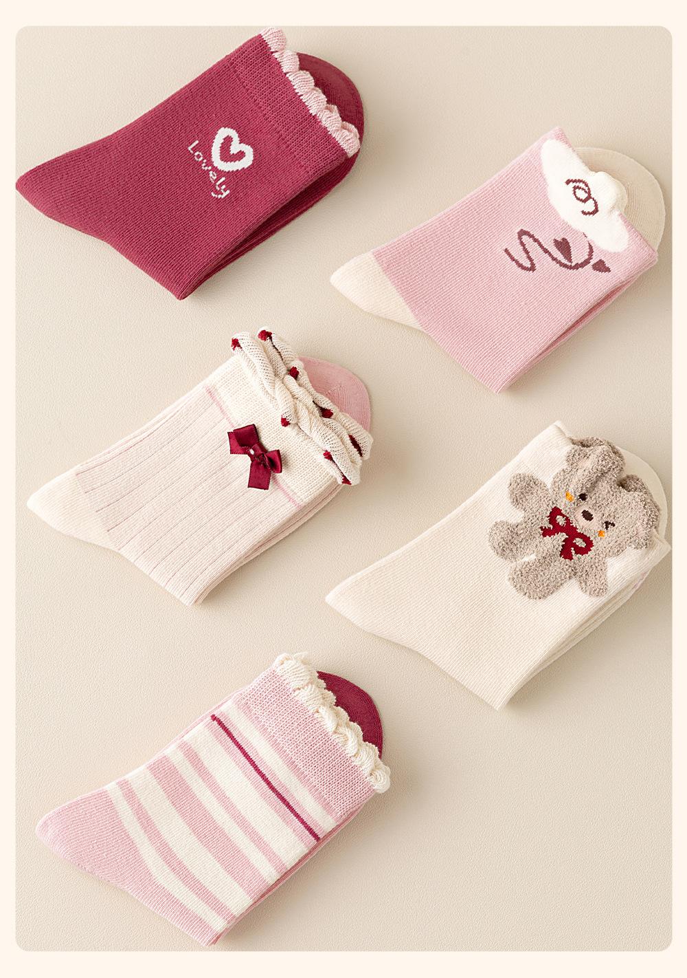 Love Heart Cute Bear-5 Pairs【Class A Pure Cotton Boneless Antibacterial】, Little Bear Bubble Mouth-5 Pairs【Cla...