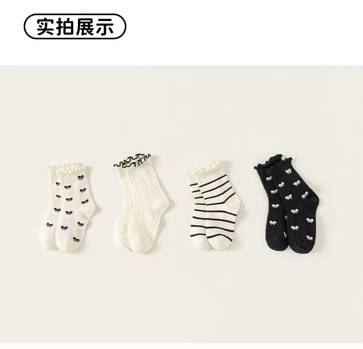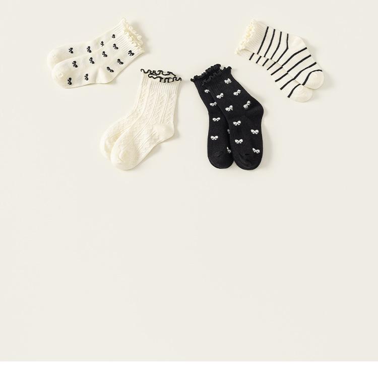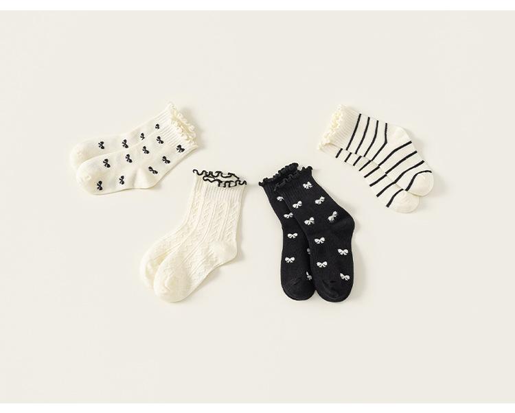 Youbao Ropa Infantil Estilo Otoño Calcetines de Encaje para Niñas Estilo Coreano Calcetines Deportivos Calcetines Media Pantorrilla con Bloques de Color Paquete de Cuatro Pares Calcetines para Niñas