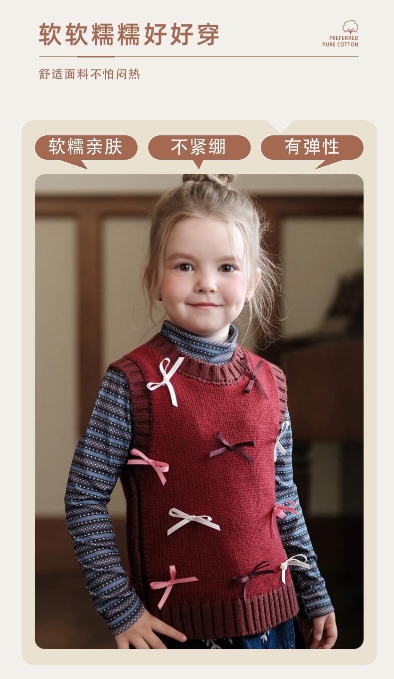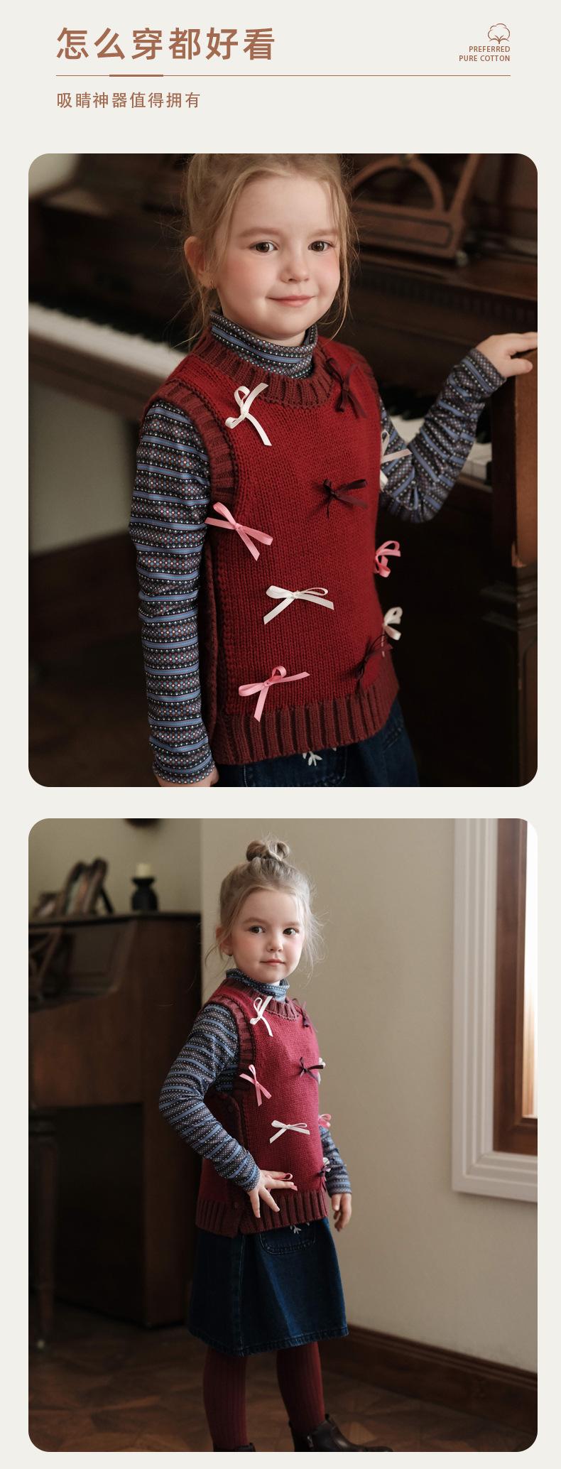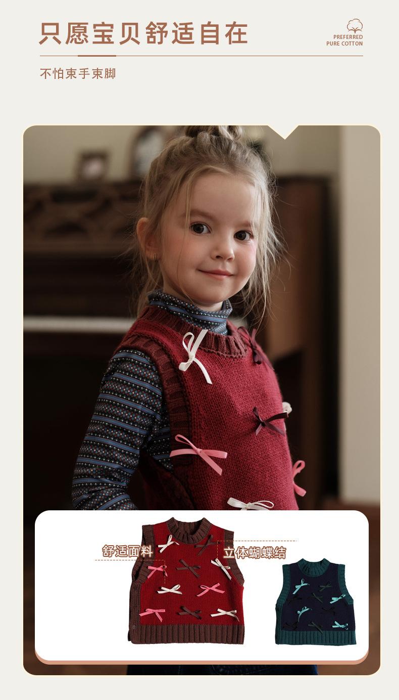 Chaleco de Lana de Otoño e Invierno para Niños 2025 Nuevo Abrigo con Lazo Suéter de Punto sin Mangas de Otoño para Niñas