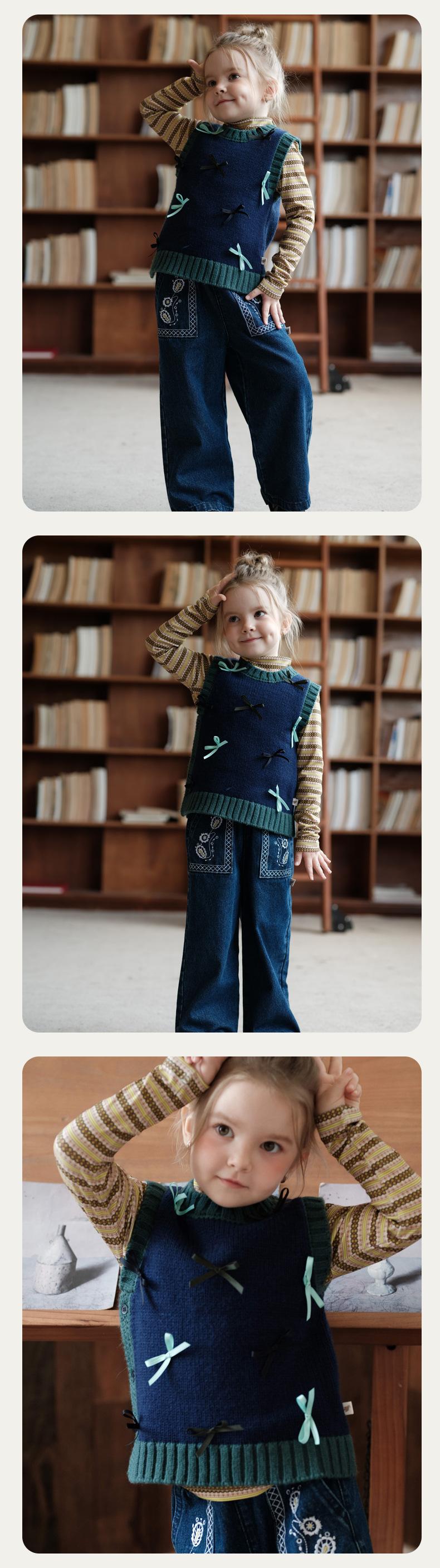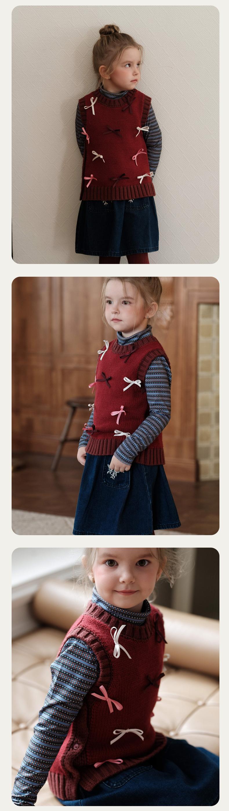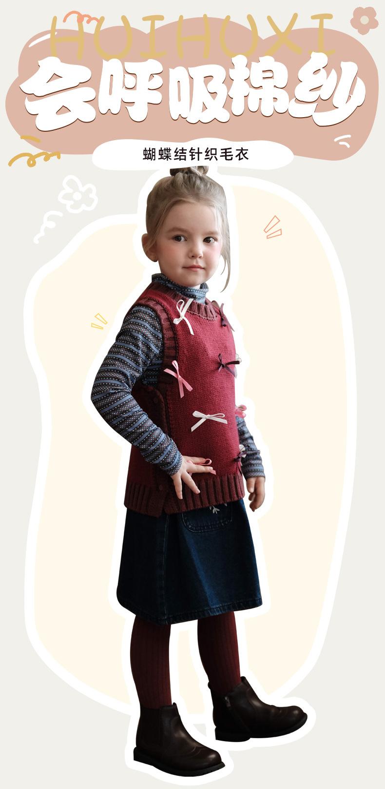 Chaleco de Lana de Otoño e Invierno para Niños 2025 Nuevo Abrigo con Lazo Suéter de Punto sin Mangas de Otoño para Niñas