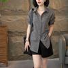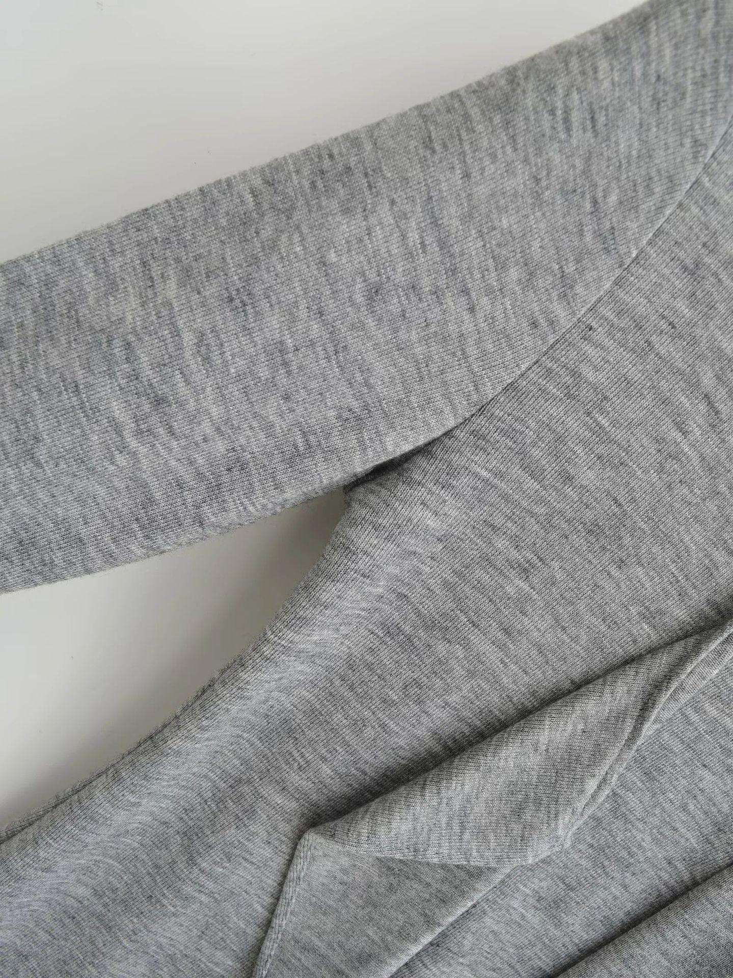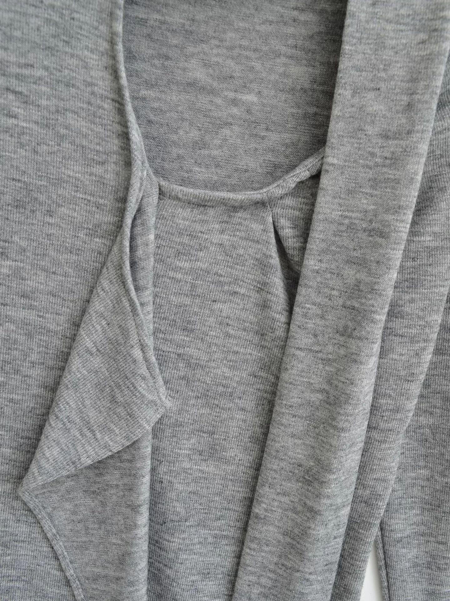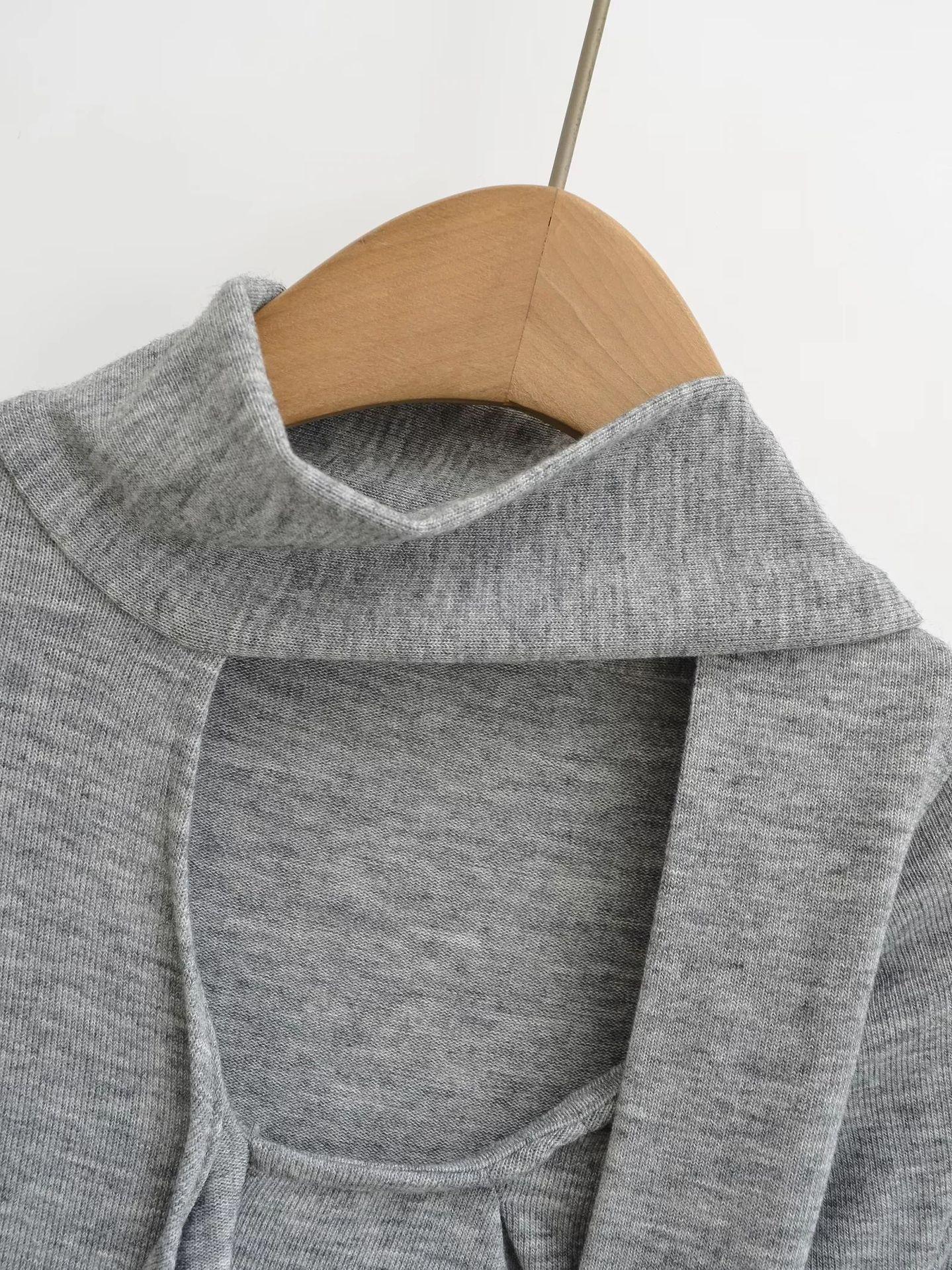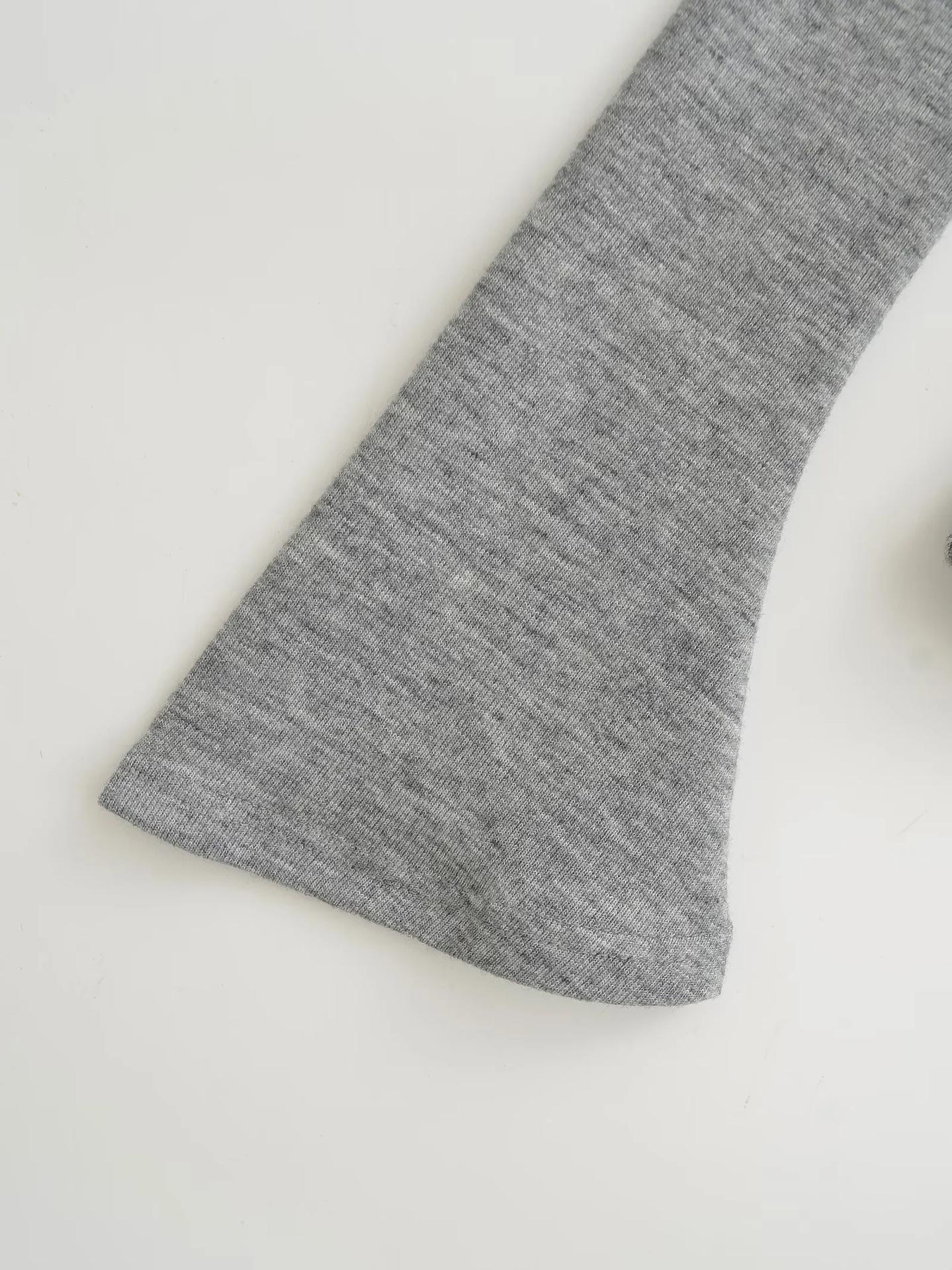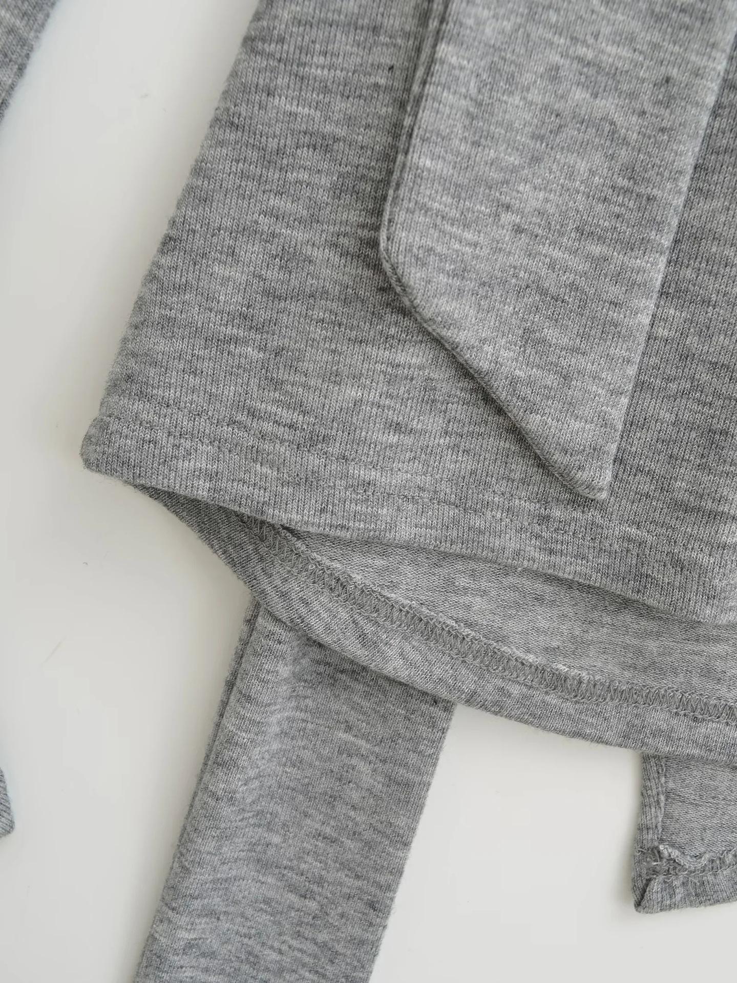 Sentido del Diseño Volante Cinta Manga Larga Top Gris para Mujer Primavera y Otoño Capa Base Versátil Camiseta Interior Adelgazante