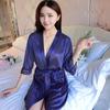 Pijama Sexy de Seda de Simulación de Verano para Mujer, Tentación de Manga Cinco Cuartos, Manga Corta, Seda de Hielo de Una Pieza, Color Sólido, Ropa para el Hogar, Ropa de Dormir, Bata, Multicolor
