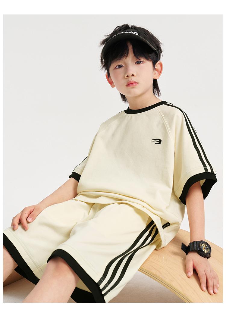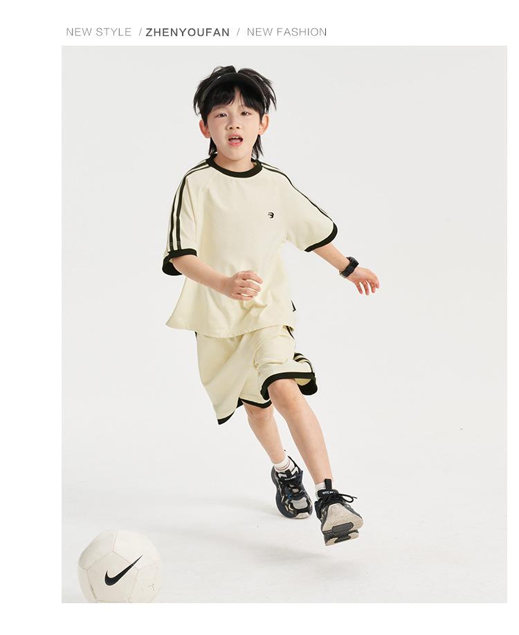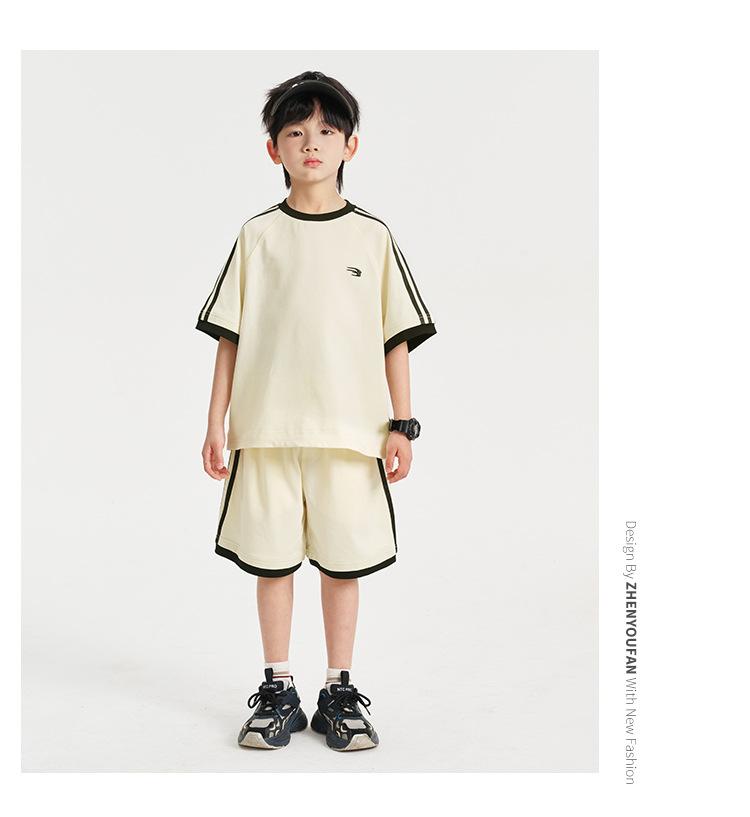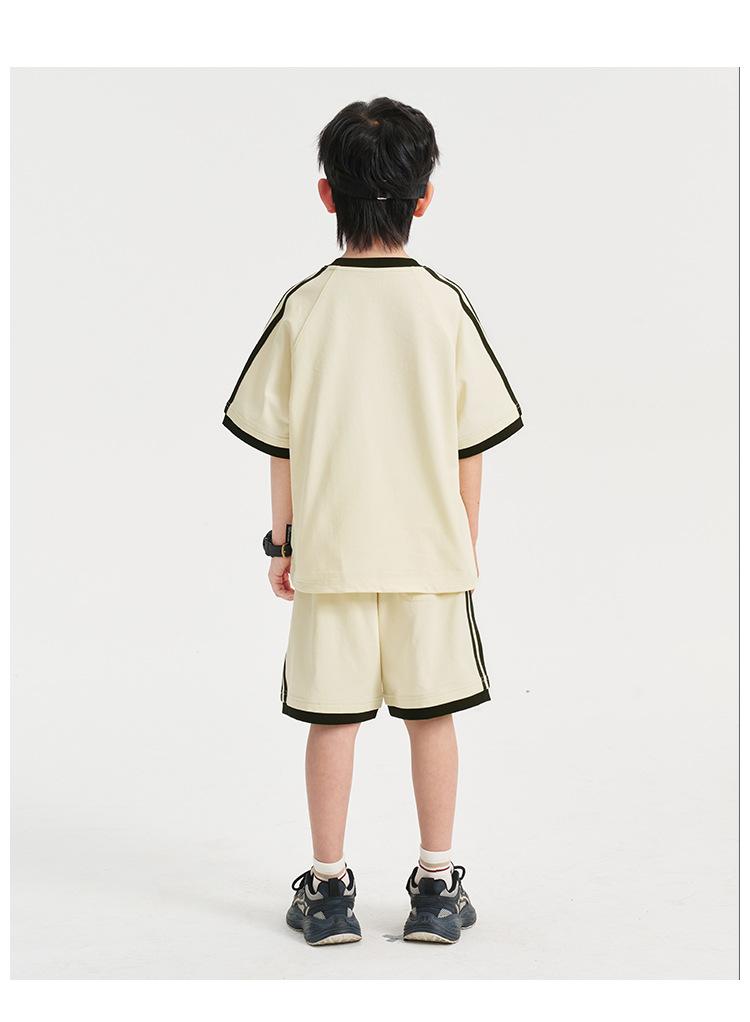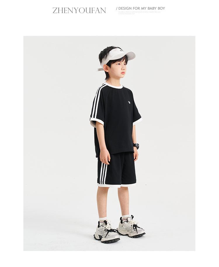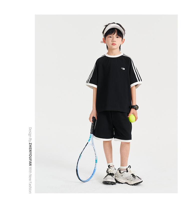 Ropa para Niños Zhenpinxuan Trajes para Niños 2025 Nuevo Niños Grandes Niños Guapos Pantalones Cortos de Manga Corta Conjunto Deportivo de Dos Piezas para Niños
