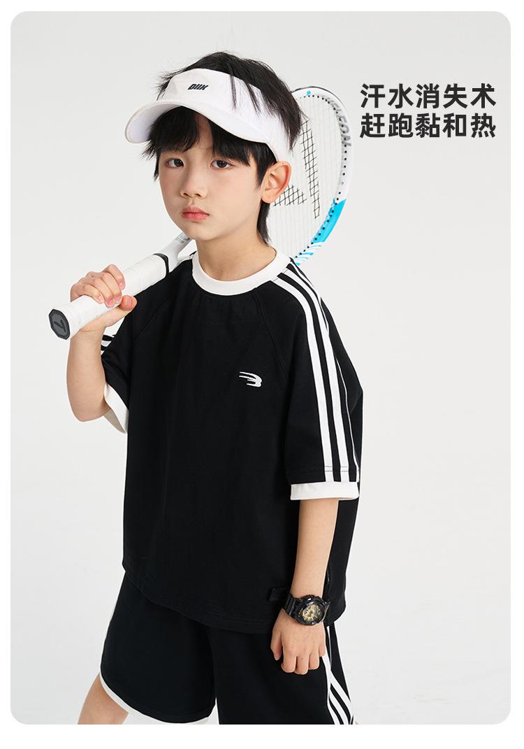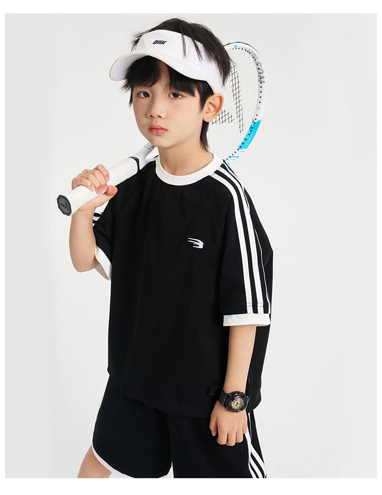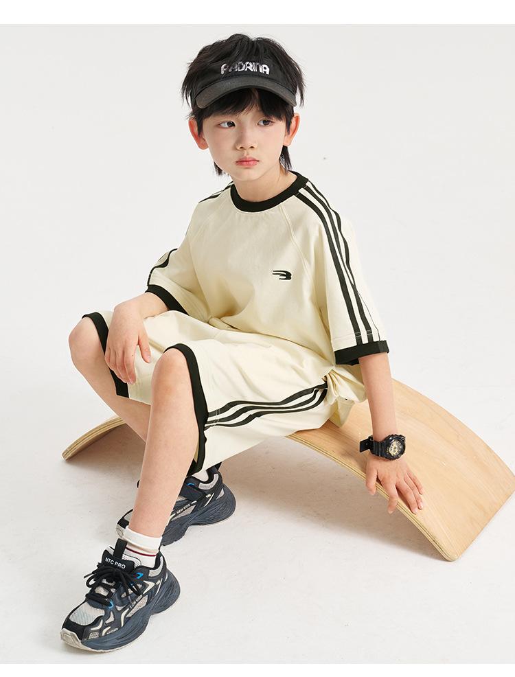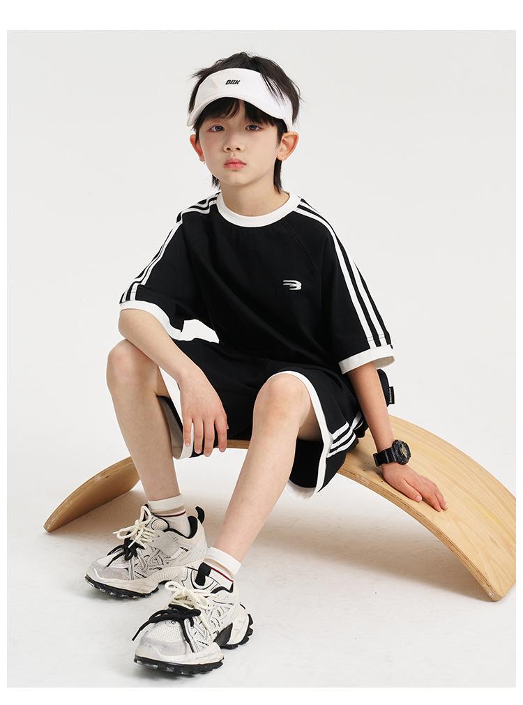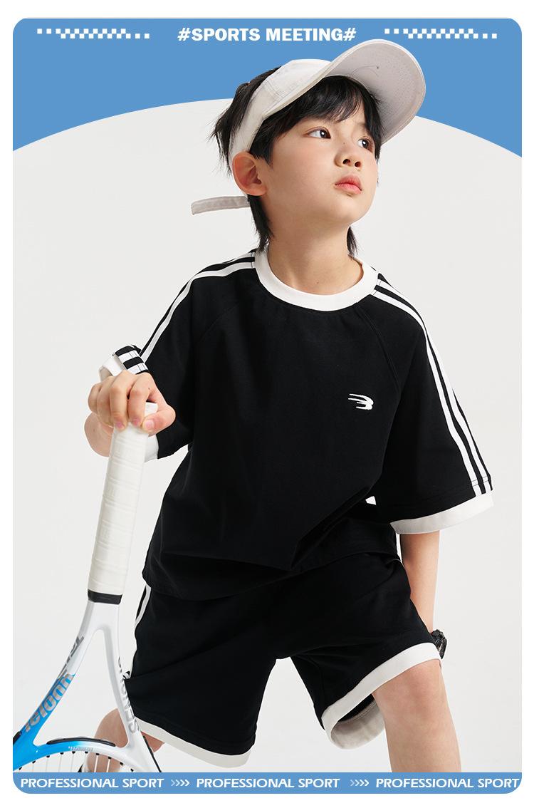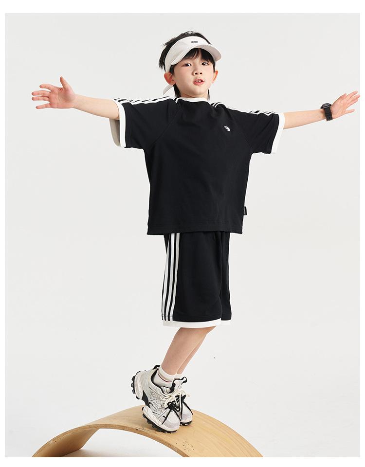 Ropa para Niños Zhenpinxuan Trajes para Niños 2025 Nuevo Niños Grandes Niños Guapos Pantalones Cortos de Manga Corta Conjunto Deportivo de Dos Piezas para Niños