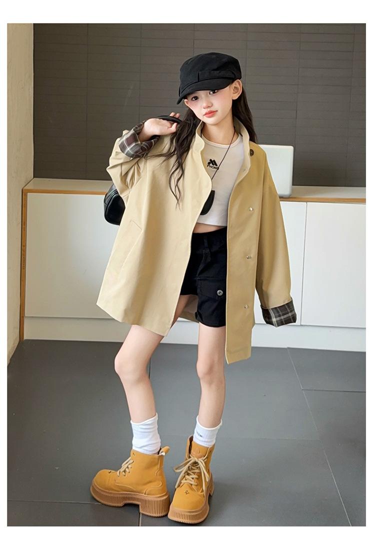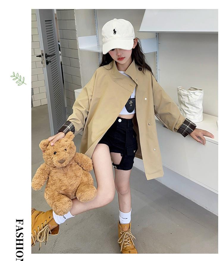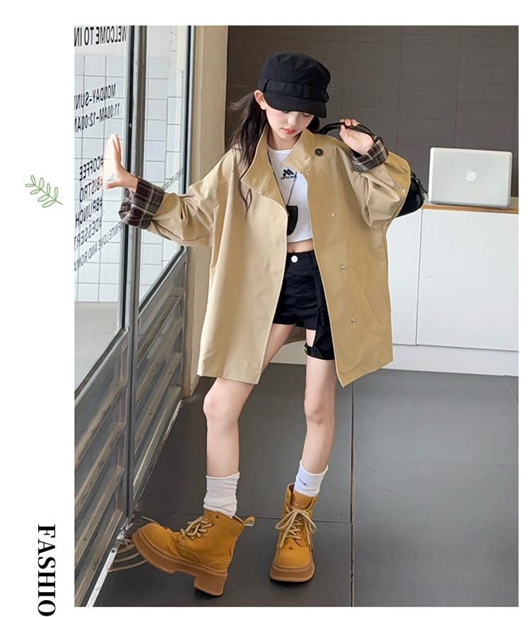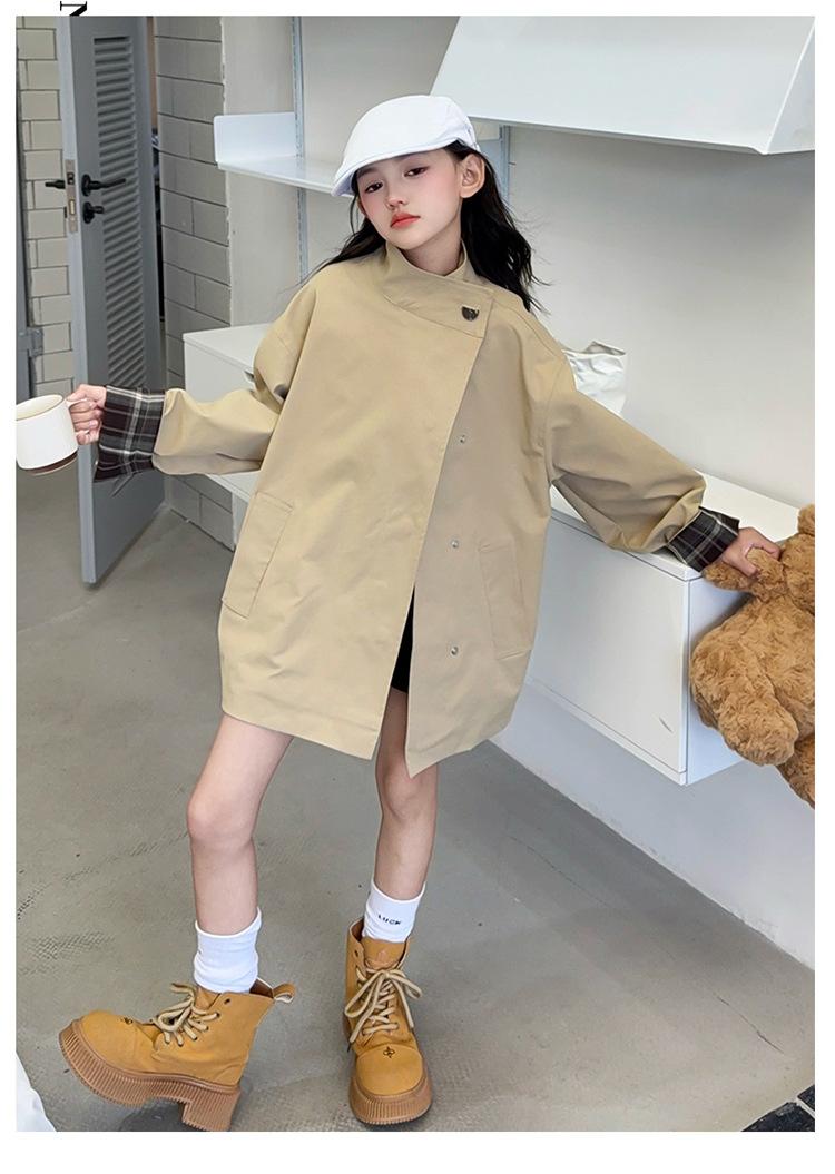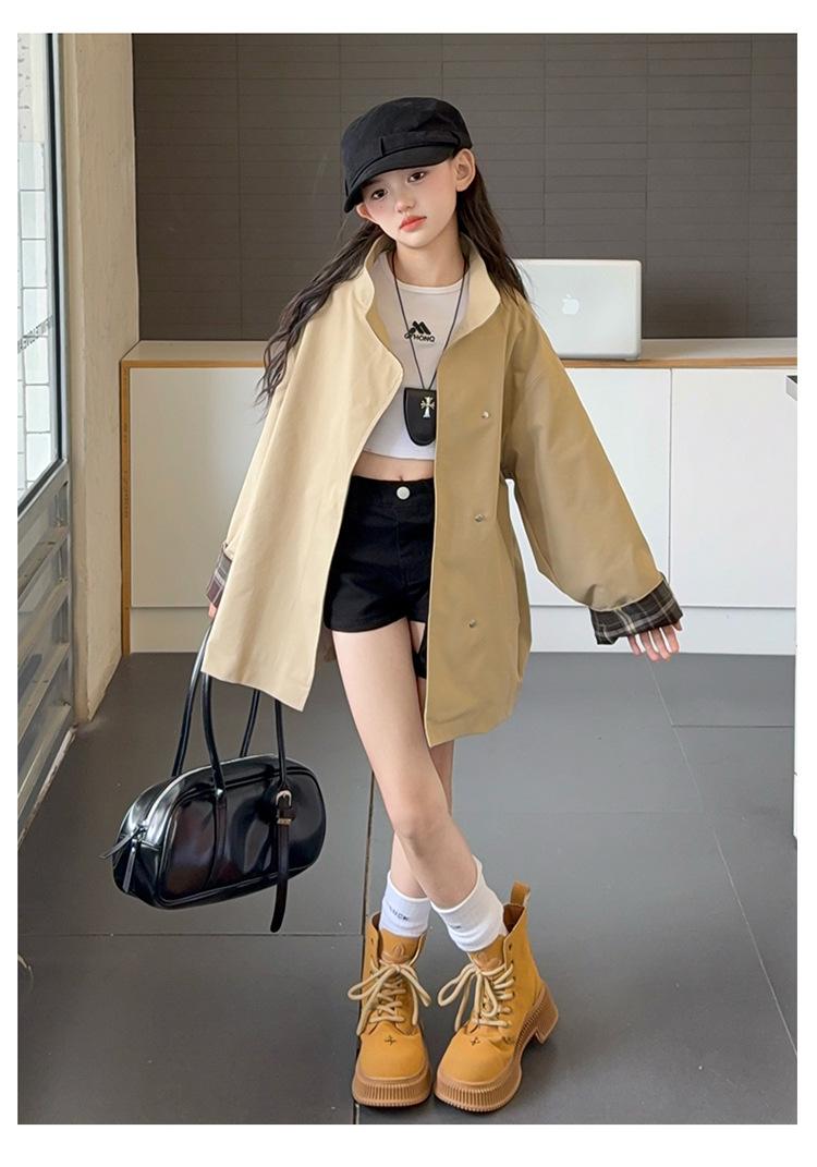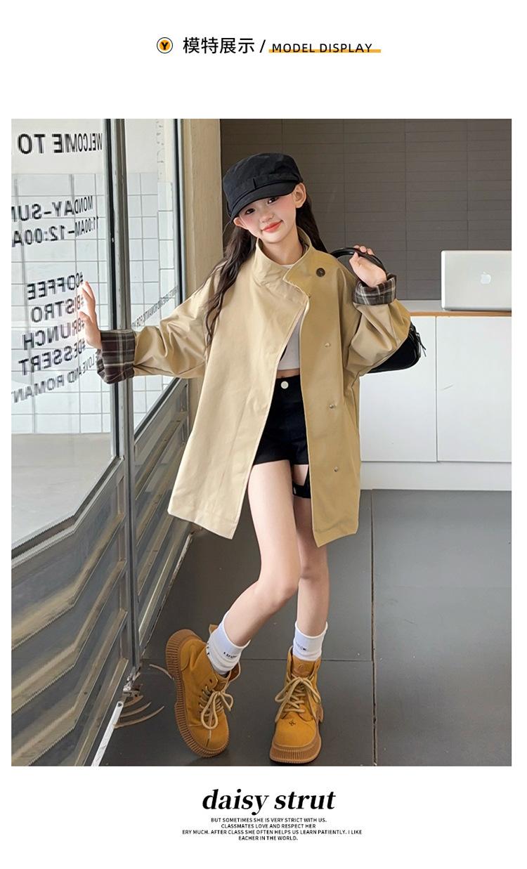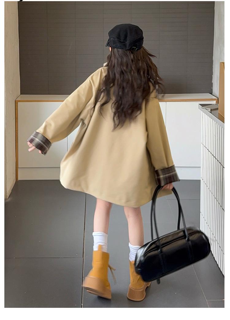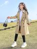 Abrigo Trench Casual de Otoño para Niñas Estilo Coreano Largo Medio 2025 Nuevo Estilo Niñas Grandes Ropa de Otoño Infantil a la Moda