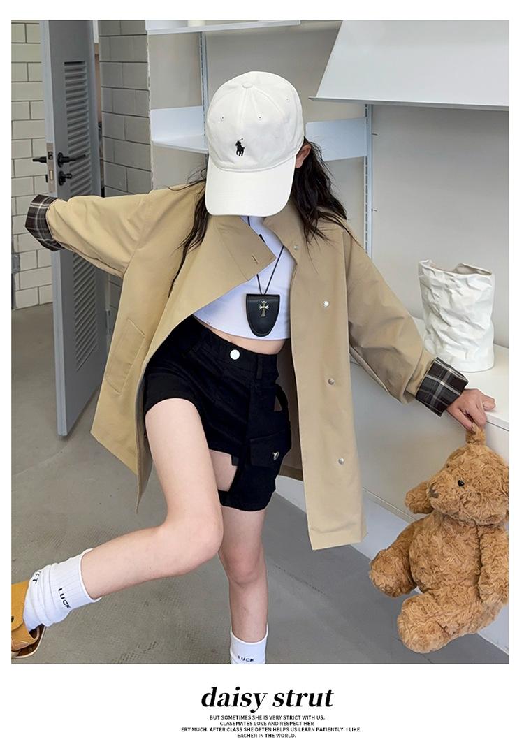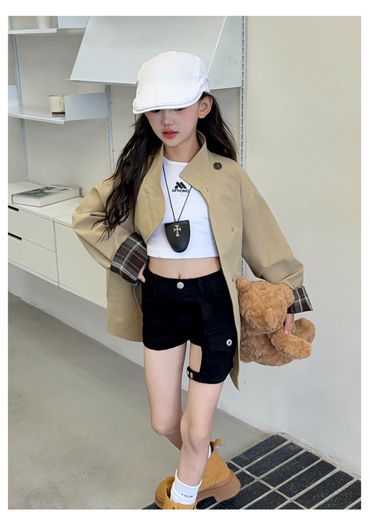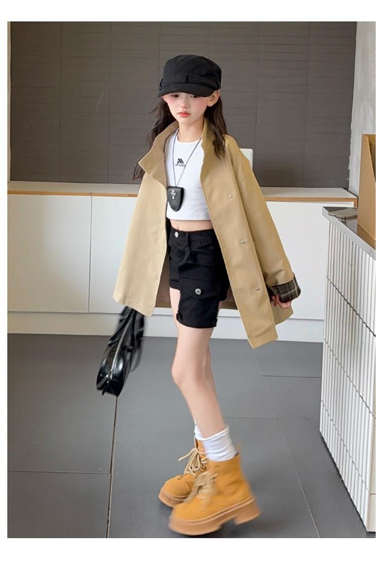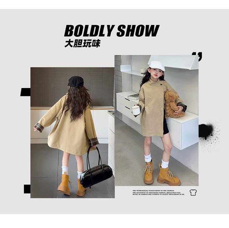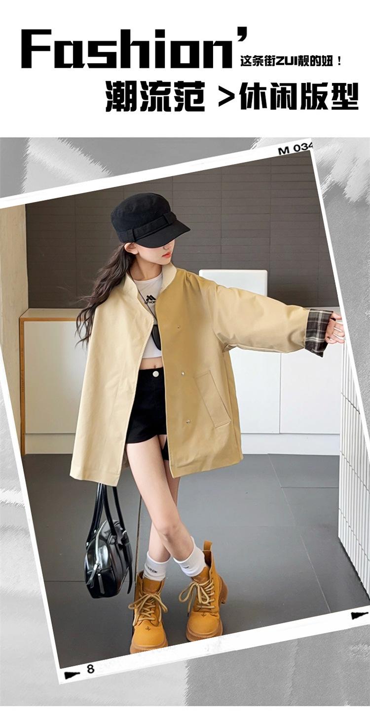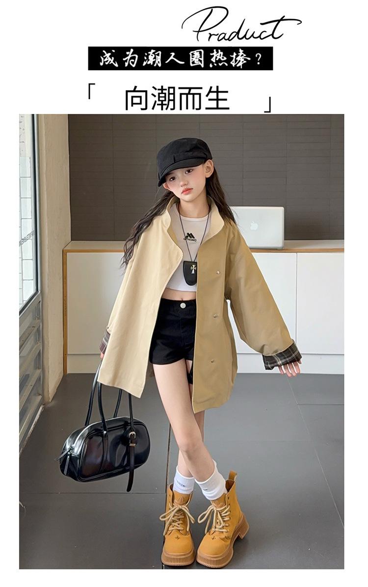 Abrigo Trench Casual de Otoño para Niñas Estilo Coreano Largo Medio 2025 Nuevo Estilo Niñas Grandes Ropa de Otoño Infantil a la Moda