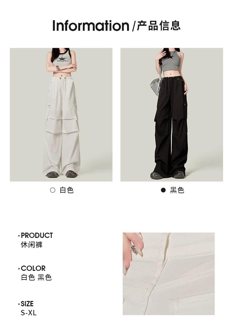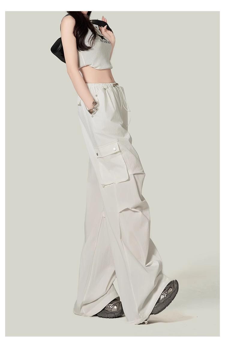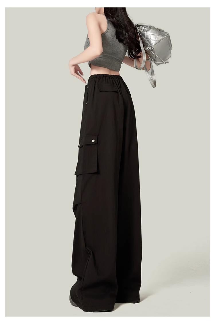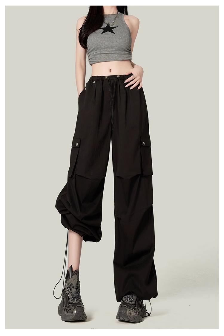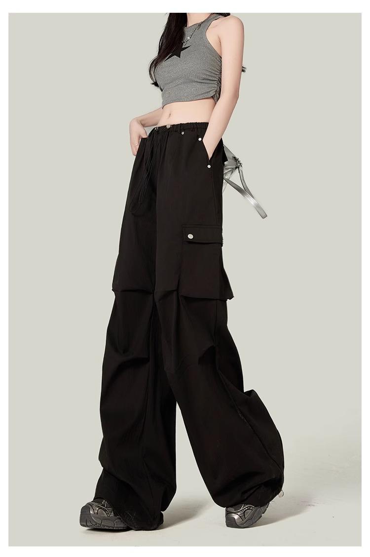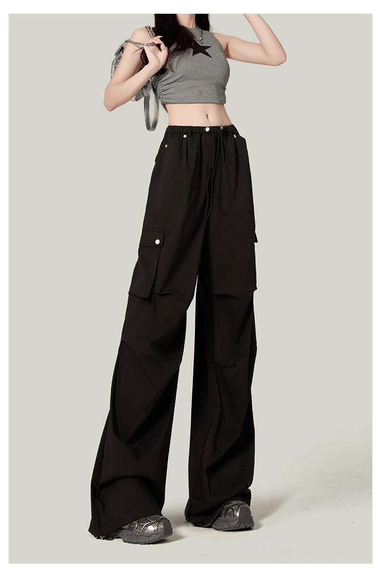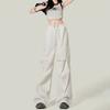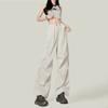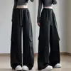 Pantalones de Trabajo de Diseño Americano para Mujer 2025 Nuevo Pantalón de Pierna Ancha de Cintura Alta Pantalones Casuales Sueltos Pantalones con Cordón hasta el Suelo