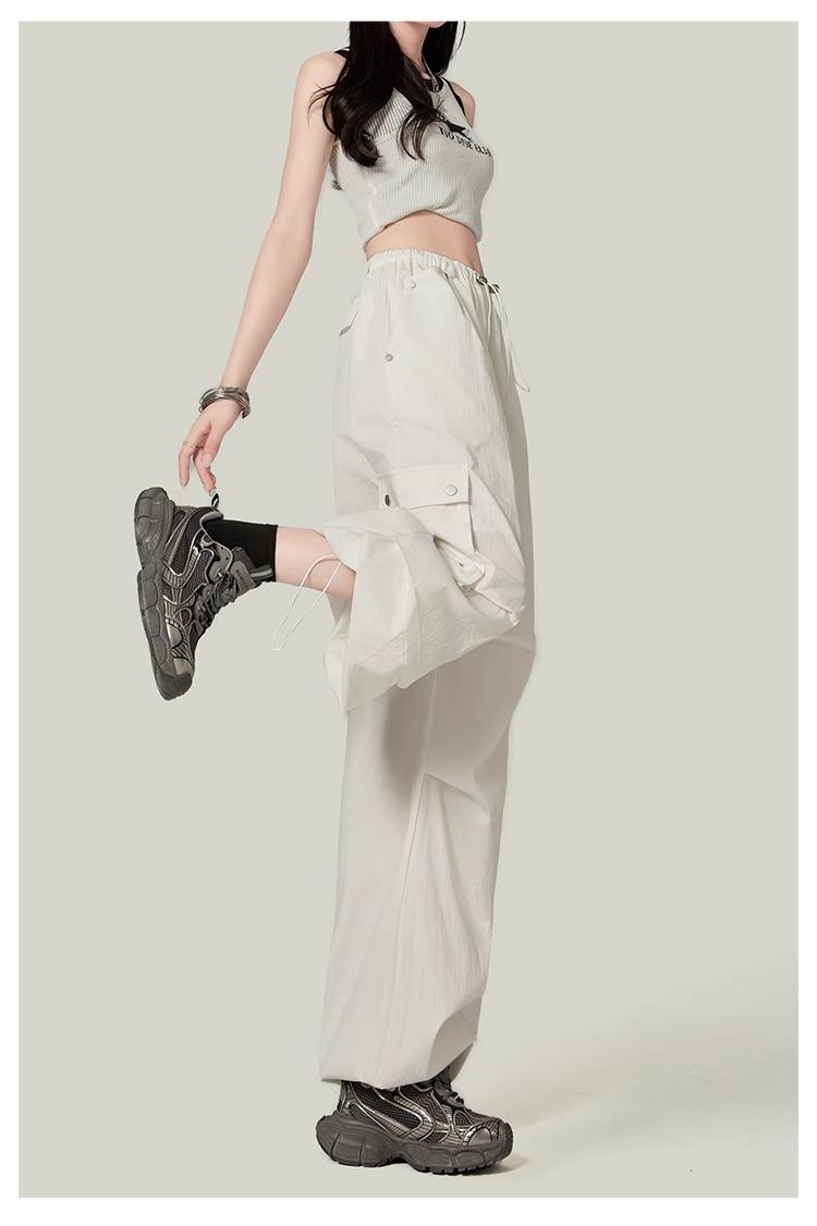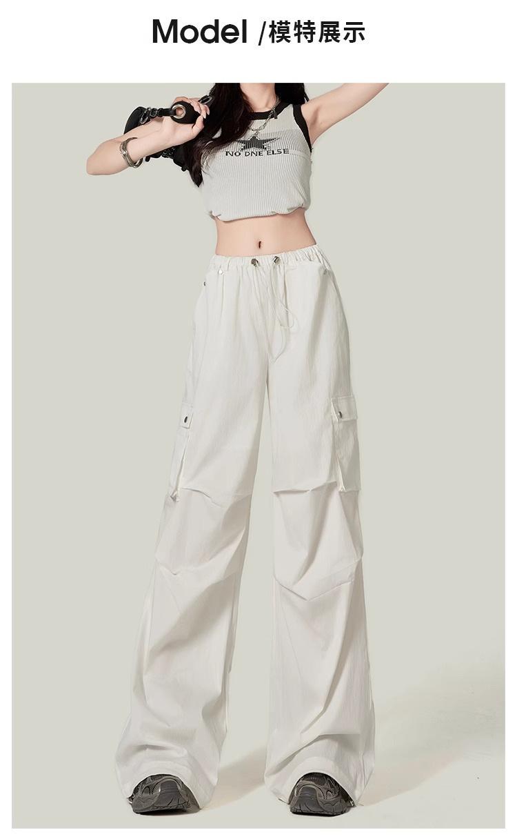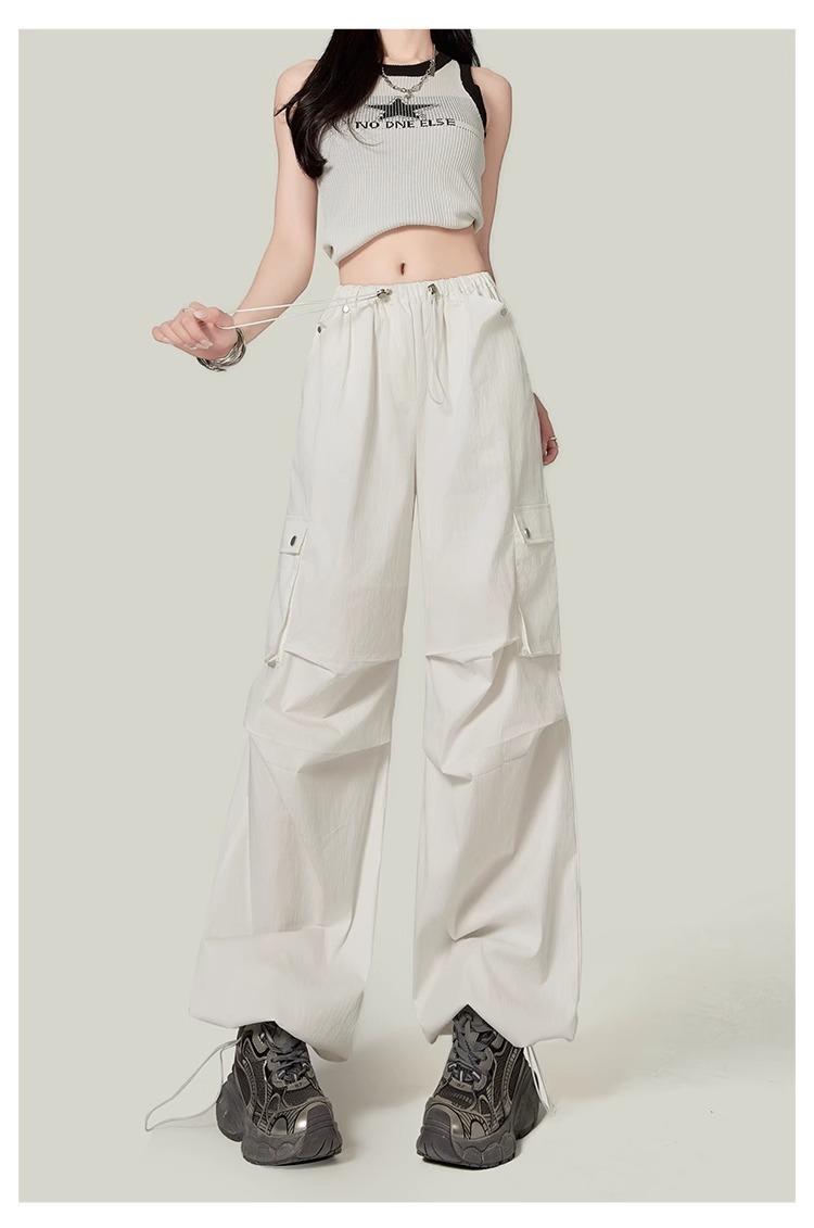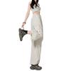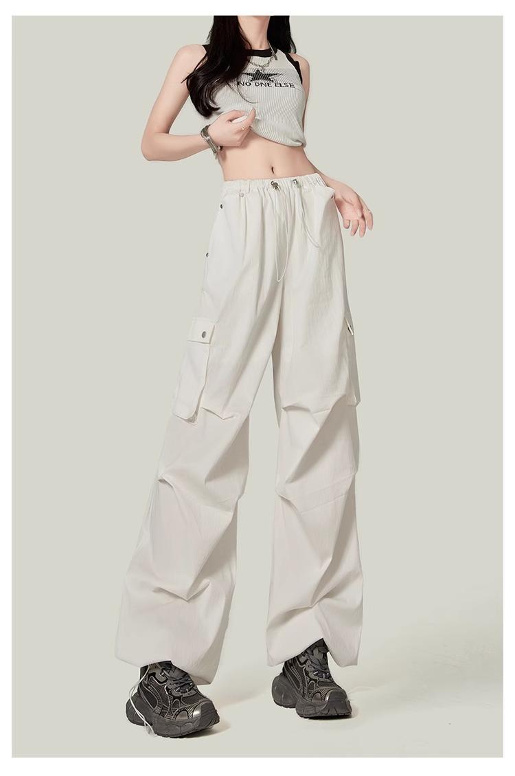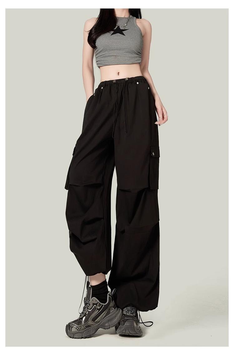 Pantalones de Trabajo de Diseño Americano para Mujer 2025 Nuevo Pantalón de Pierna Ancha de Cintura Alta Pantalones Casuales Sueltos Pantalones con Cordón hasta el Suelo