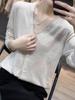Chaqueta Suéter Mujer Suelta Primavera y Otoño Nueva Ropa de Mujer Top Ribete de Encaje Cuello Redondo Cárdigan de Punto Mujer