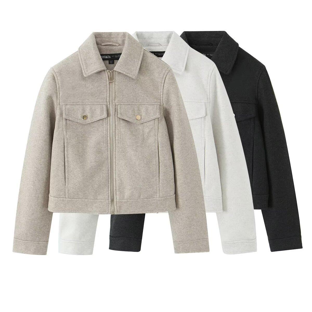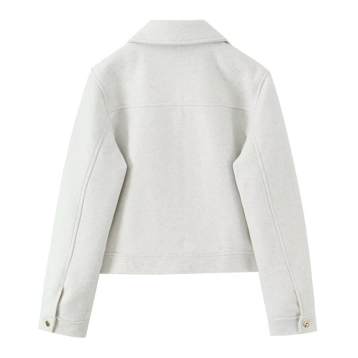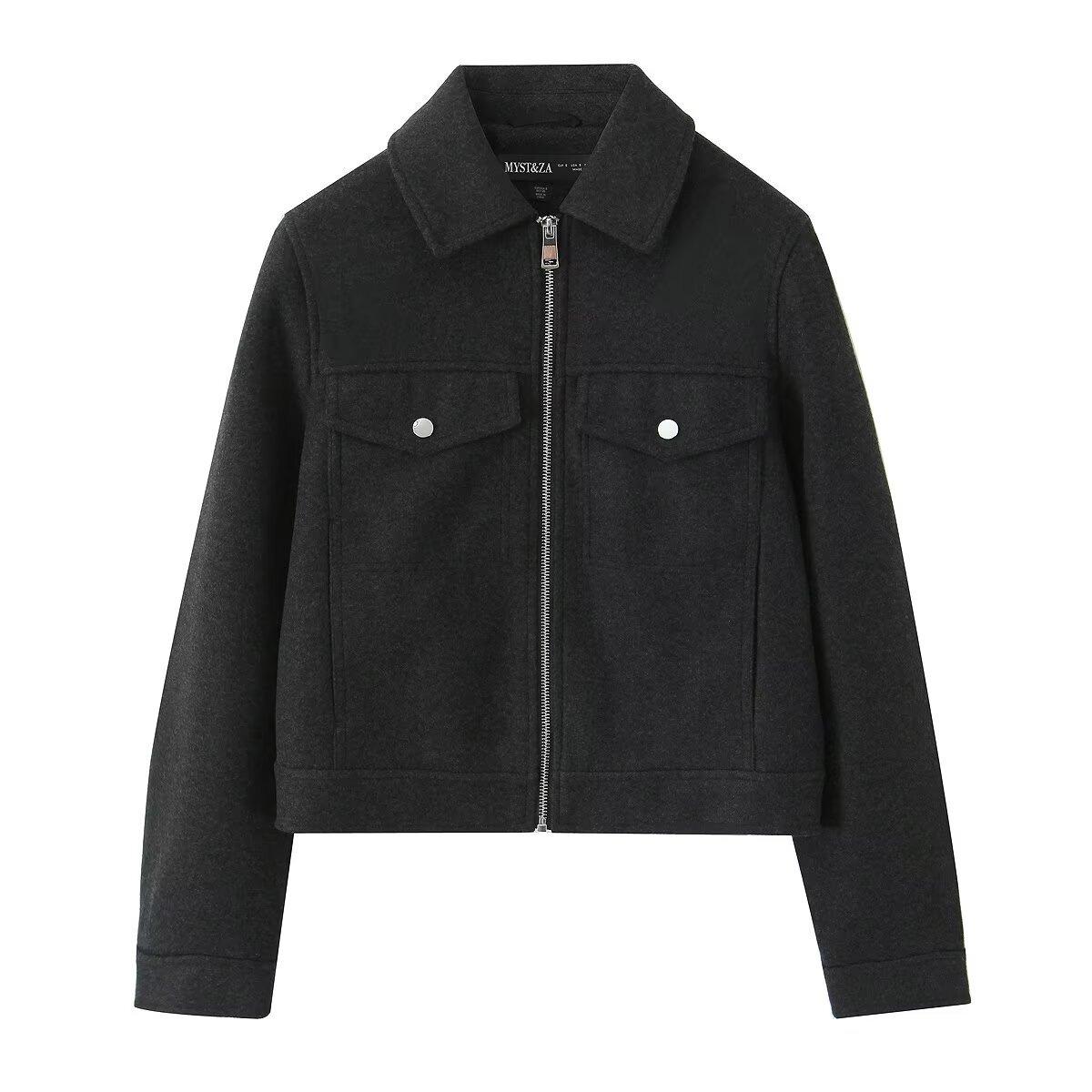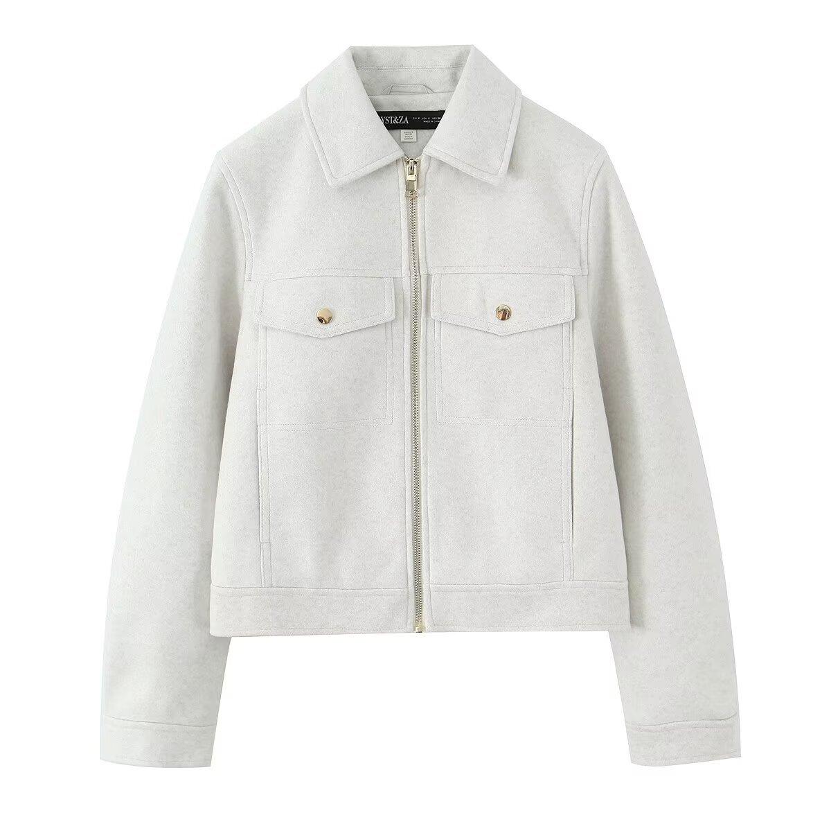 Ropa de mujer de comercio exterior transfronterizo 2025 otoño/invierno estilo europeo y americano solapa manga larga decoración de bolsillo chaqueta con cremallera L36286