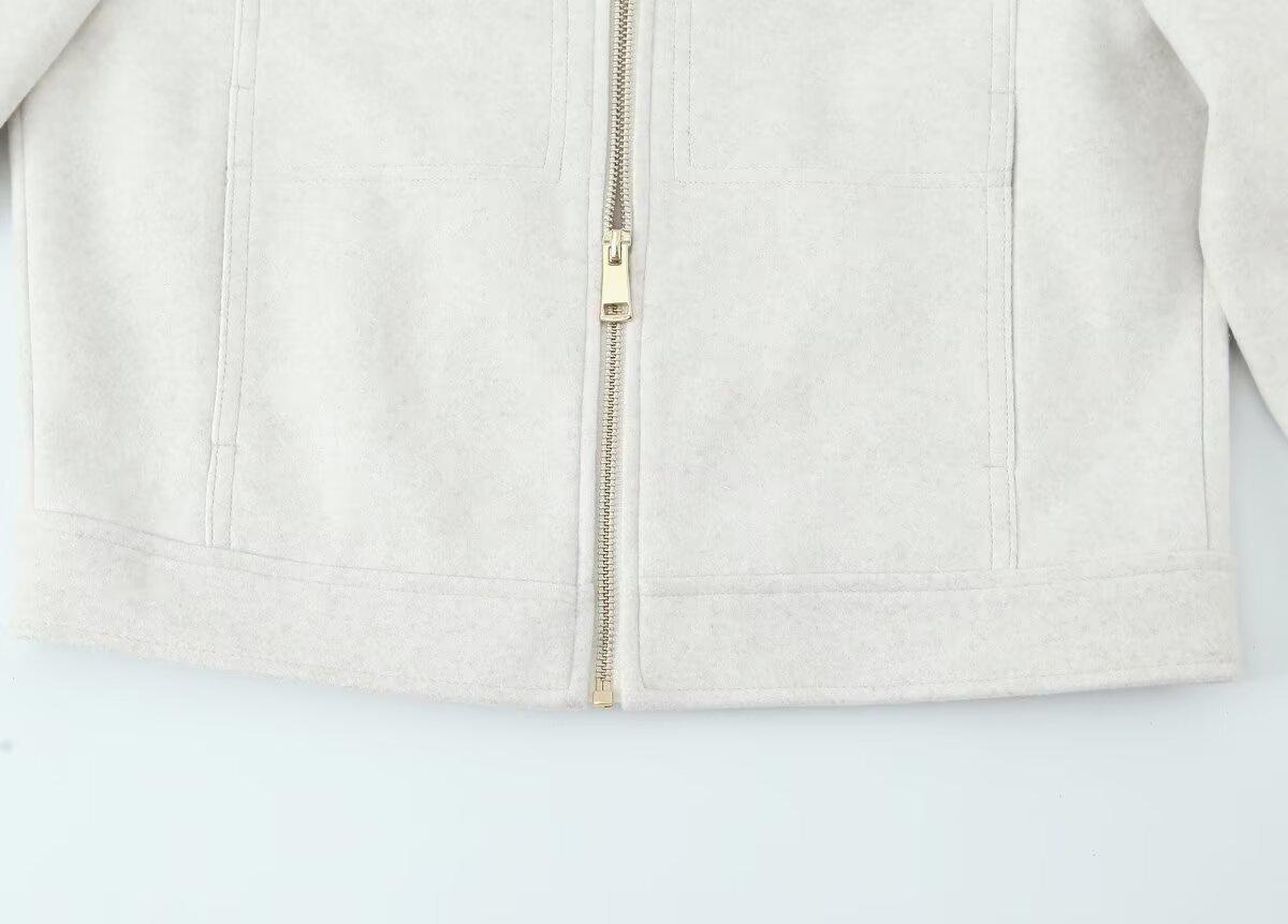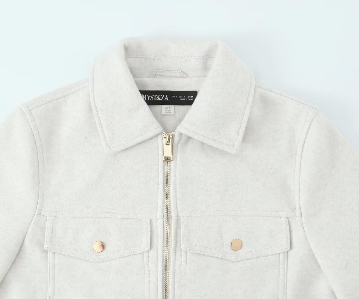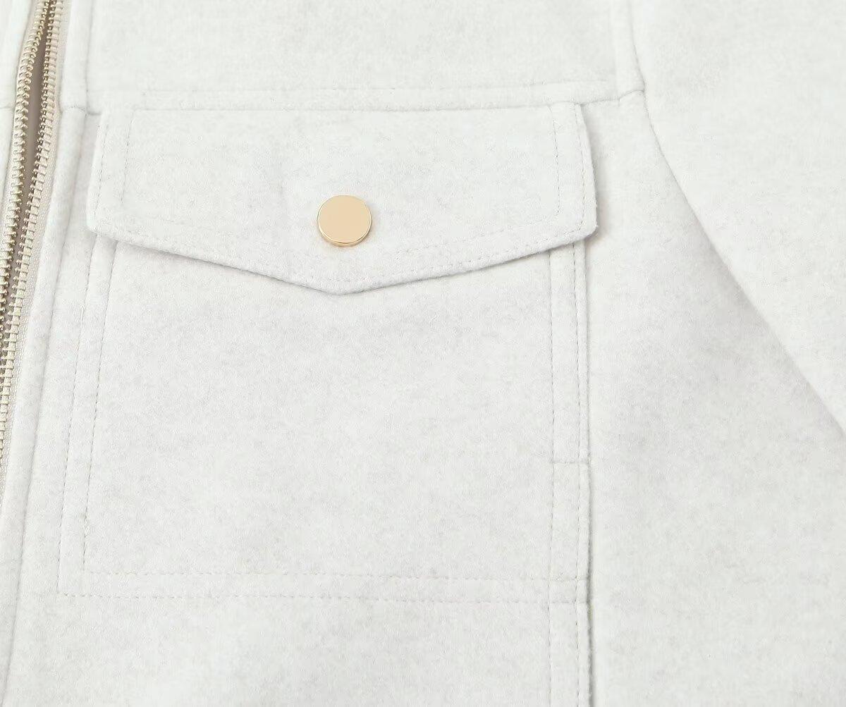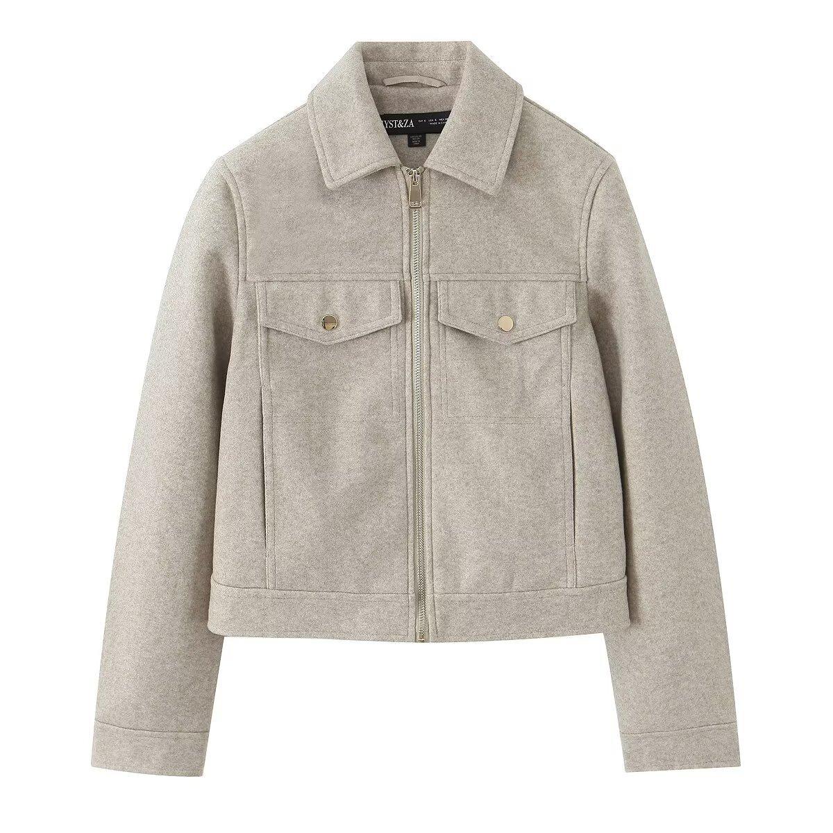 Ropa de mujer de comercio exterior transfronterizo 2025 otoño/invierno estilo europeo y americano solapa manga larga decoración de bolsillo chaqueta con cremallera L36286