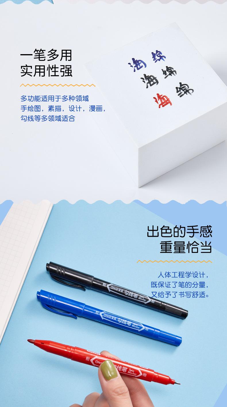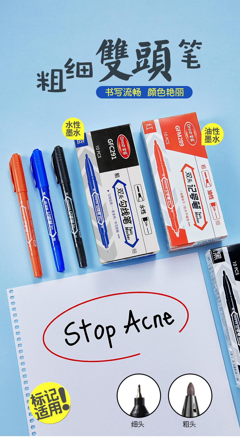 Domina el marcador aceitoso de doble punta para pintura infantil, negro a base de agua, pluma de trazo Goulien, grosor, marcador negro de doble punta