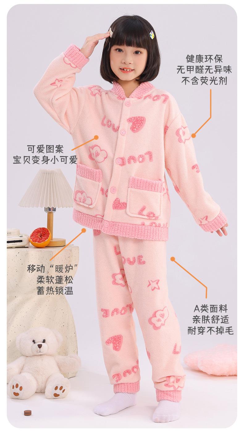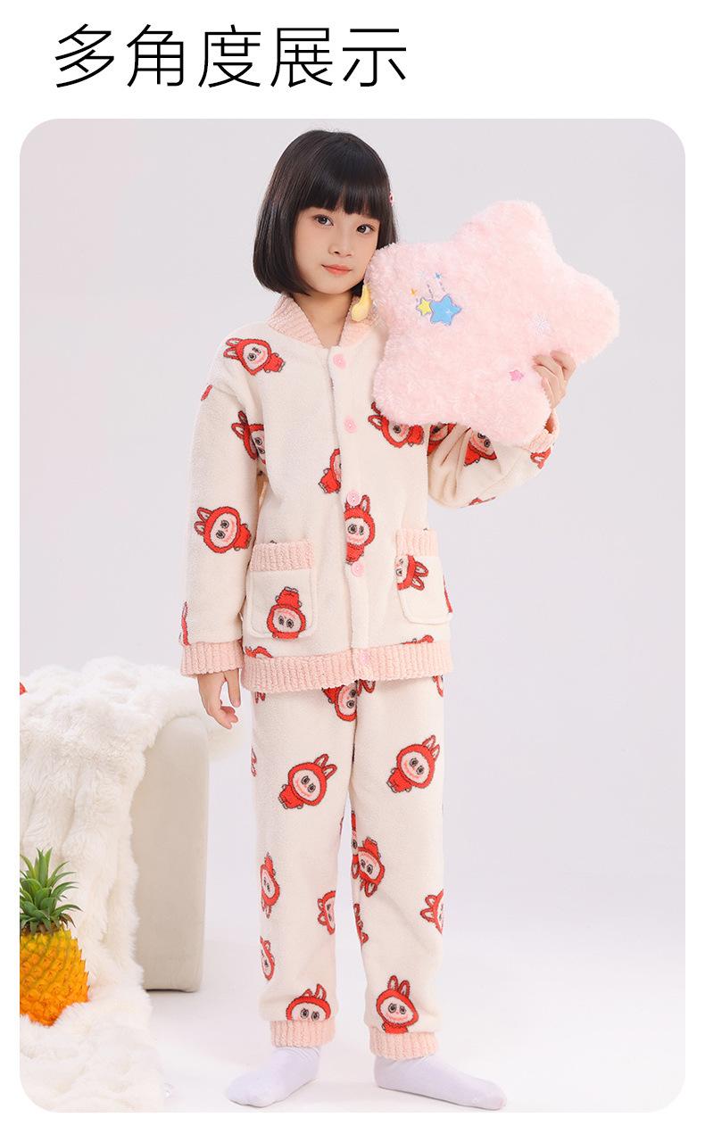 Pijamas de Forro Polar Coral para Niñas Espesos Cálidos Invierno Franela Niñas Bebé Estilo Otoño e Invierno Ropa para el Hogar Infantil Niños