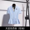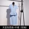 Sky blue short-sleeved suit + half skirt