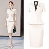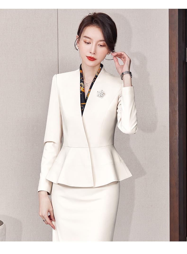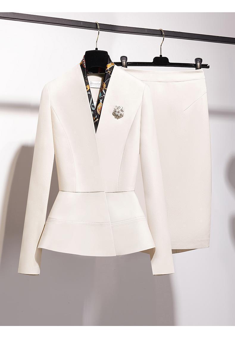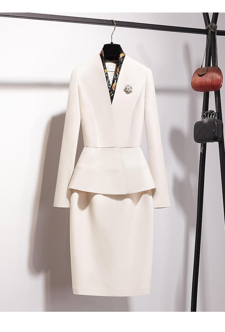 Off-white Long-sleeve Suit + Half Skirt, Off-white three-quarter sleeve suit + half skirt, Off-white long-slee...