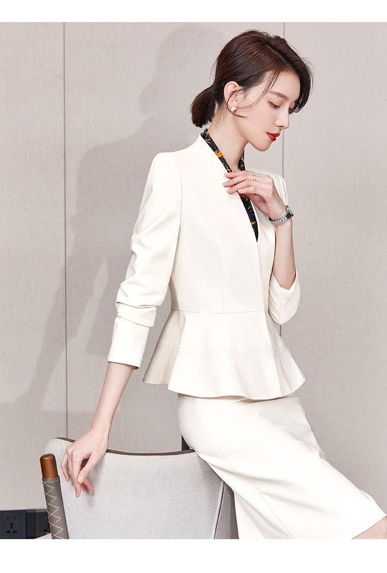 Traje de falda profesional de alta gama para mujer, traje blazer blanco hueso, ropa formal de negocios moderna para mujeres, uniforme de trabajo para esteticistas