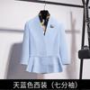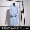 Sky blue three-quarter sleeve suit + half skirt
