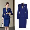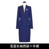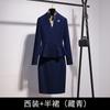 Dark blue long-sleeved suit jacket + half skirt