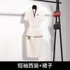 Off-white short-sleeved suit + half skirt