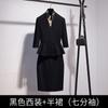 Black three-quarter sleeve suit + midi skirt