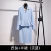 Sky blue Long-sleeved suit + half skirt