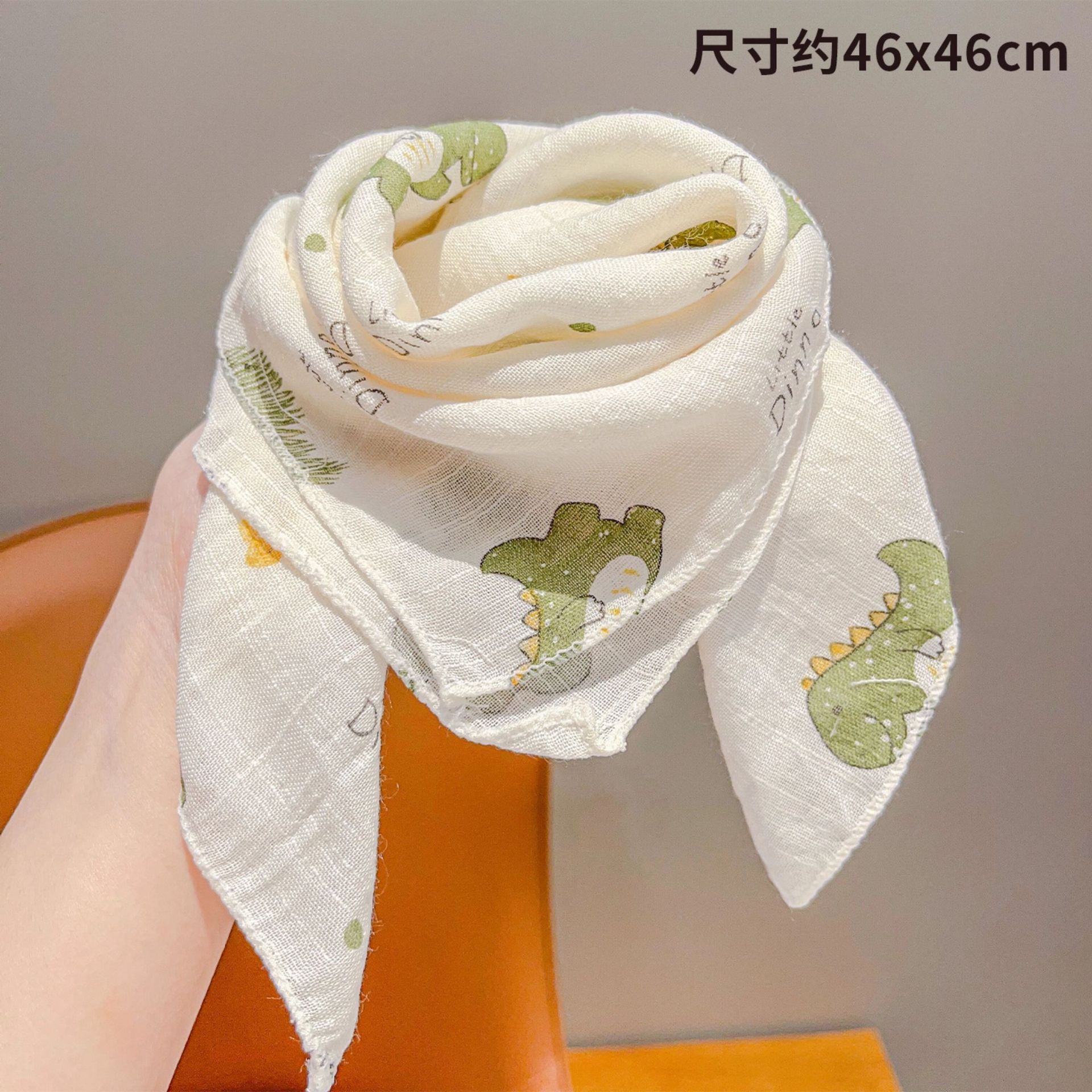 4-8 years 9# beige green dinosaur scarf (size approx. 46x46cm)