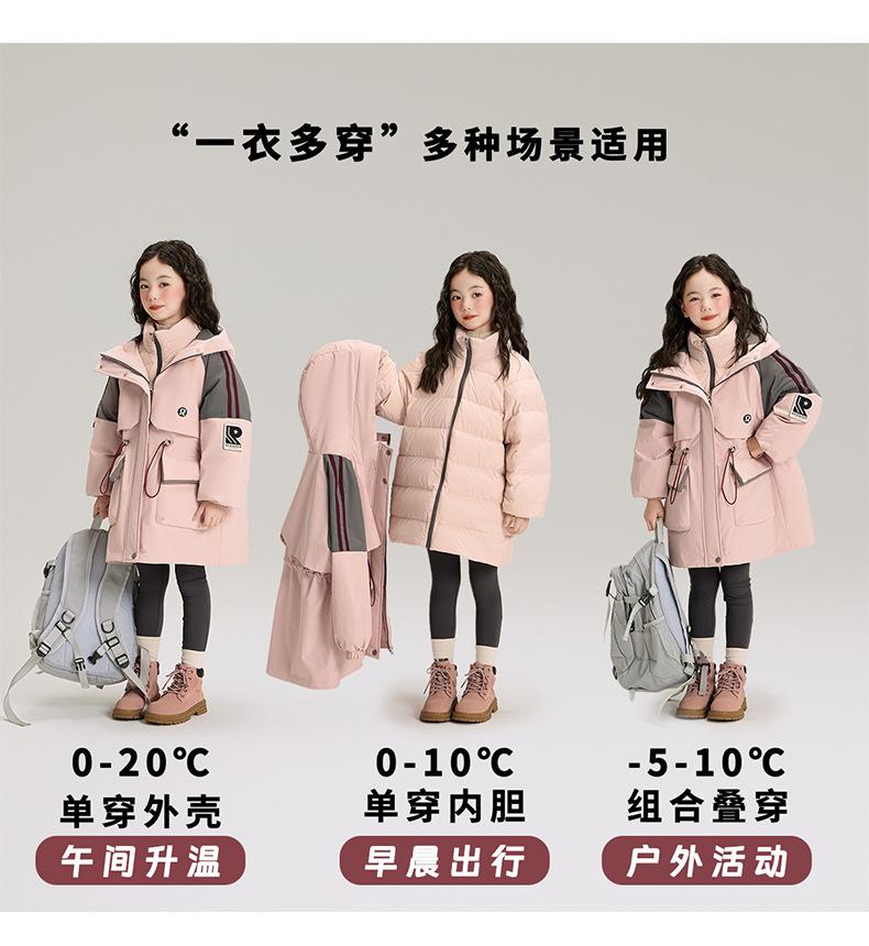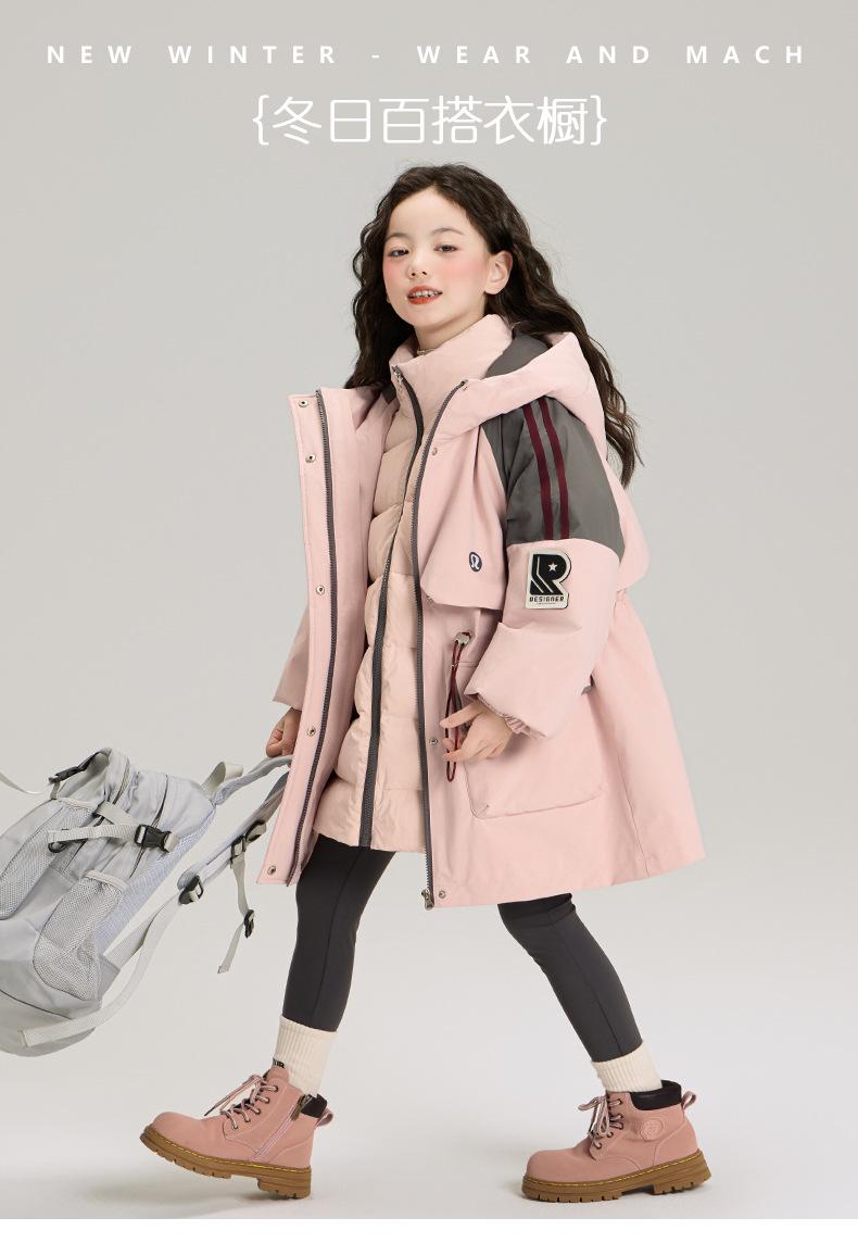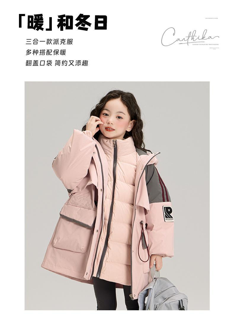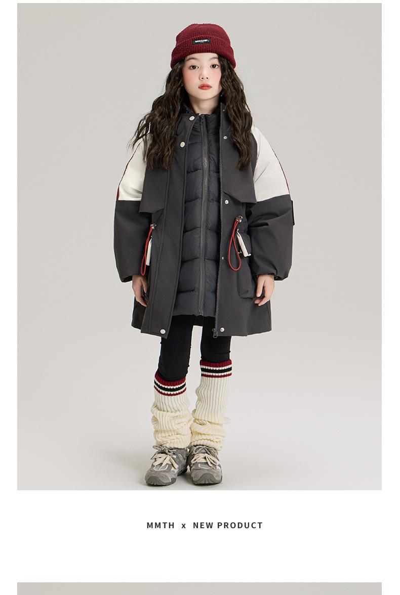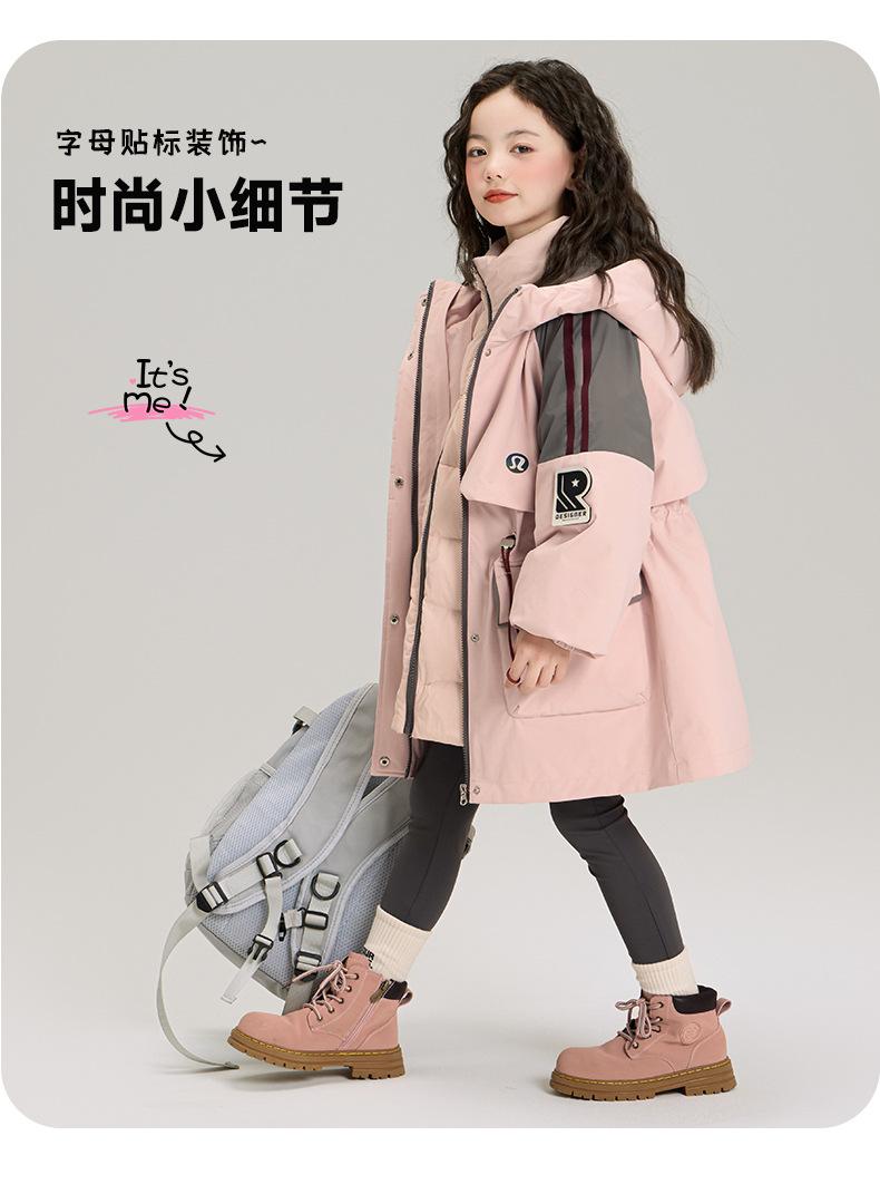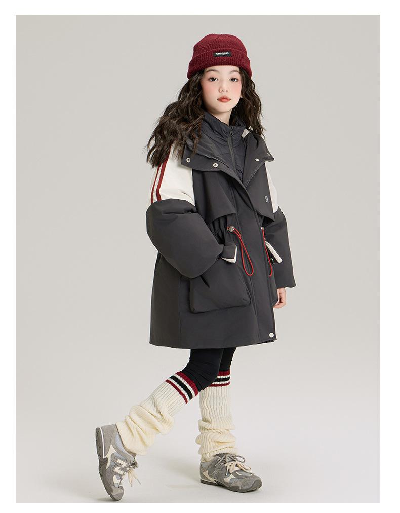 Abrigos para Niñas Otoño e Invierno Nuevo Estilo Parka con Capucha para Niños Niños Grandes Tres en Uno Acolchado Cortavientos Engrosado