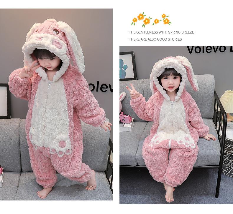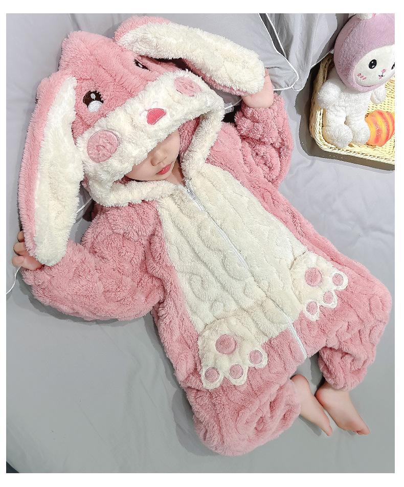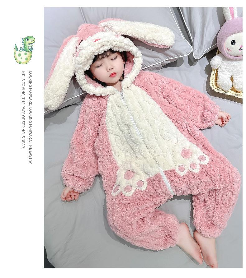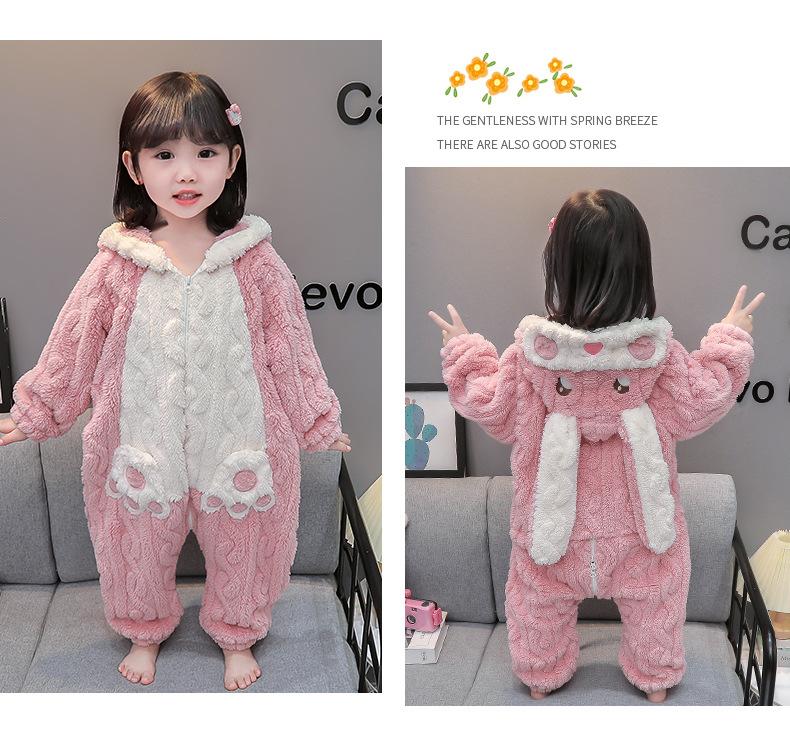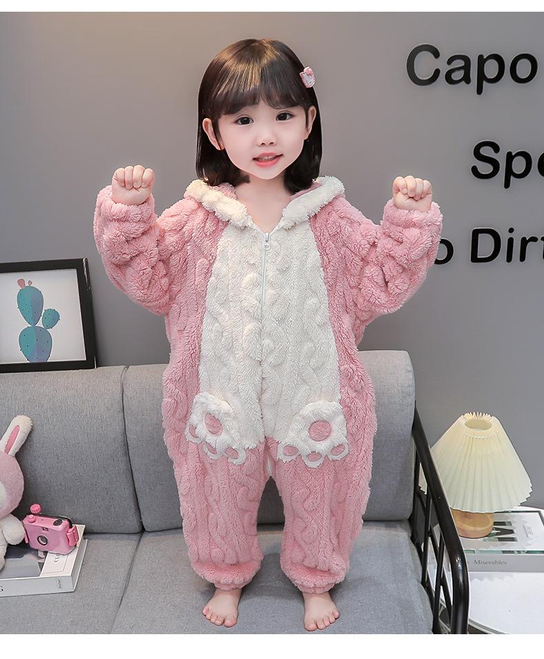 Pijama Mameluco para Niños 25 Otoño/Invierno Franela con Forro Polar Espesado Vellón Coral Saco de Dormir Bebé Niña Dibujos Animados Ropa de Casa