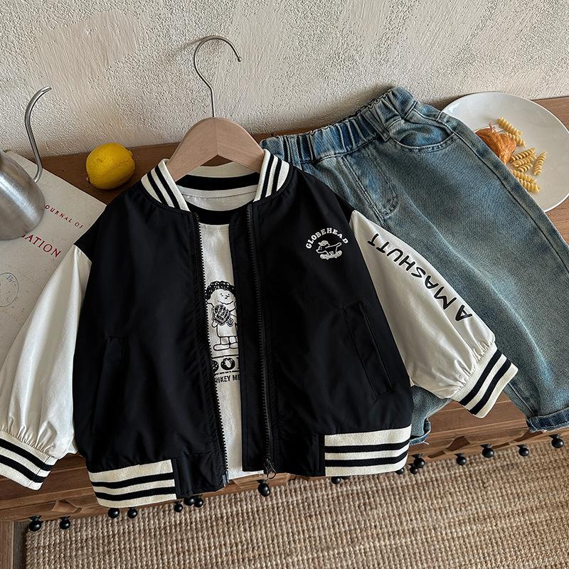 Ropa Exterior de Otoño para Niños 2025 Nuevo Estilo Ropa para Niños Uniforme de Béisbol Coreano para Niños Top de Bloques de Color Chaqueta Casual para Bebé Tendencia