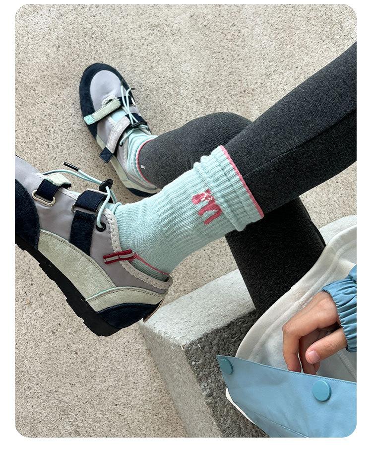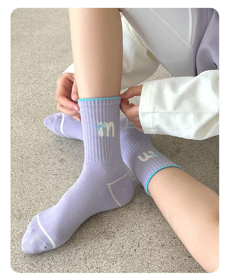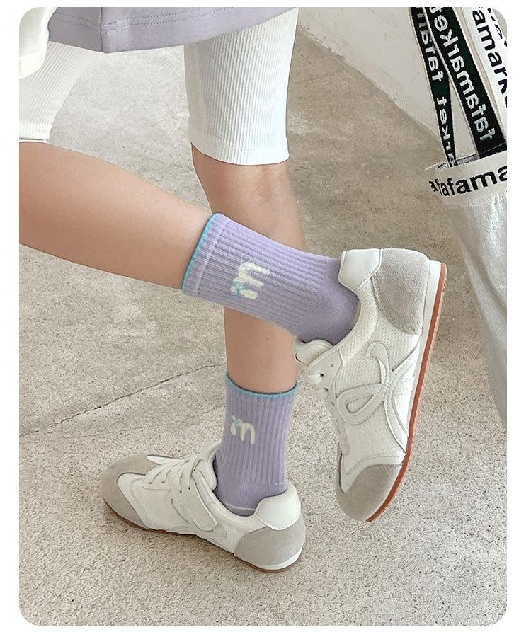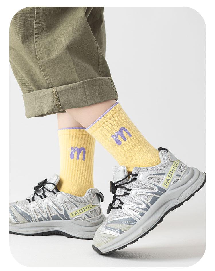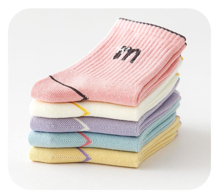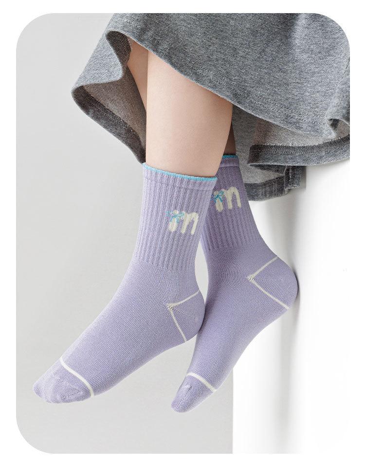 Calcetines para Niñas Primavera y Otoño Dopamina Deporte Algodón Peinado Sin Costuras Calcetines para Niños Media Caña Letra Lazo Calcetines de Moda