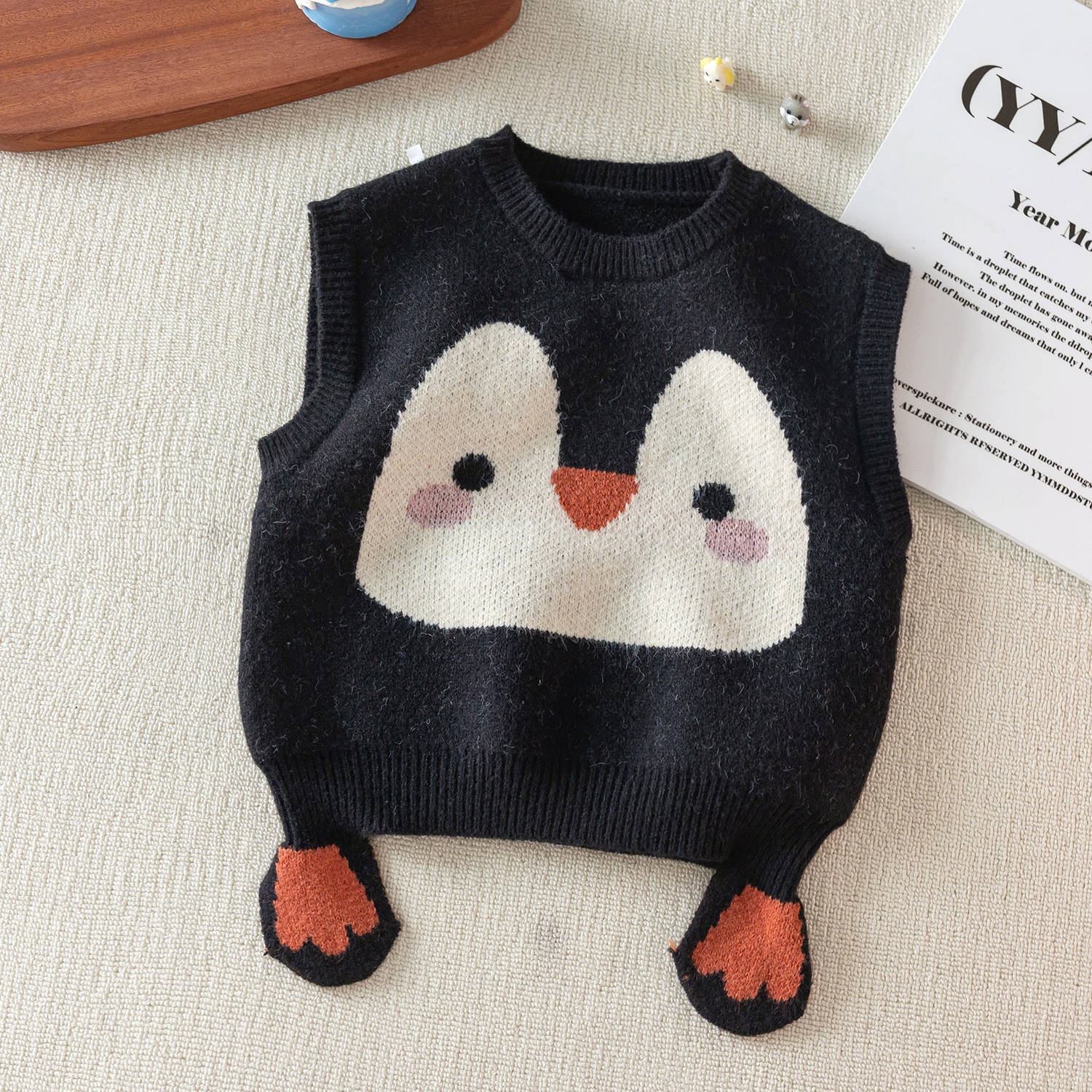 Chaleco para niños suéter lindo tejido niña otoño estilo coreano versátil cuello redondo sin mangas prenda exterior chaleco niño