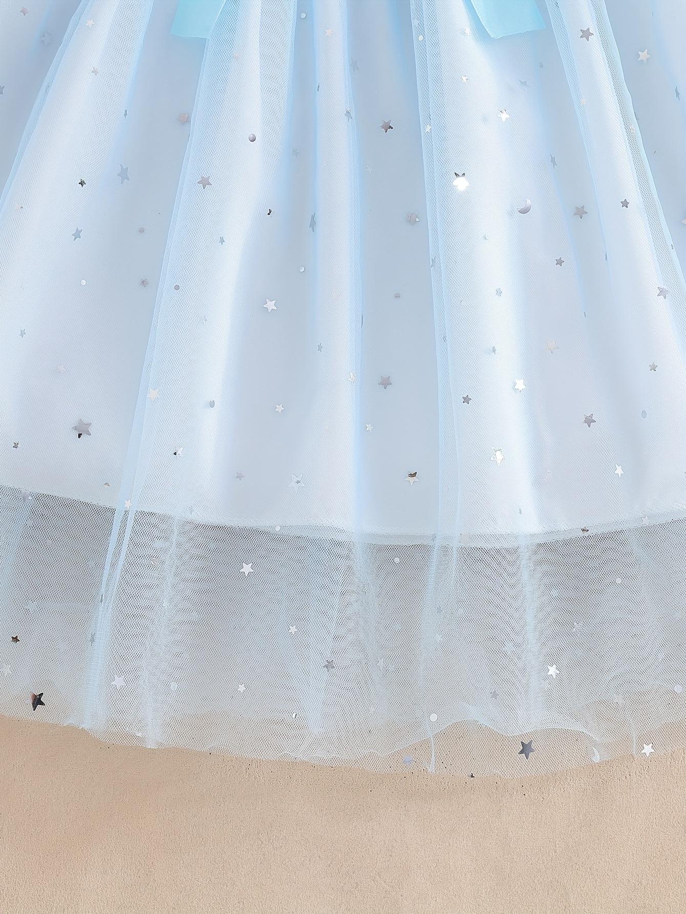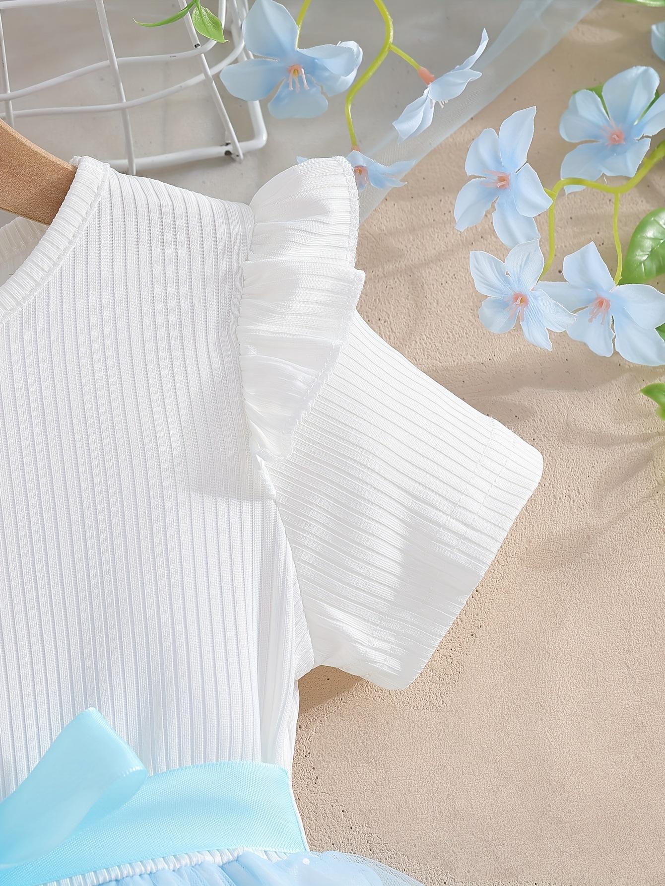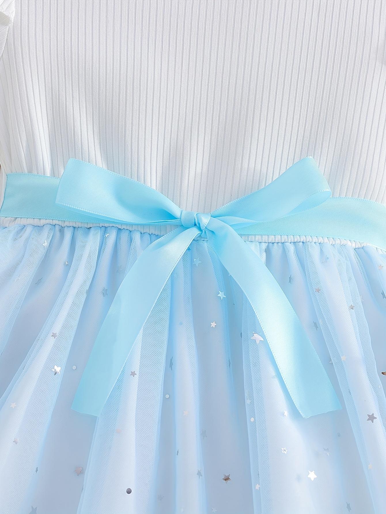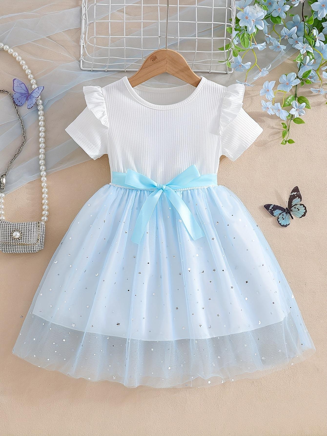 Comercio Exterior Vestido de Lazo de Manga Corta para Bebé 2025 Verano Nuevo Moda de Niña Falda de Malla Princesa Tendencia