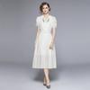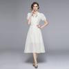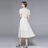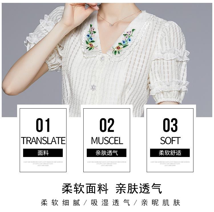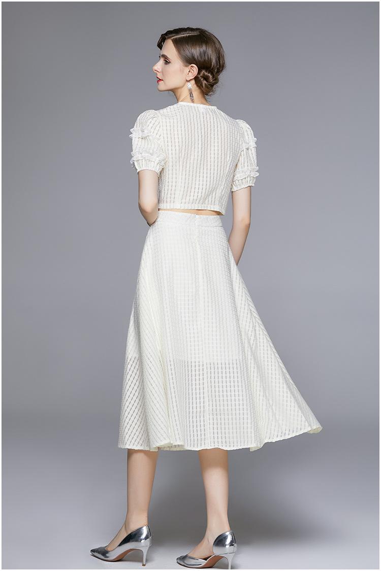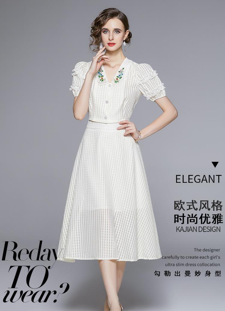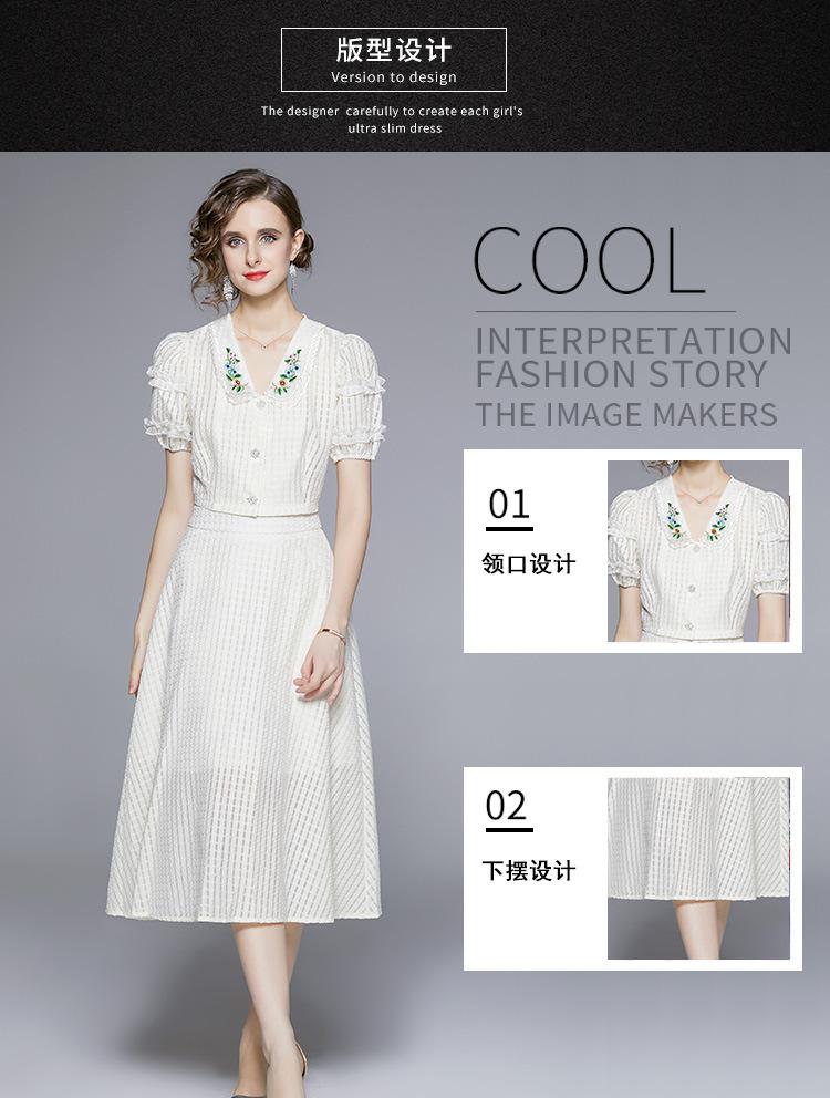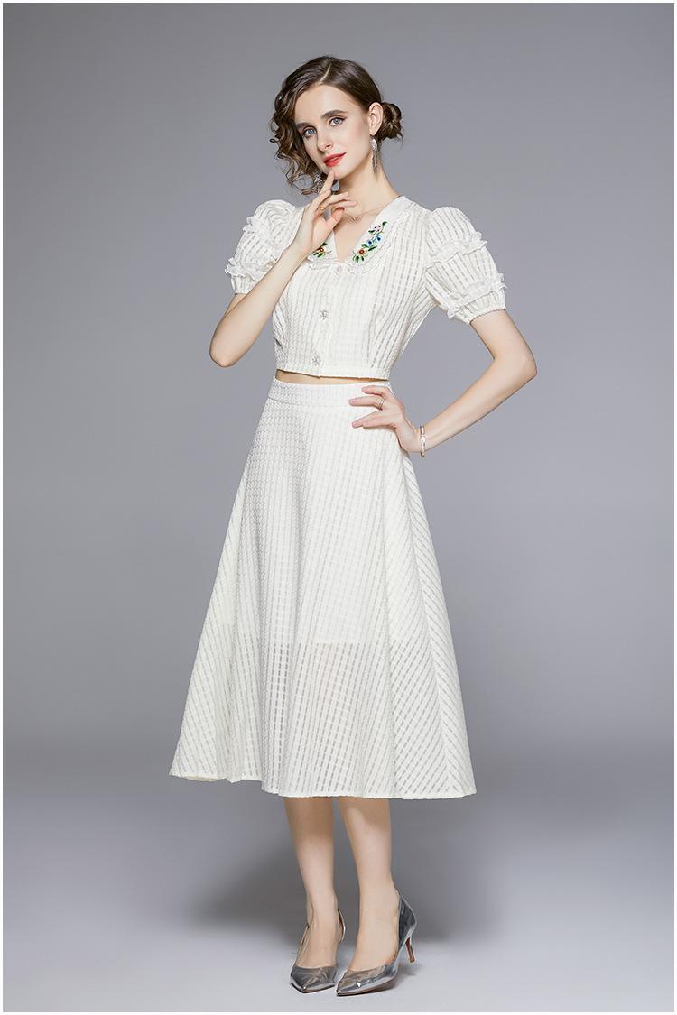 Foto real-traje estilo fragancia pequeña camisa con cuello de muñeca bordado falda de cintura alta temperamento de socialité set waffle de dos piezas