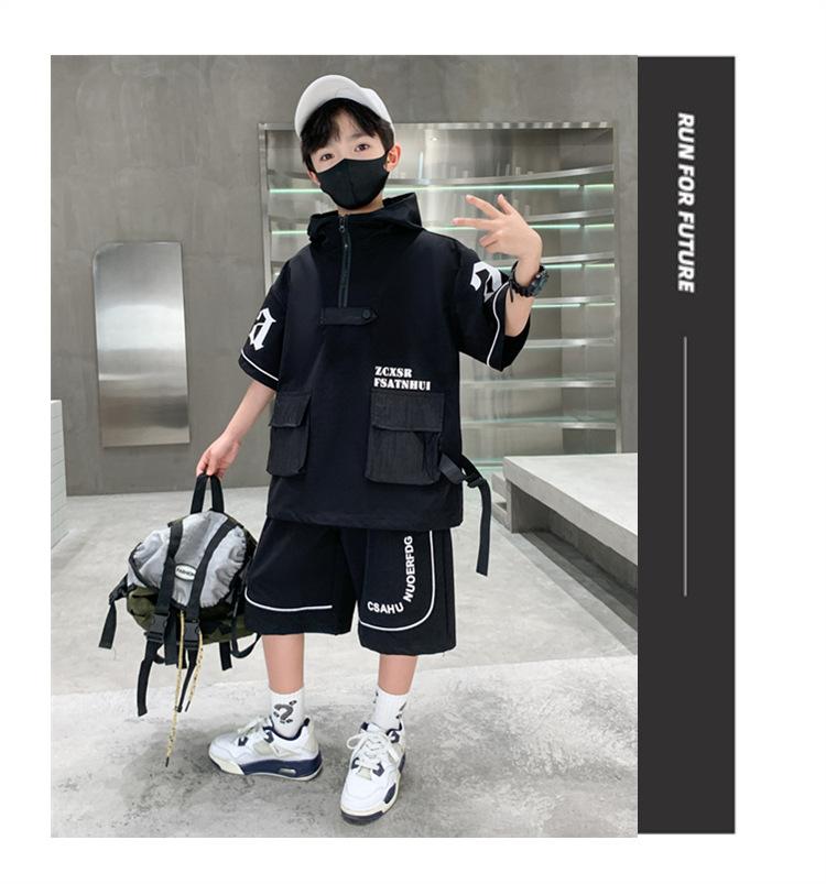 Traje de Verano para Niño 2025 Nuevo Moda de Celebridad de Internet Moderno de Manga Corta Fresco y Guapo Niño Niños Grandes Ropa de Verano Deportiva Delgada para Niños