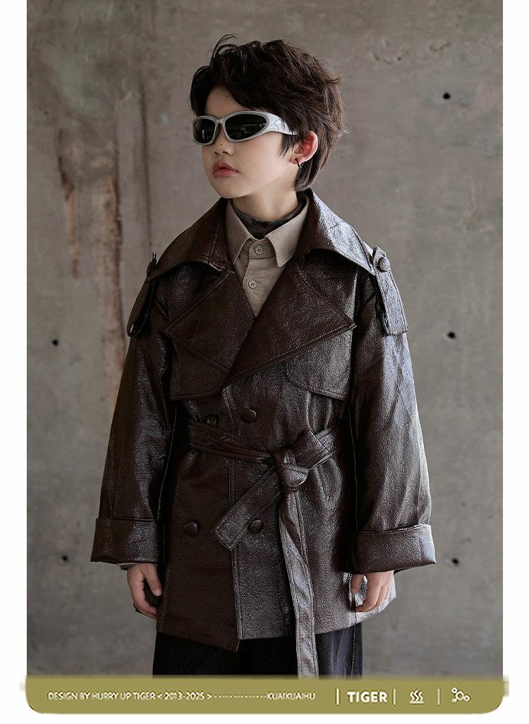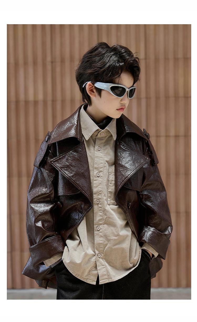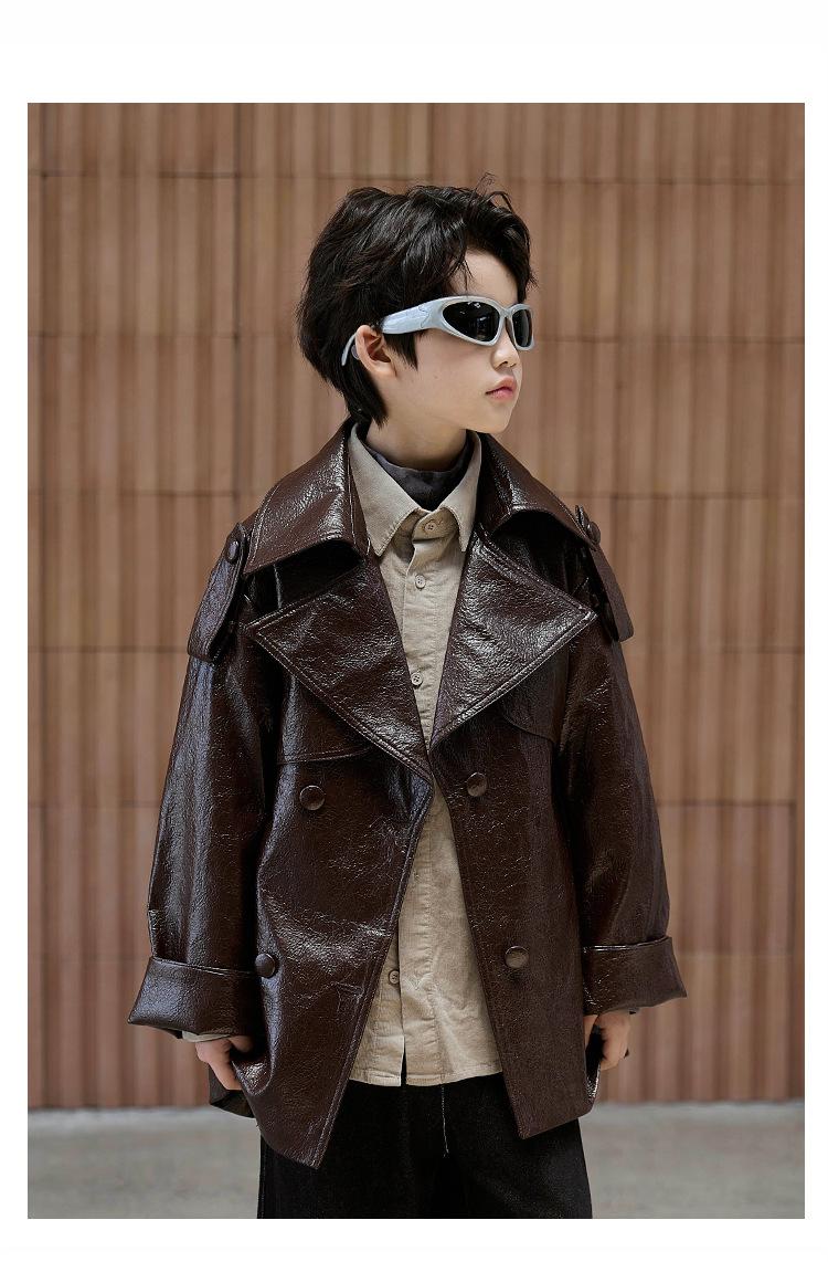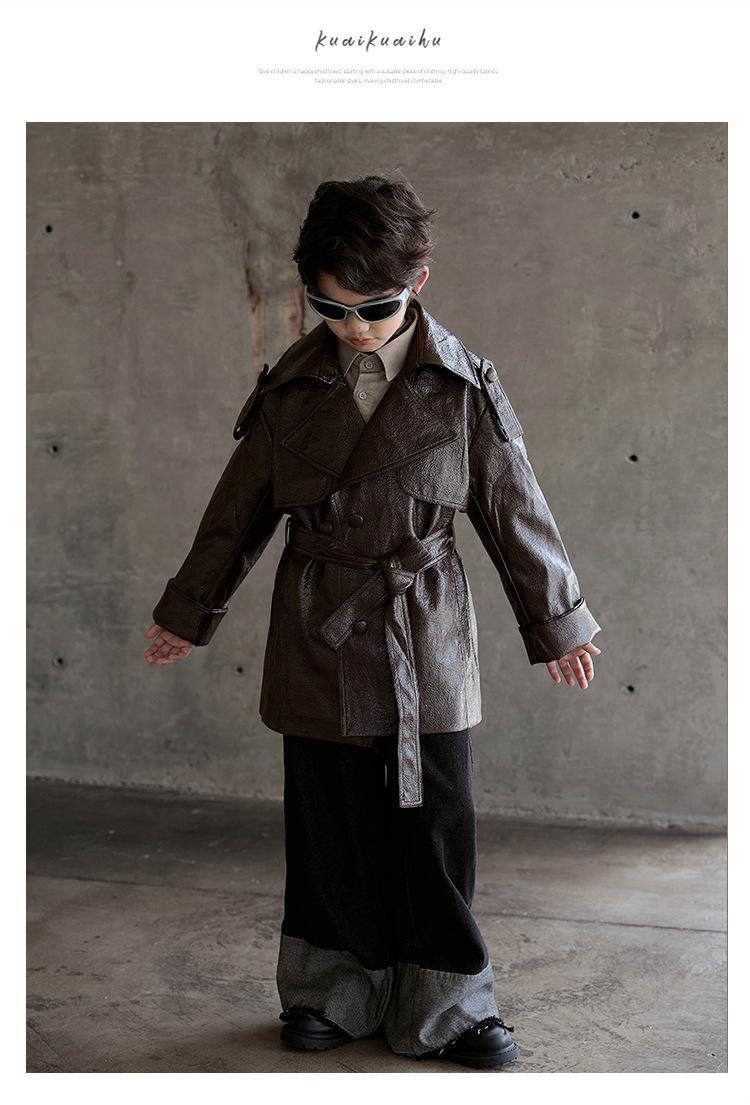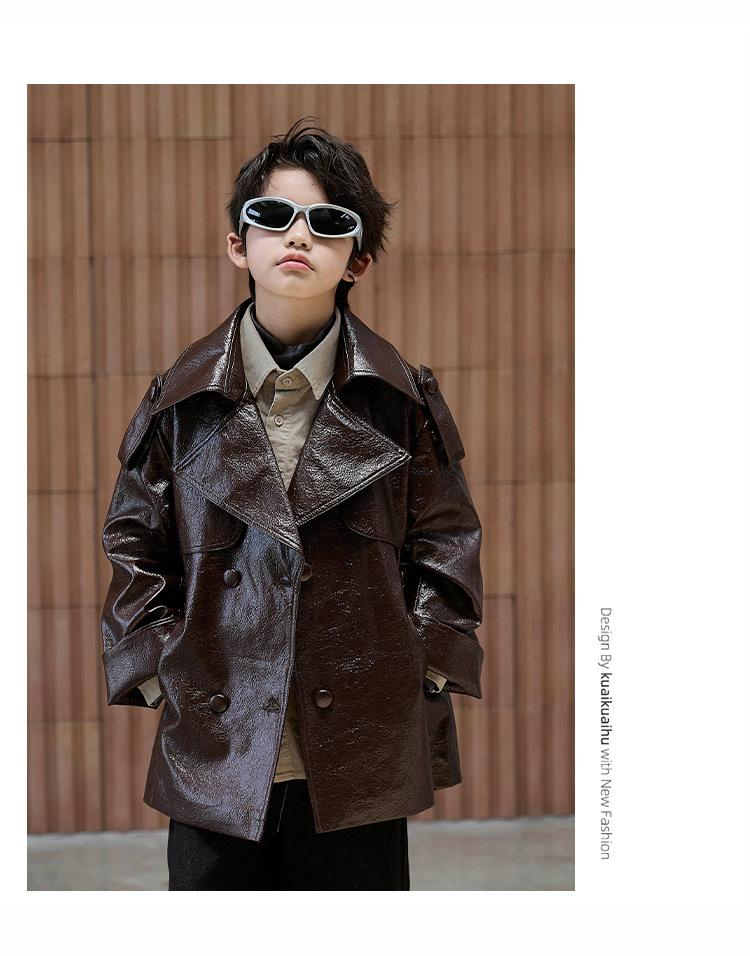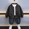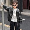 Ropa exterior para niños Primavera Otoño Chaqueta de cuero negra 2025 Nuevo estilo Chaqueta para niños grandes Ropa de primavera Top para niños Venta al por mayor Tendencia