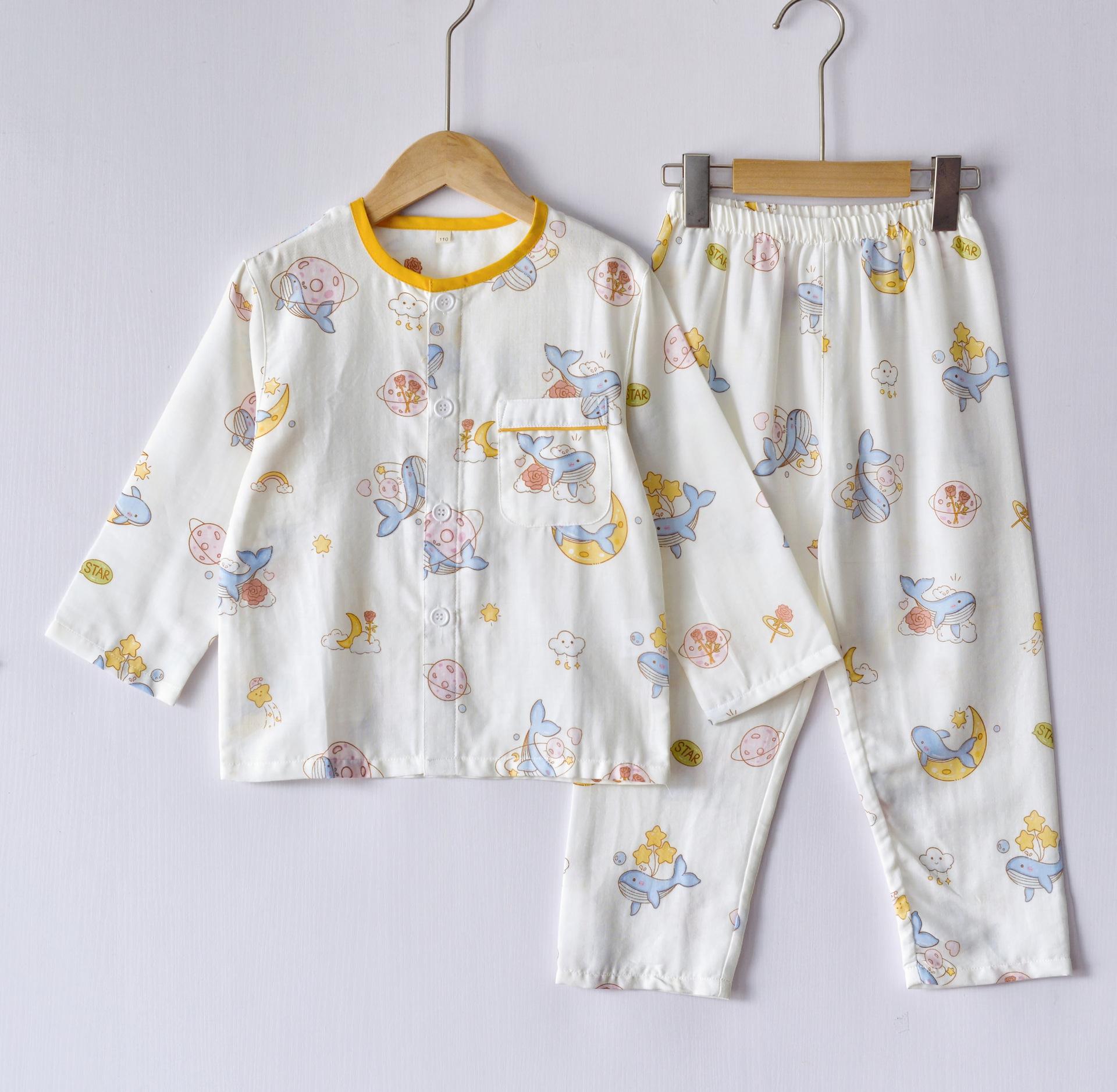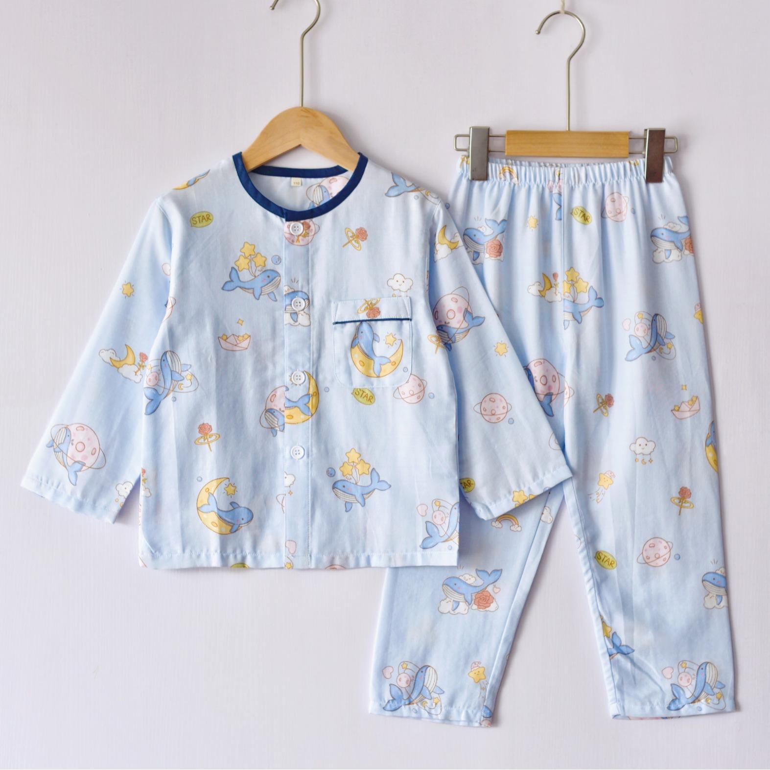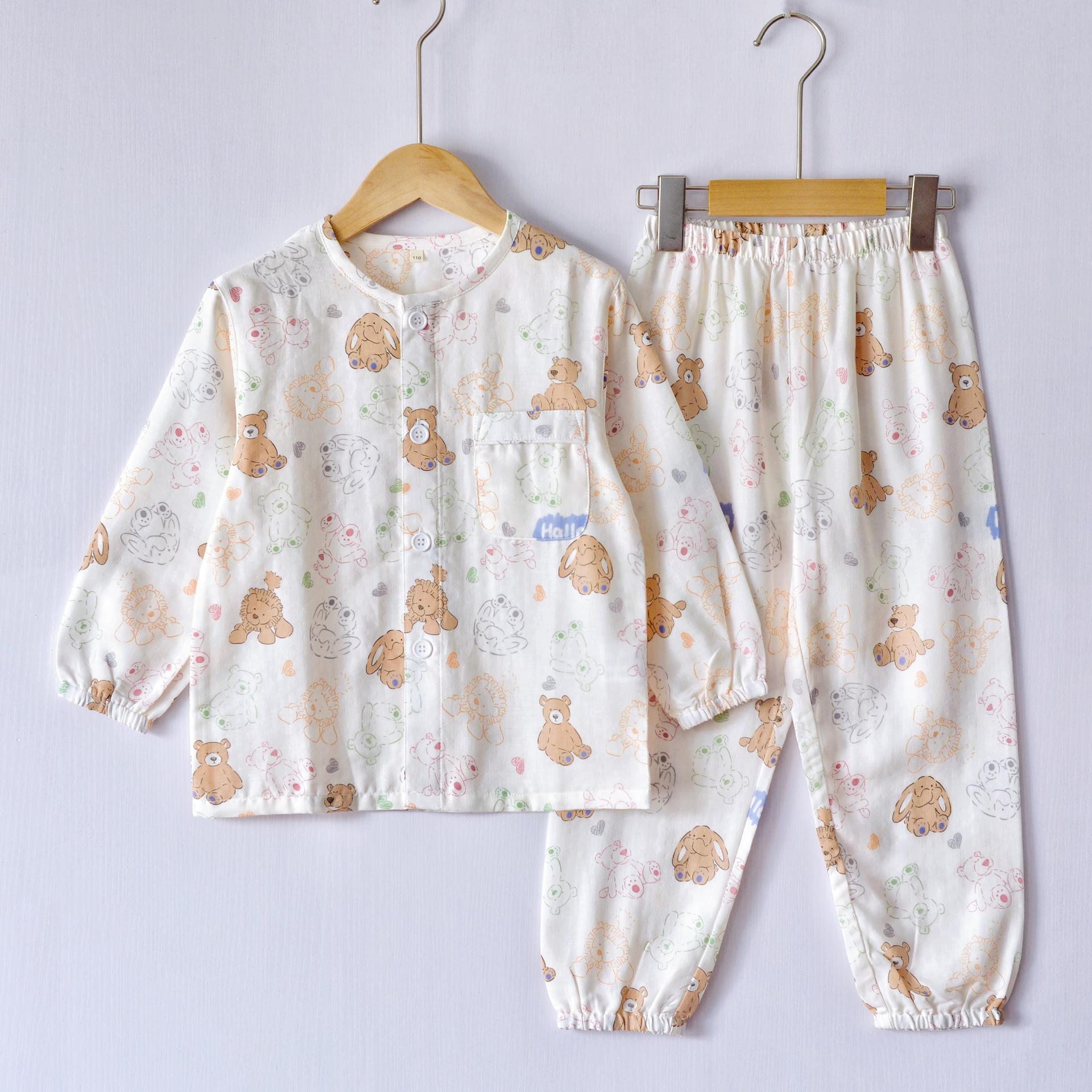 Primavera nuevo algodón gasa Traje de pijama de manga larga para niños niños primavera y otoño dibujos animados ropa para el hogar