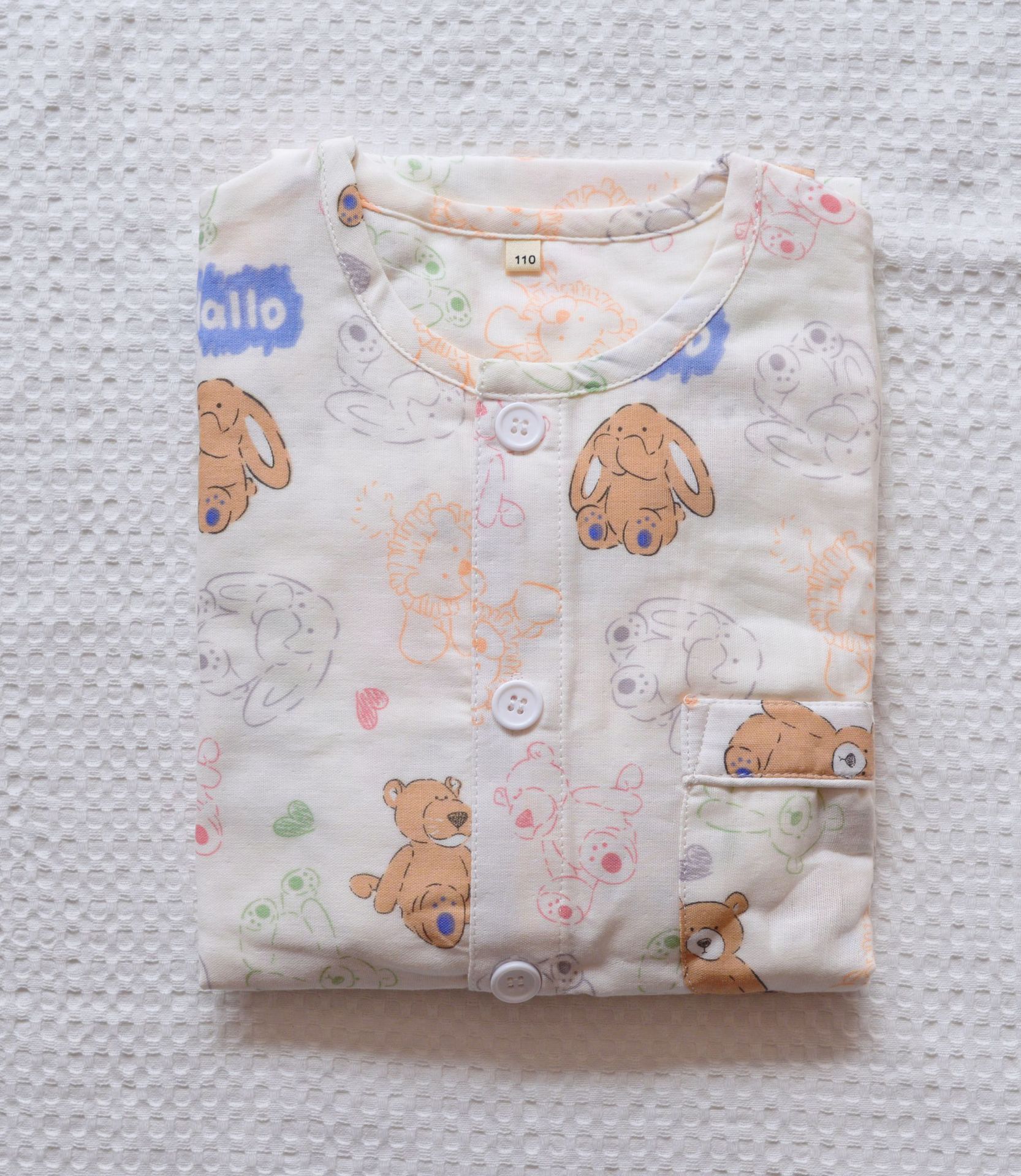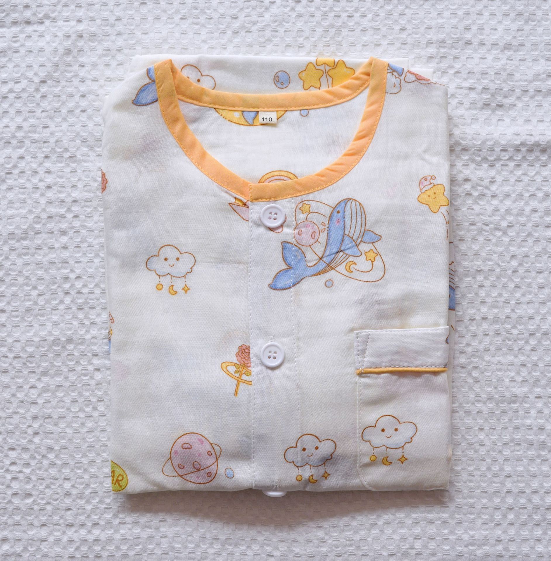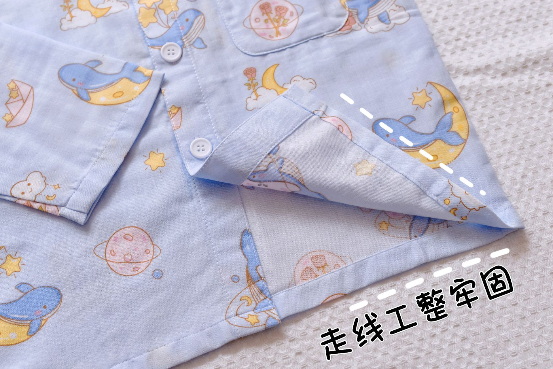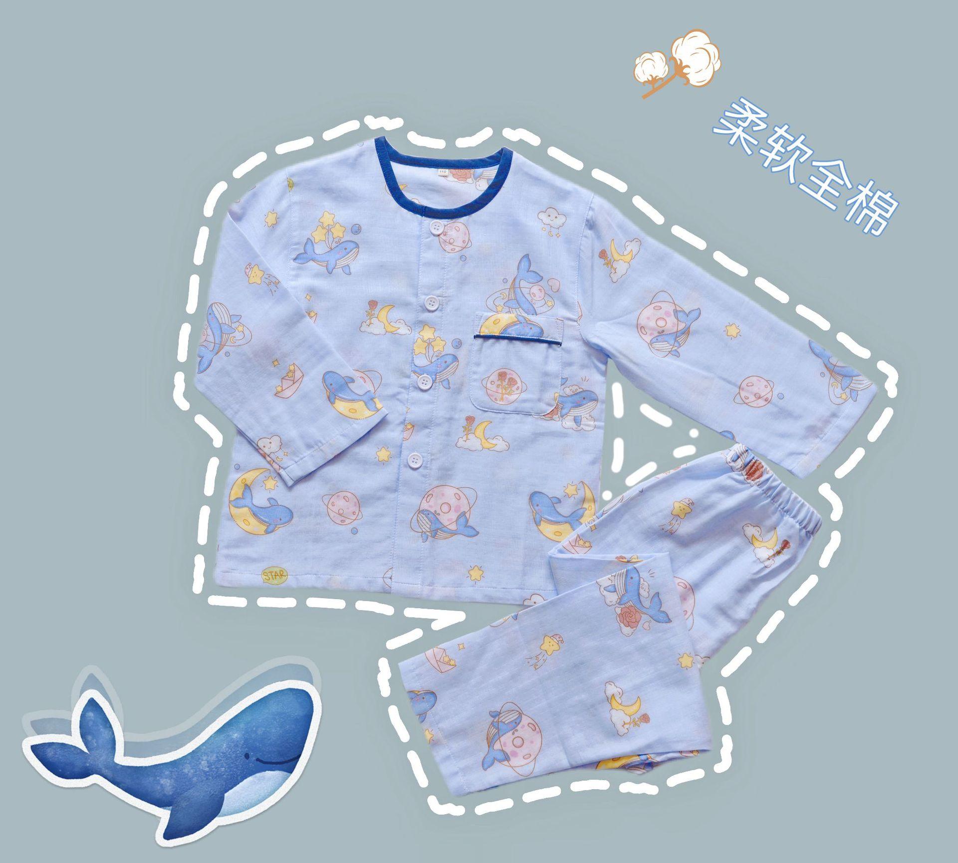 Primavera nuevo algodón gasa Traje de pijama de manga larga para niños niños primavera y otoño dibujos animados ropa para el hogar
