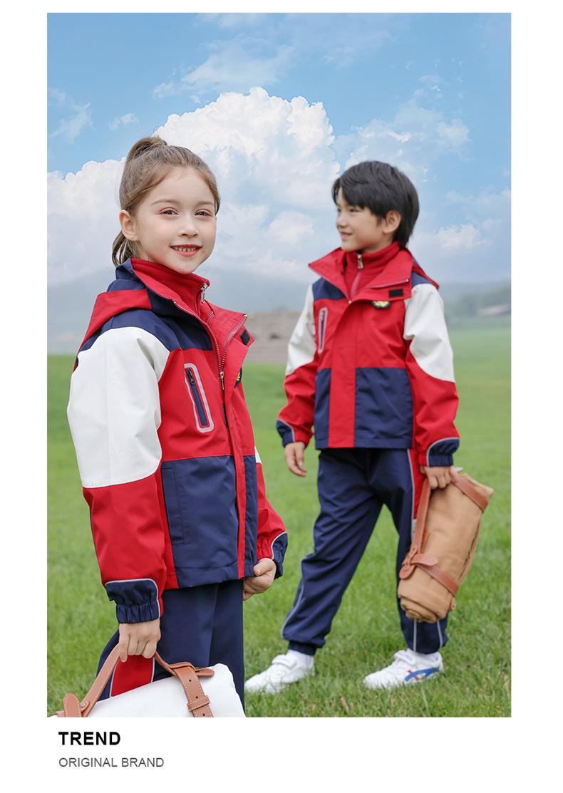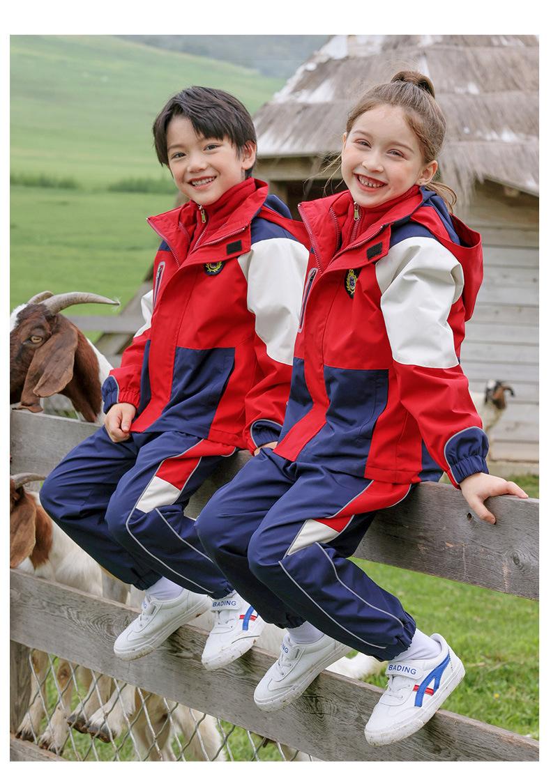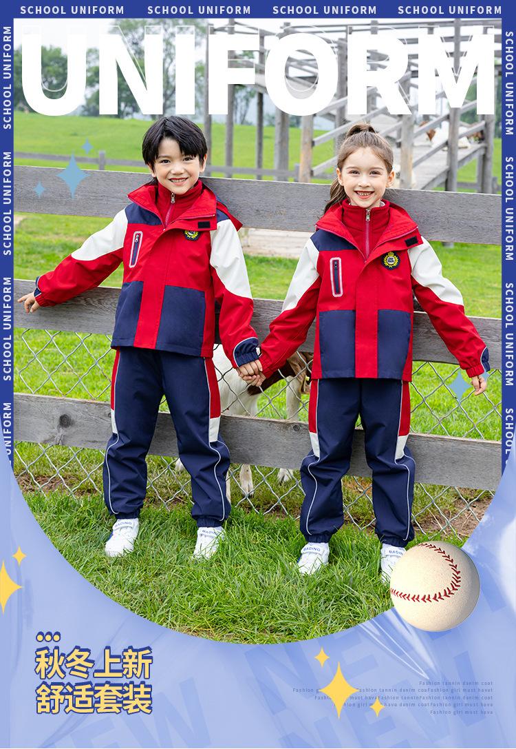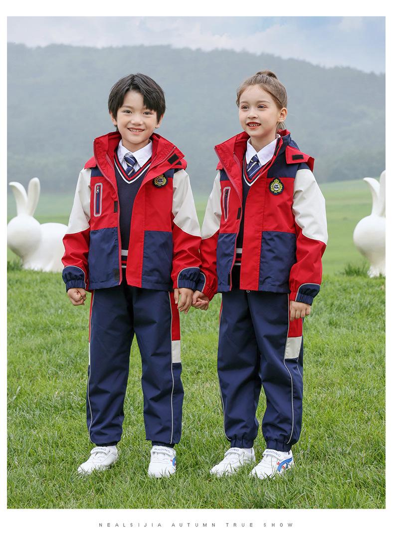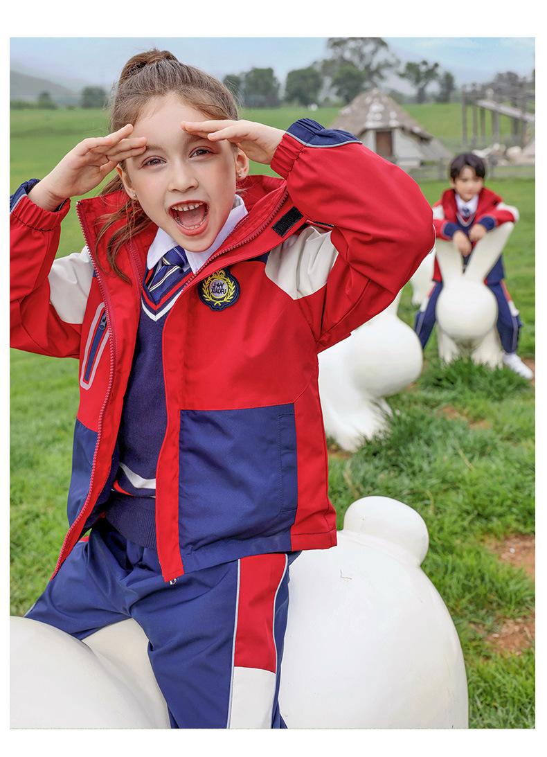 Rompevientos de Uniforme Escolar Otoño e Invierno Nuevo Uniforme de Jardín de Niños Estudiante de Escuela Primaria Primavera y Otoño Conjunto Rojo Uniforme de Clase de Deportes Conjunto de Tres Piezas