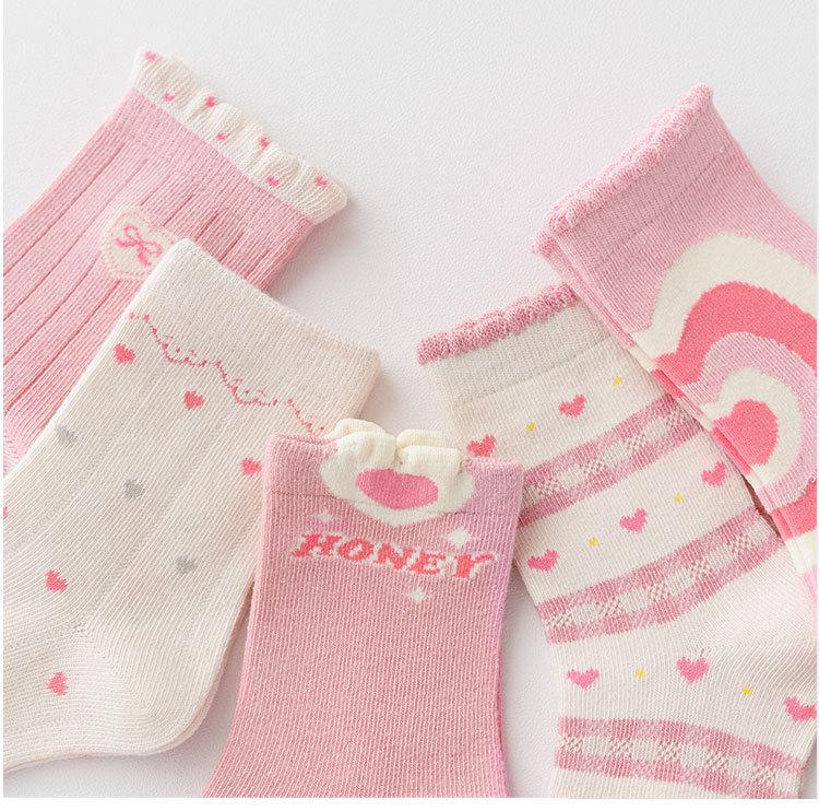 Calcetines para niños 2025 Calcetines de algodón de otoño Calcetines de corazón dulce Calcetines para bebés medianos y grandes Calcetines para niñas Clase A Venta al por mayor