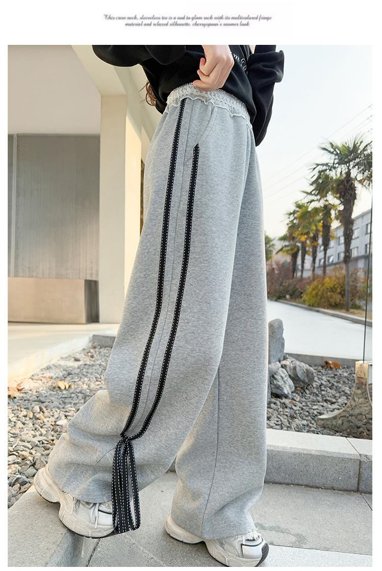 Pantalones Deportivos de Otoño para Niñas 2025 Estilo Popular Caliente Niñas Grandes Super Guapas Estilo Coreano Pierna Recta Pantalones de Chándal Pantalones de Pierna Ancha