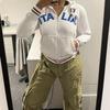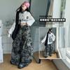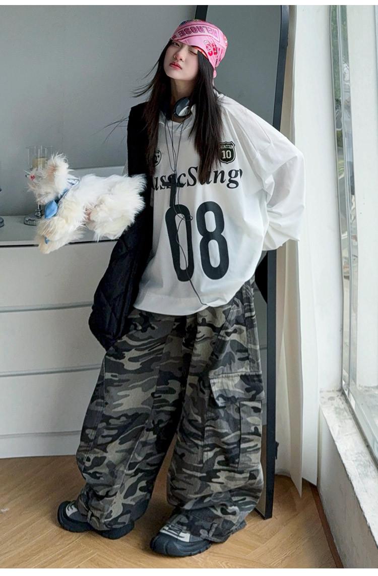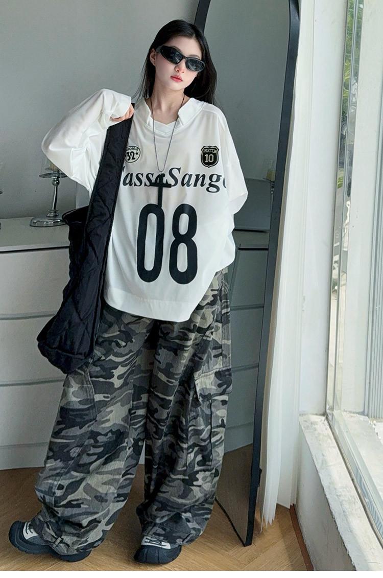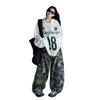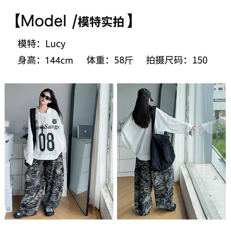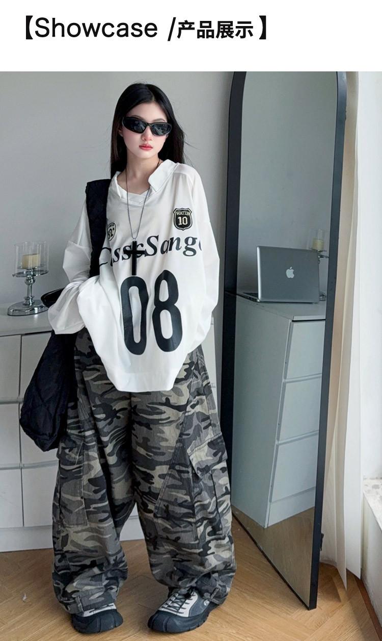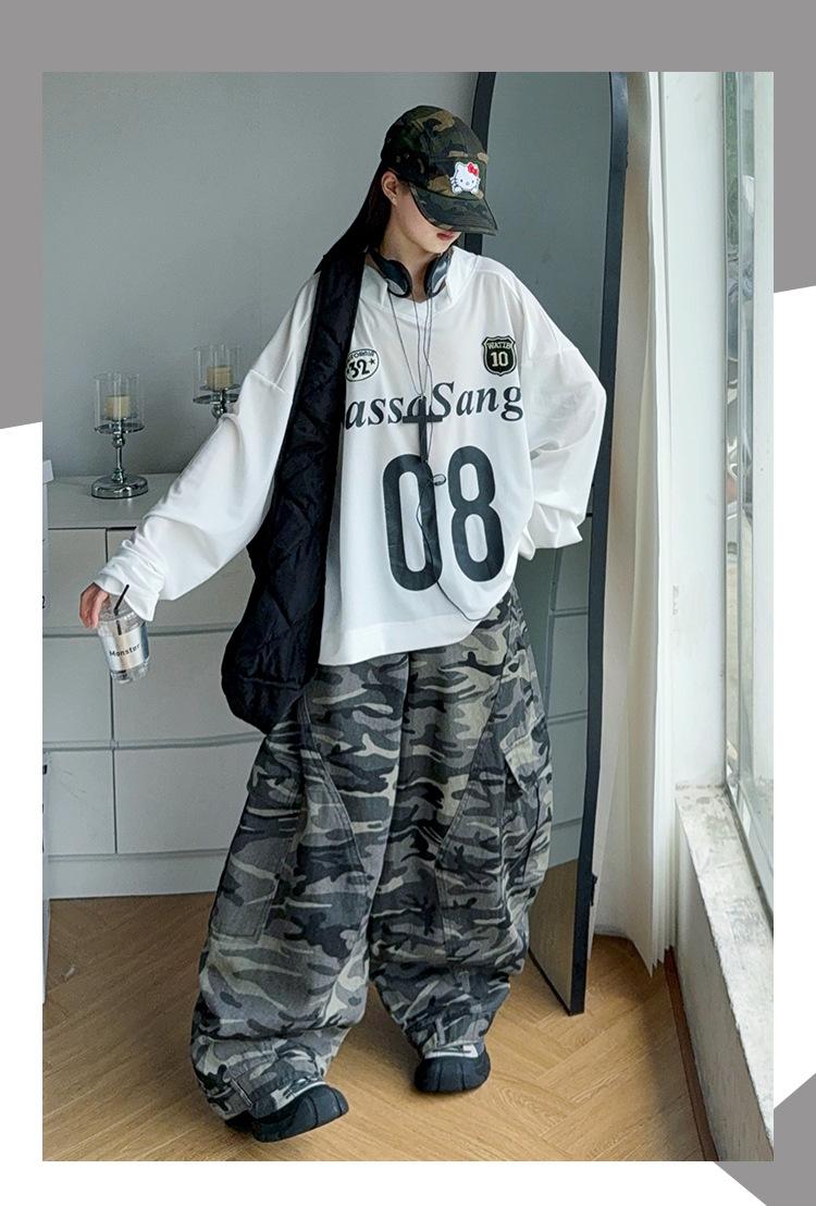 Camiseta Deportiva de Manga Larga para Niñas con Estampado de Letras Retro Americano para Exterior Otoño 2025 Nuevo Jersey Pantalones de Camuflaje