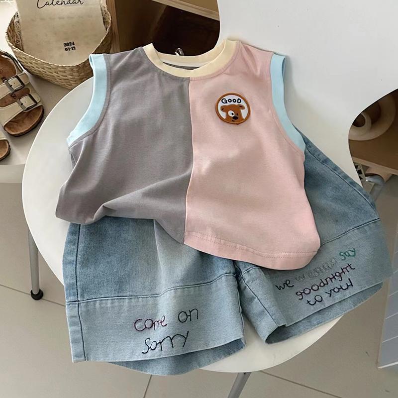 Ropa Coreana para Niños Chaleco para Niños Algodón Bebé 24 Ropa de Verano para Niños y Niñas, Camisetas sin Mangas Casuales y Versátiles con Combinación de Colores