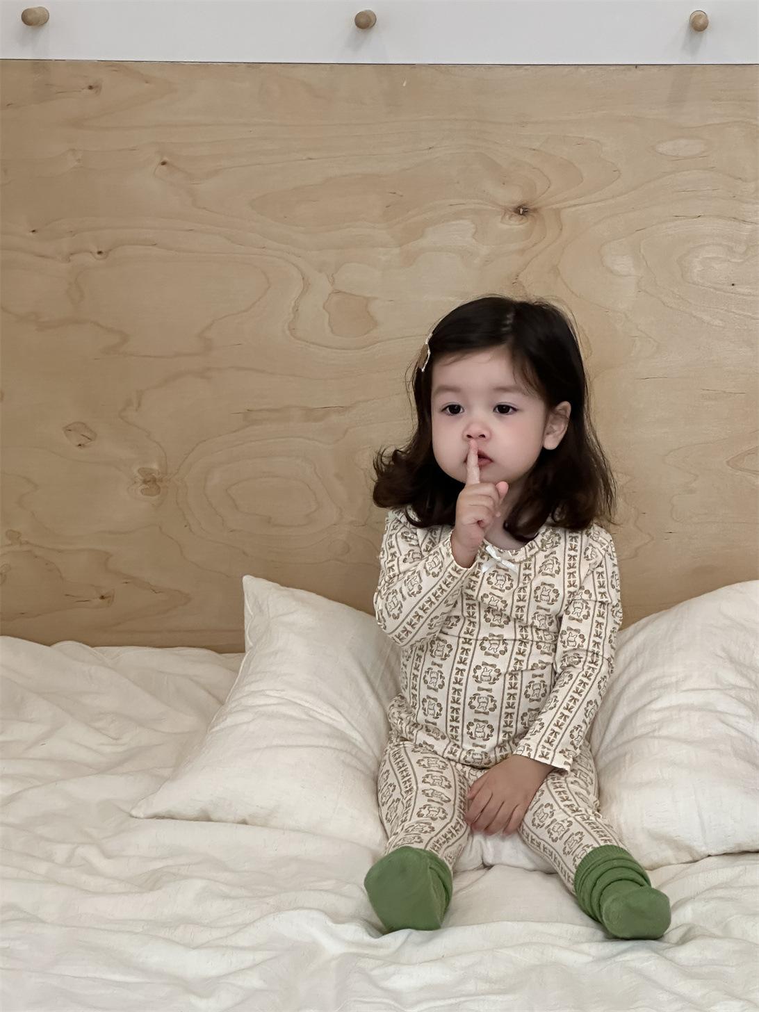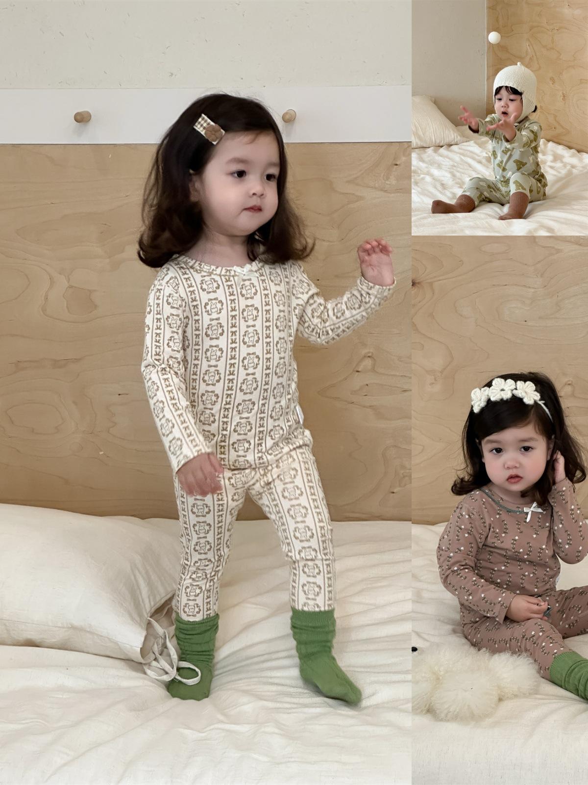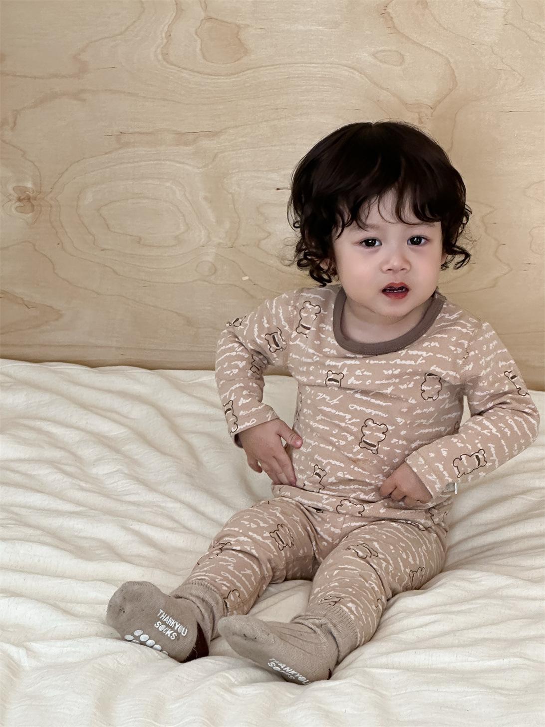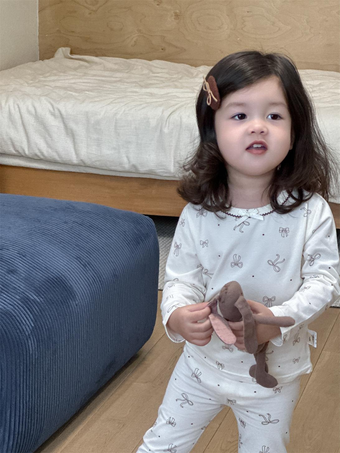 Ropa de otoño para niños nueva 2025 ropa de otoño ropa infantil estilo coreano niños y niñas bebé ropa para estar en casa conjunto de pijamas