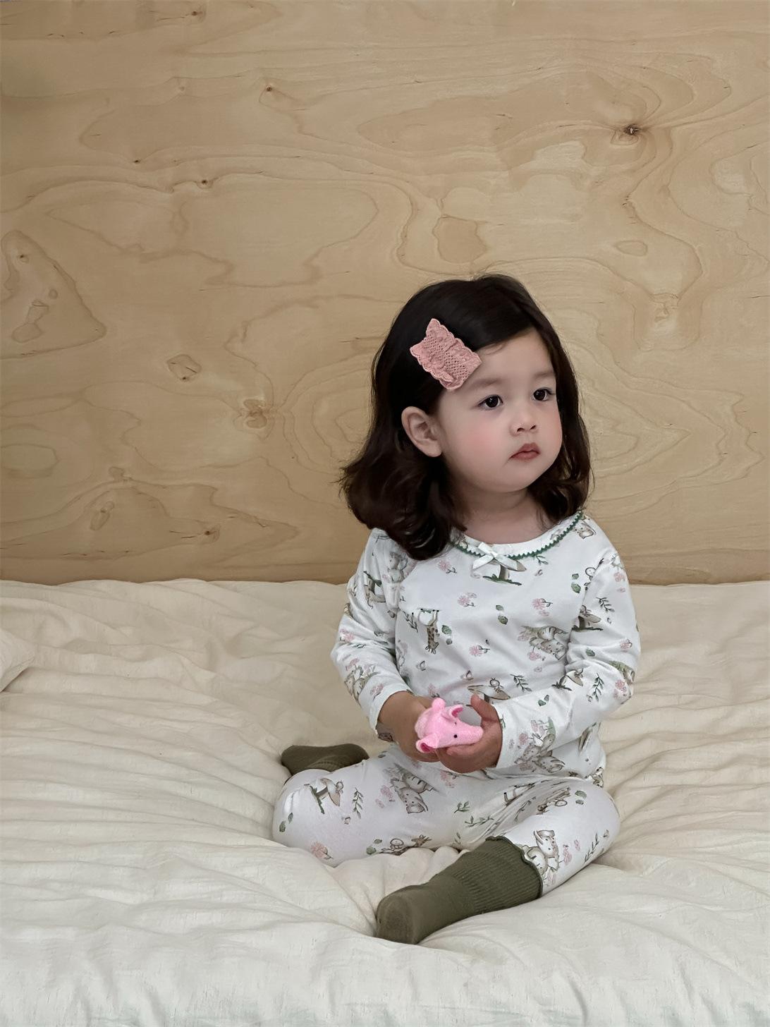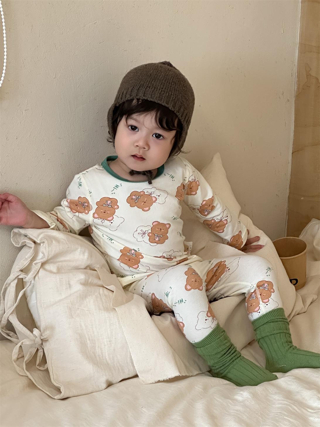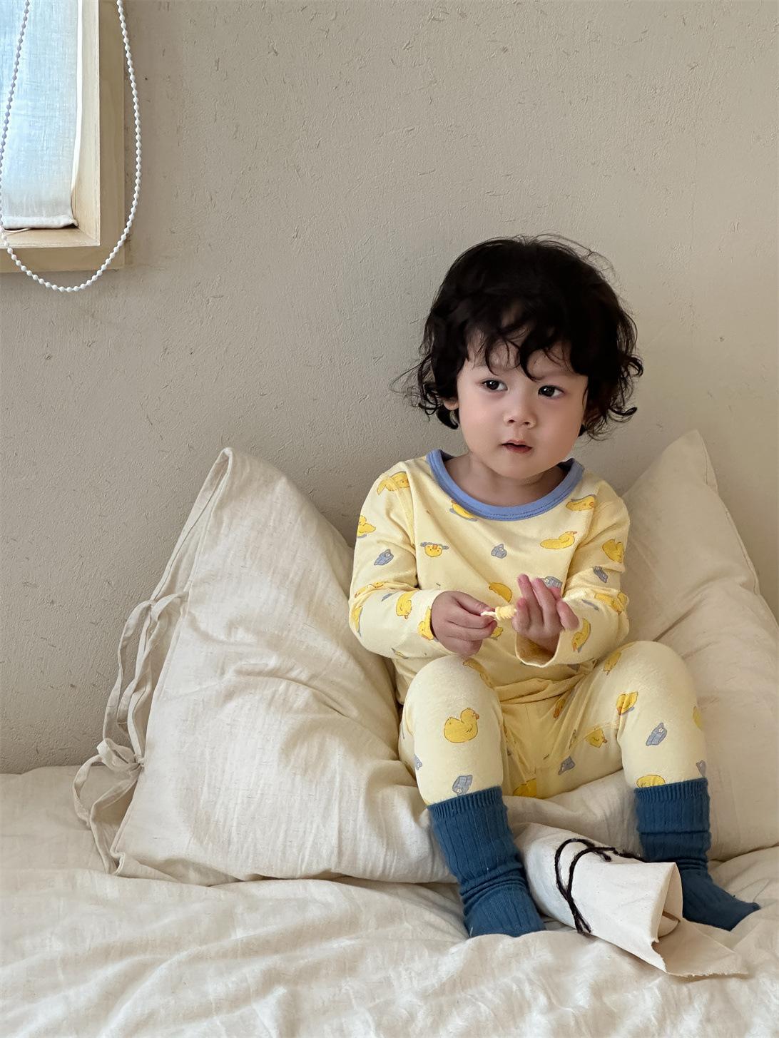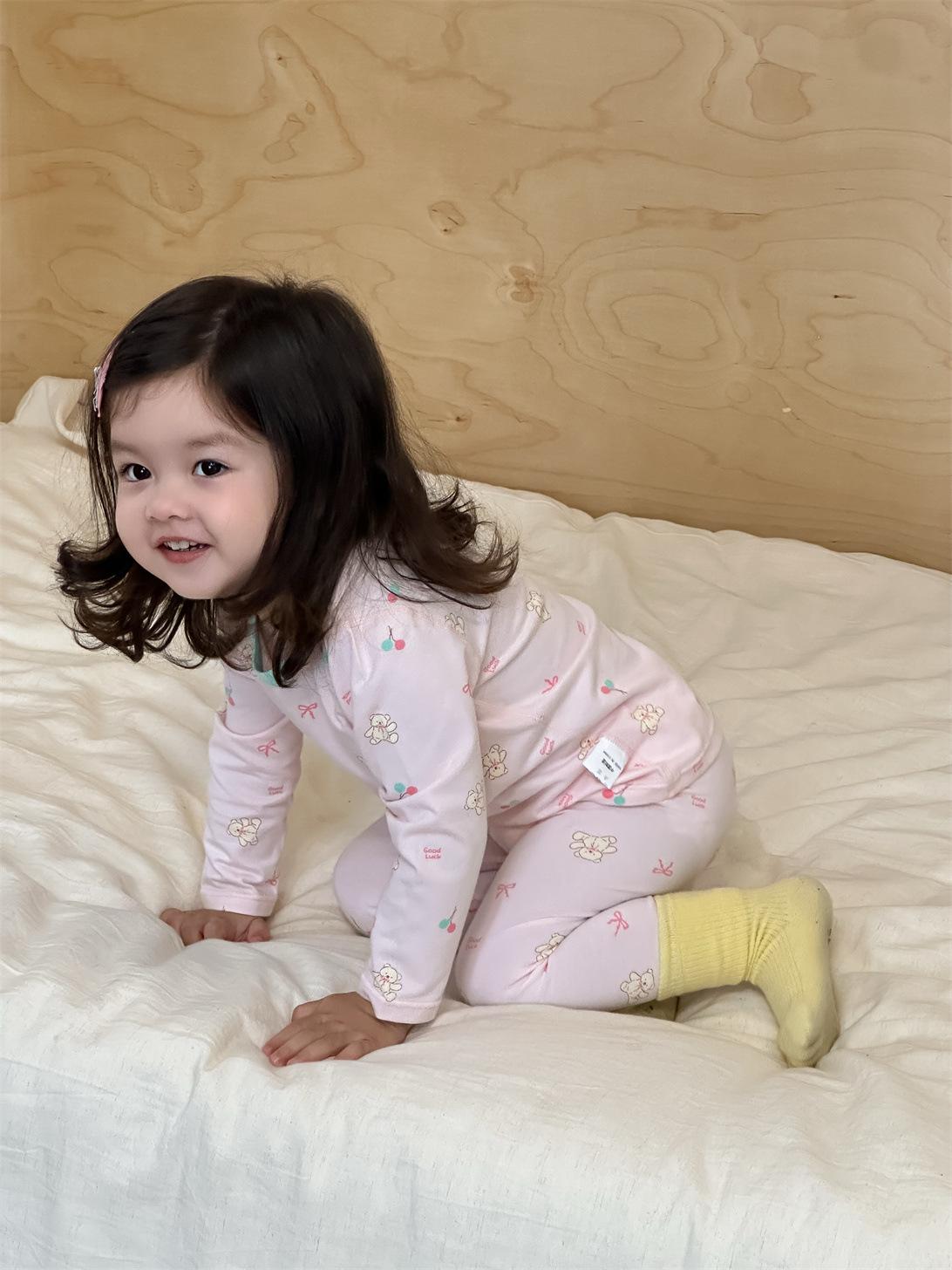 Ropa de otoño para niños nueva 2025 ropa de otoño ropa infantil estilo coreano niños y niñas bebé ropa para estar en casa conjunto de pijamas
