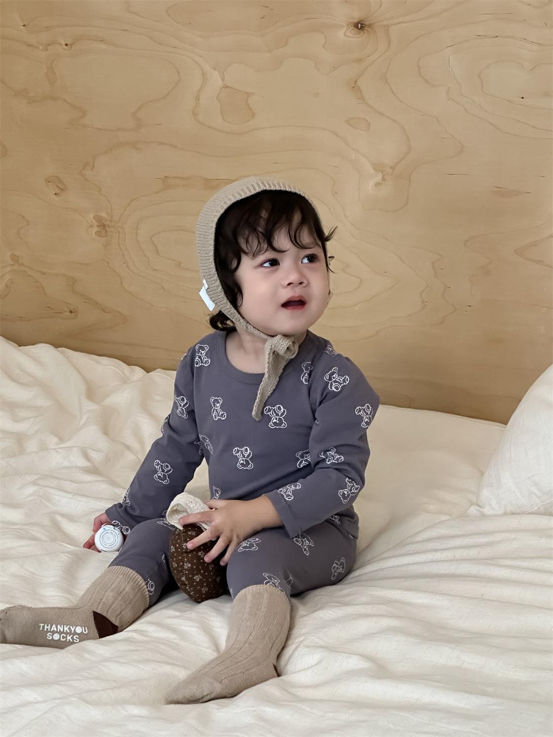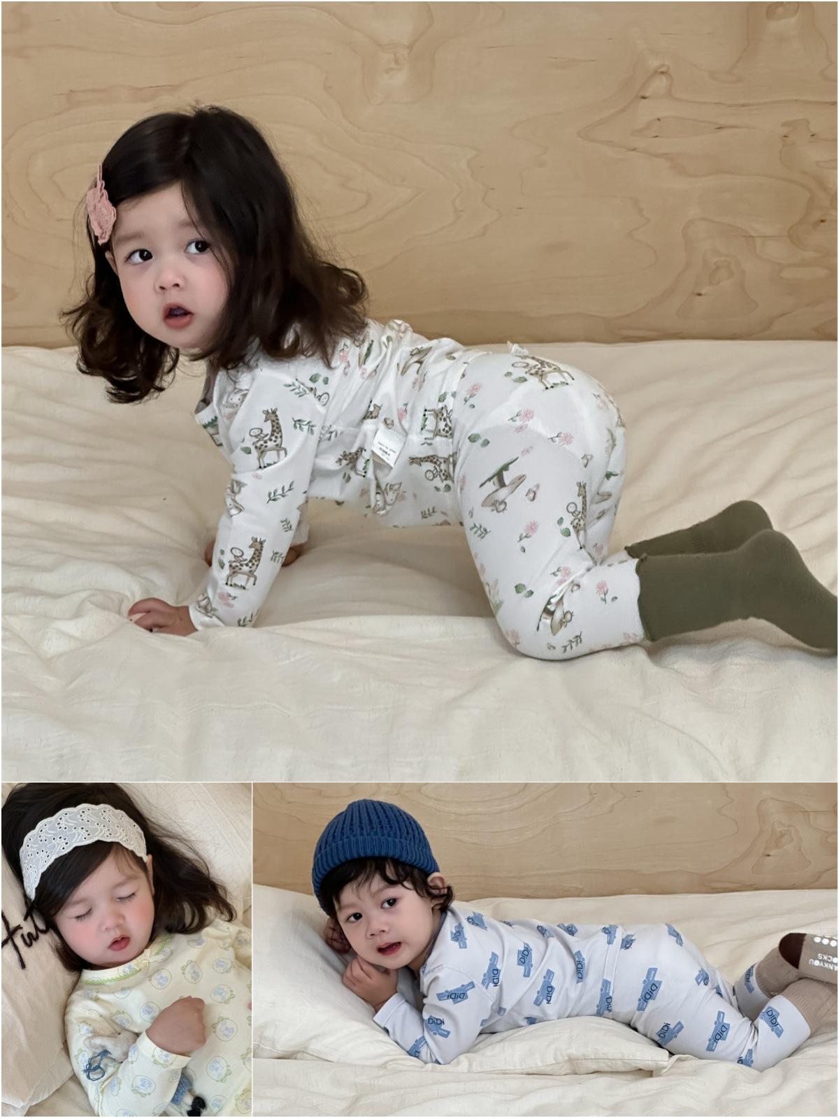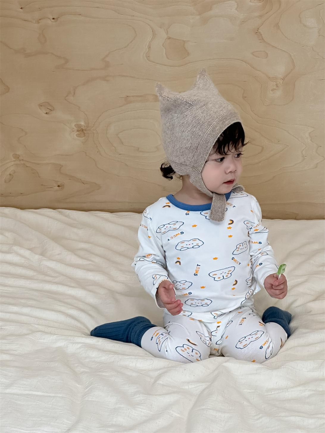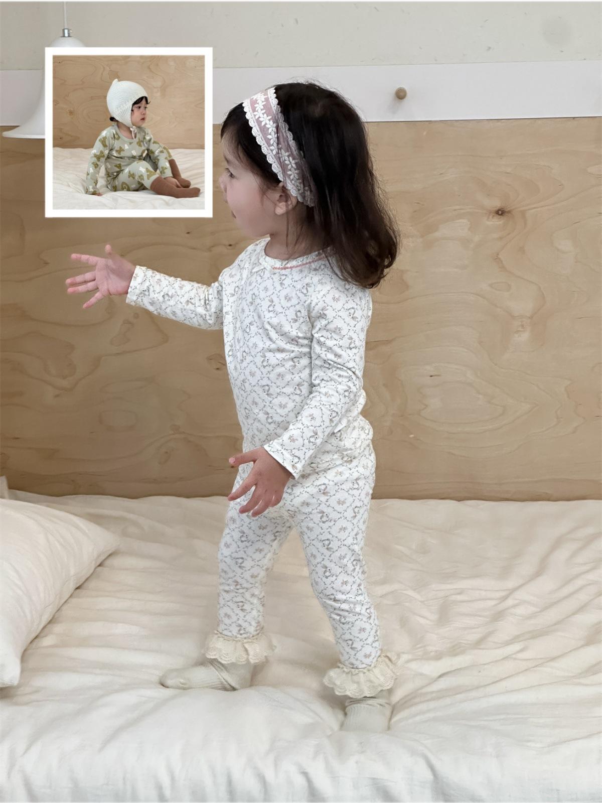 Ropa de otoño para niños nueva 2025 ropa de otoño ropa infantil estilo coreano niños y niñas bebé ropa para estar en casa conjunto de pijamas