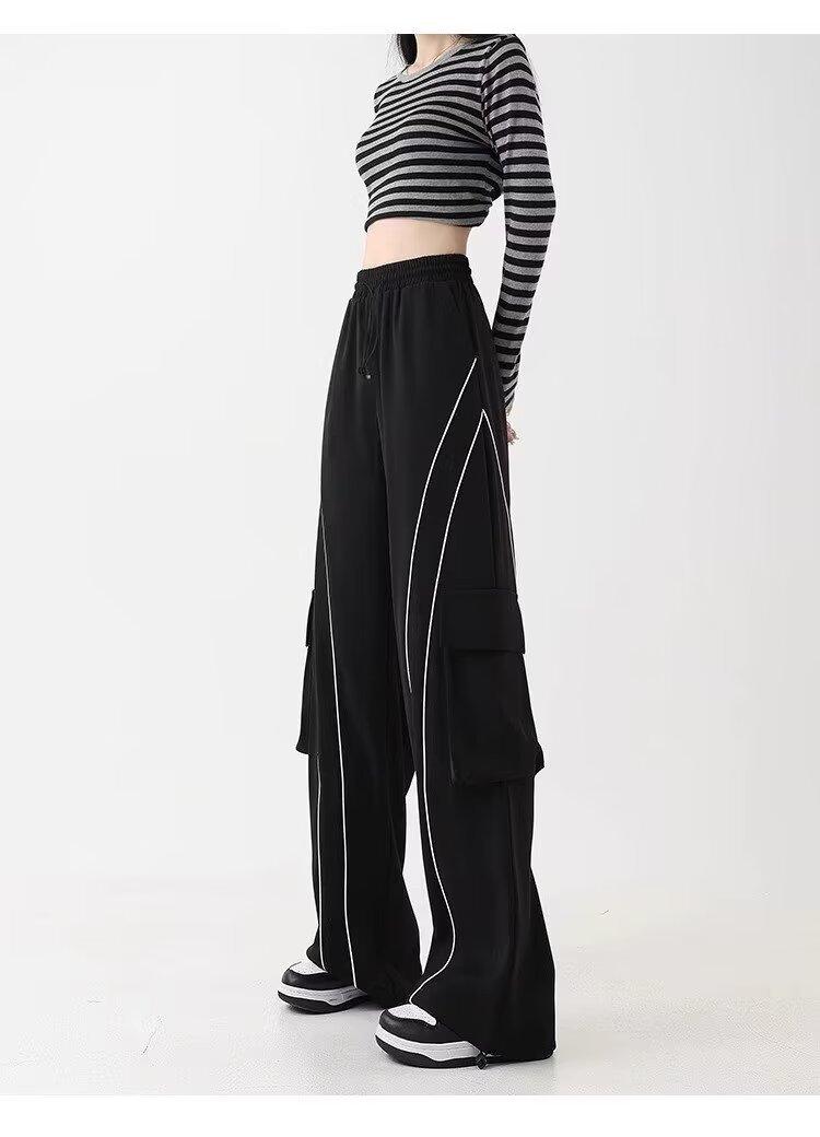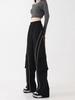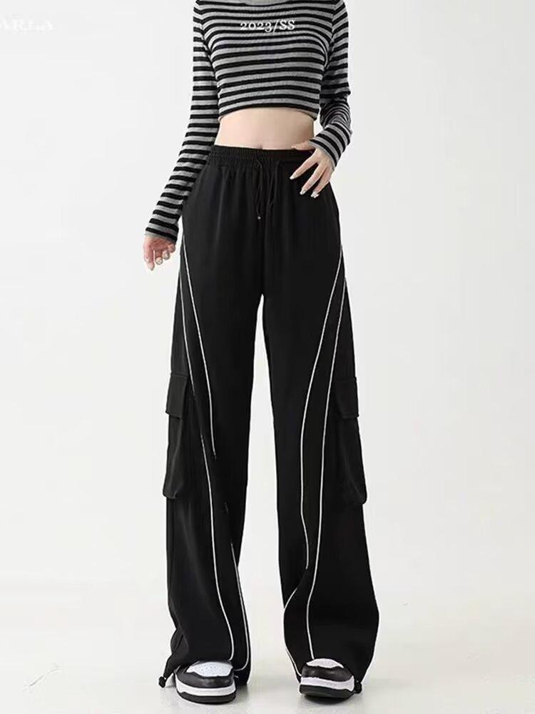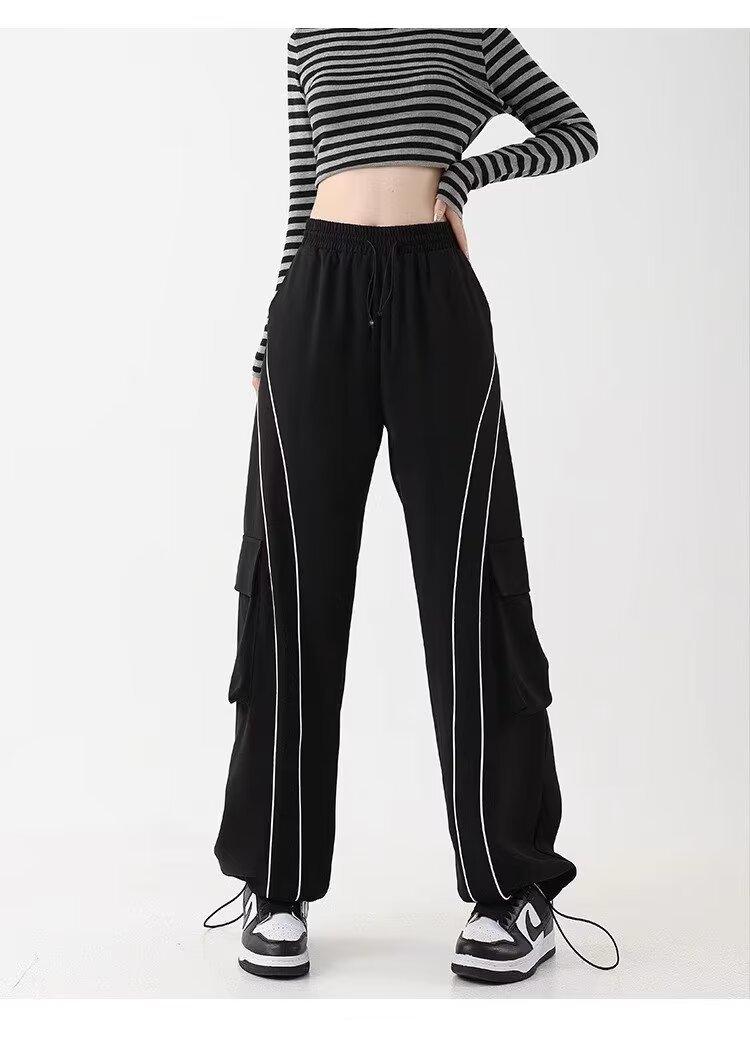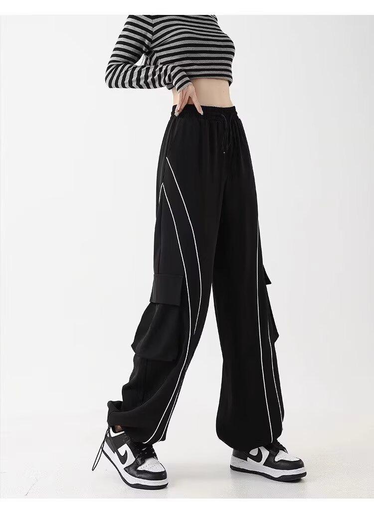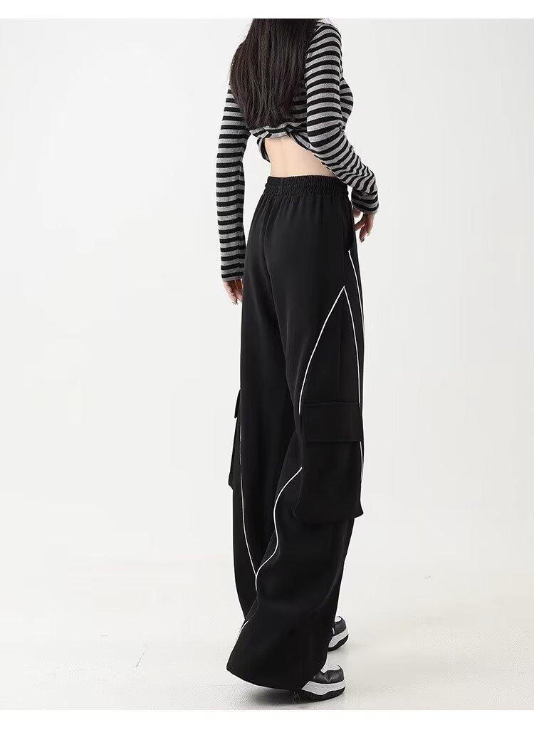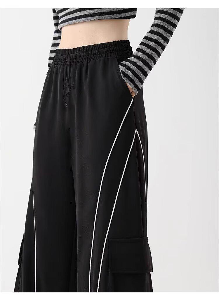 Pantalones de Trabajo Casuales Americanos Negros para Mujer Cintura Alta Primavera Talla Grande Gordo MM Sueltos Adelgazantes Forma de Pera Pantalones de Pierna Ancha