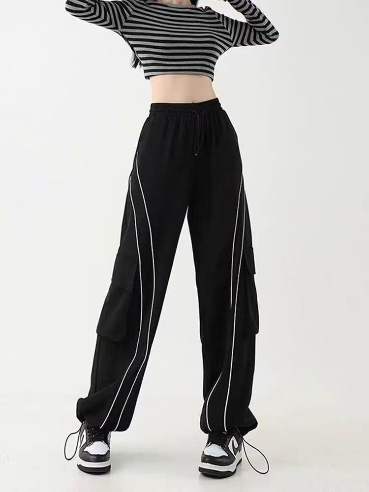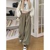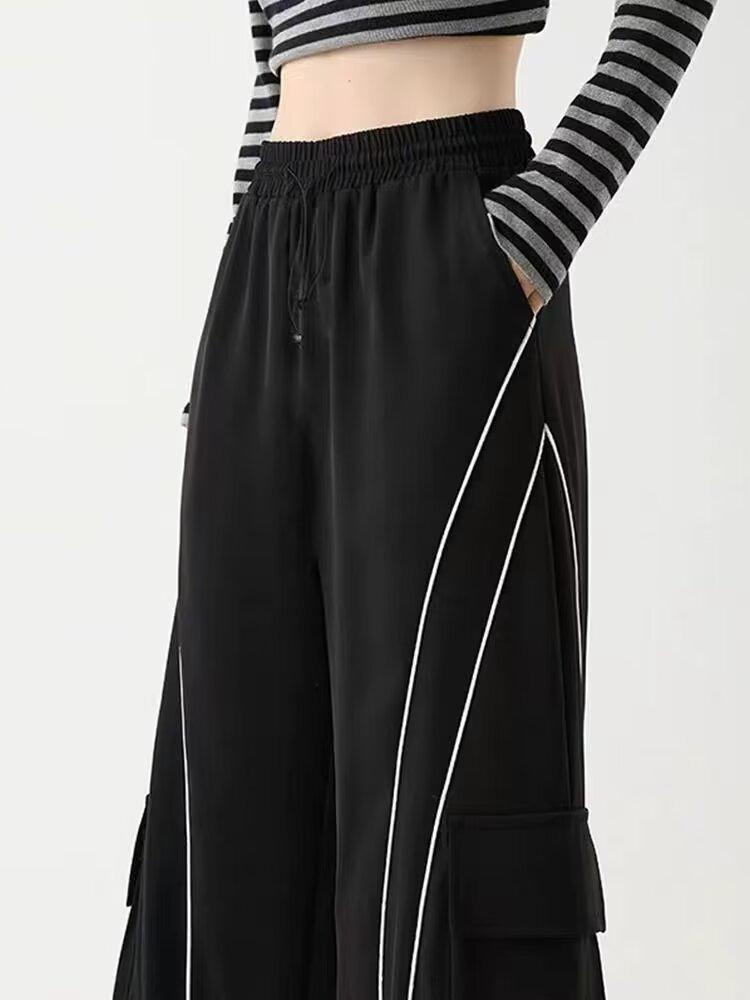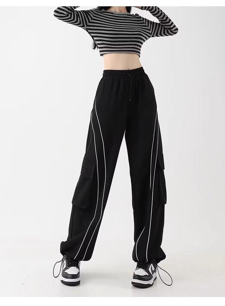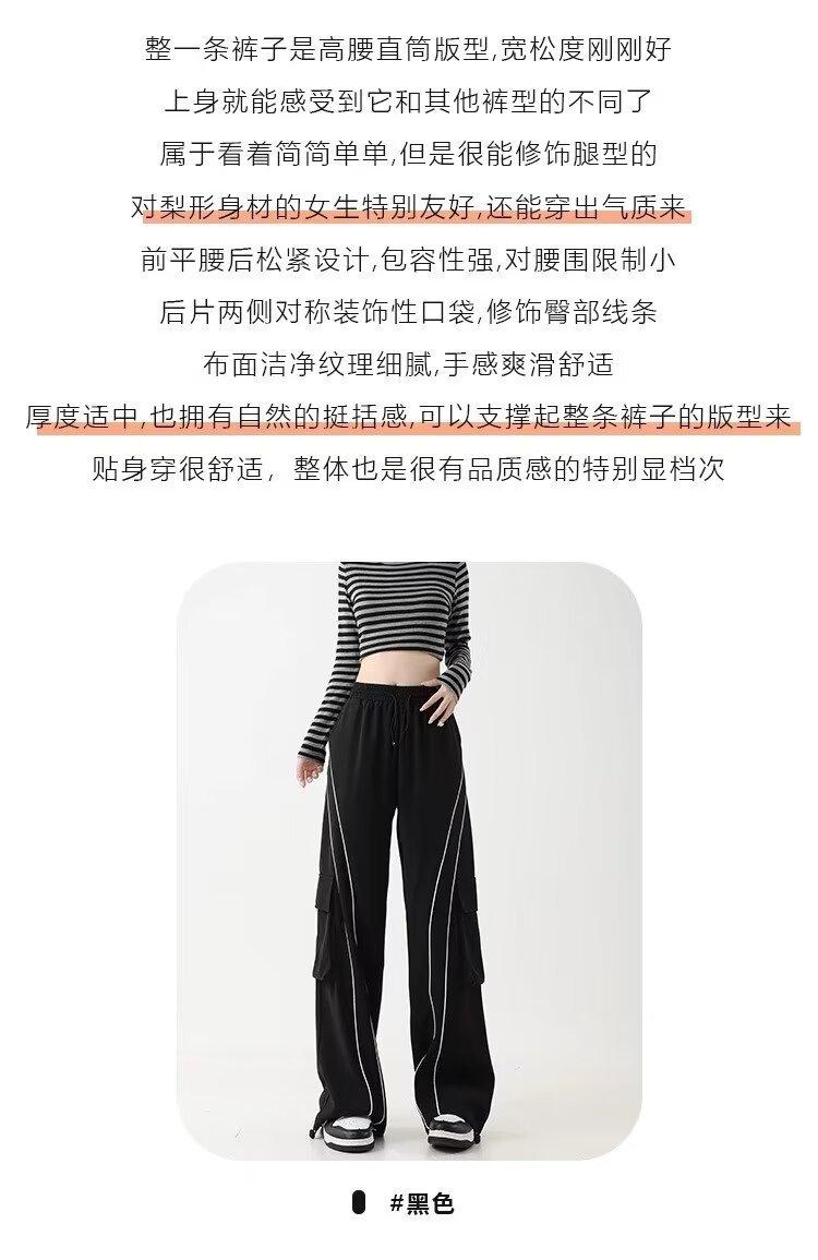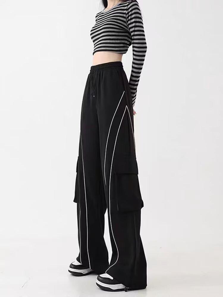 Pantalones de Trabajo Casuales Americanos Negros para Mujer Cintura Alta Primavera Talla Grande Gordo MM Sueltos Adelgazantes Forma de Pera Pantalones de Pierna Ancha