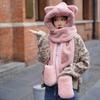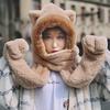 Sombrero de Felpa para Mujer Otoño e Invierno Bufanda Sombrero Guantes Conjunto de Tres Piezas Moda Coreana Engrosado Cálido Protección para las Orejas